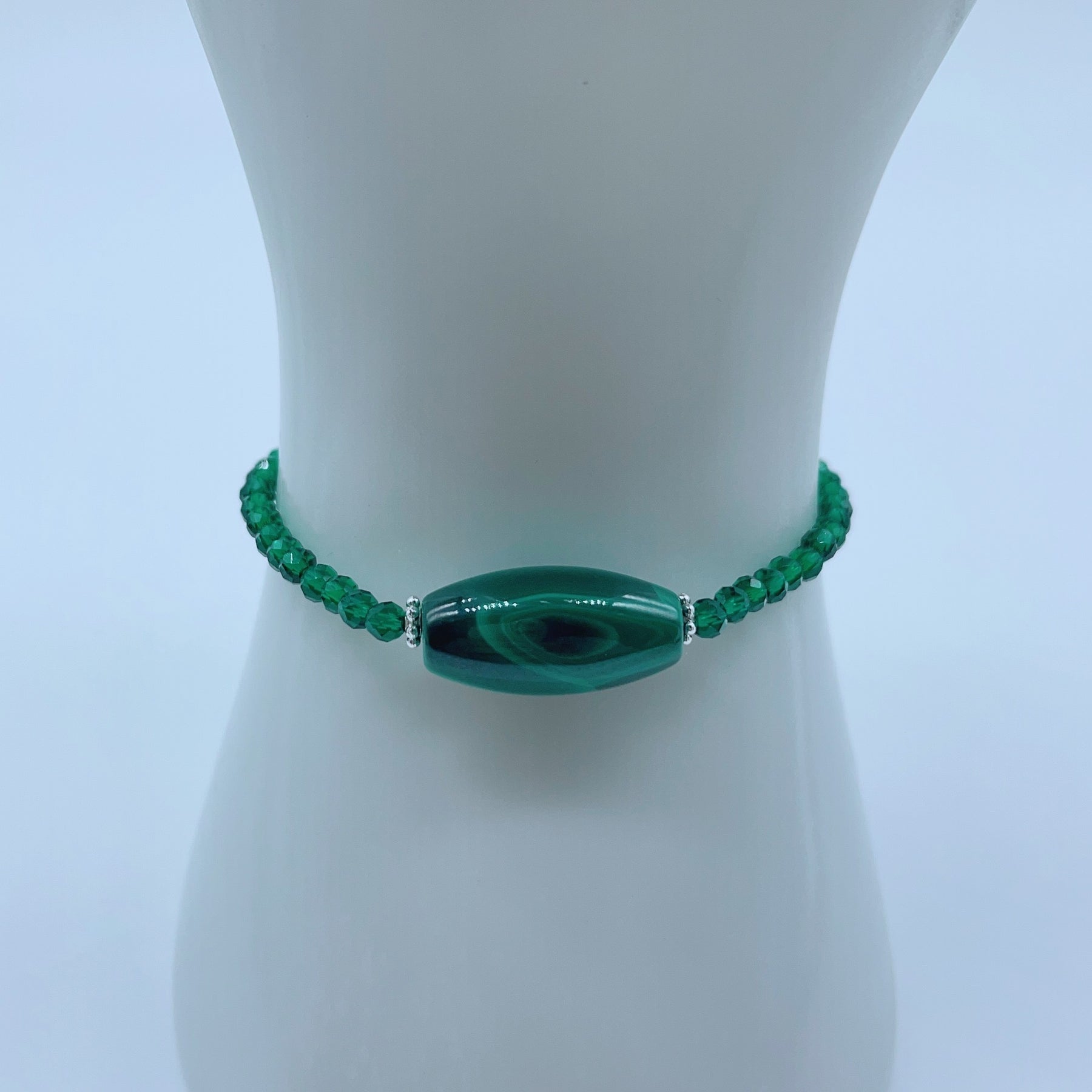 Elevate your style with this stunning natural malachite bracelet. Perfect for any occasion, this bracelet adds a touch of elegance to your look.
