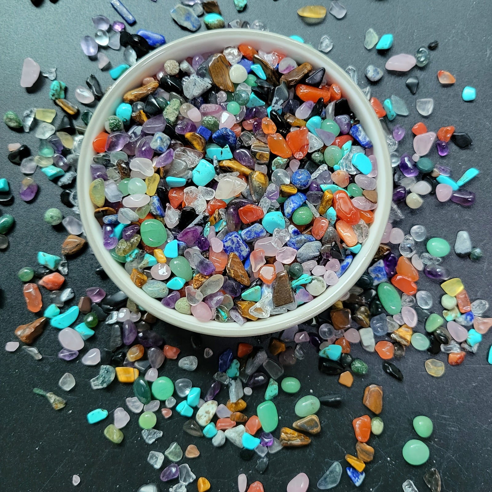 Enhance your jewelry making and home decorations with these tiny natural mixed chip crystal stones. Perfect for creating colorful, unique pieces.