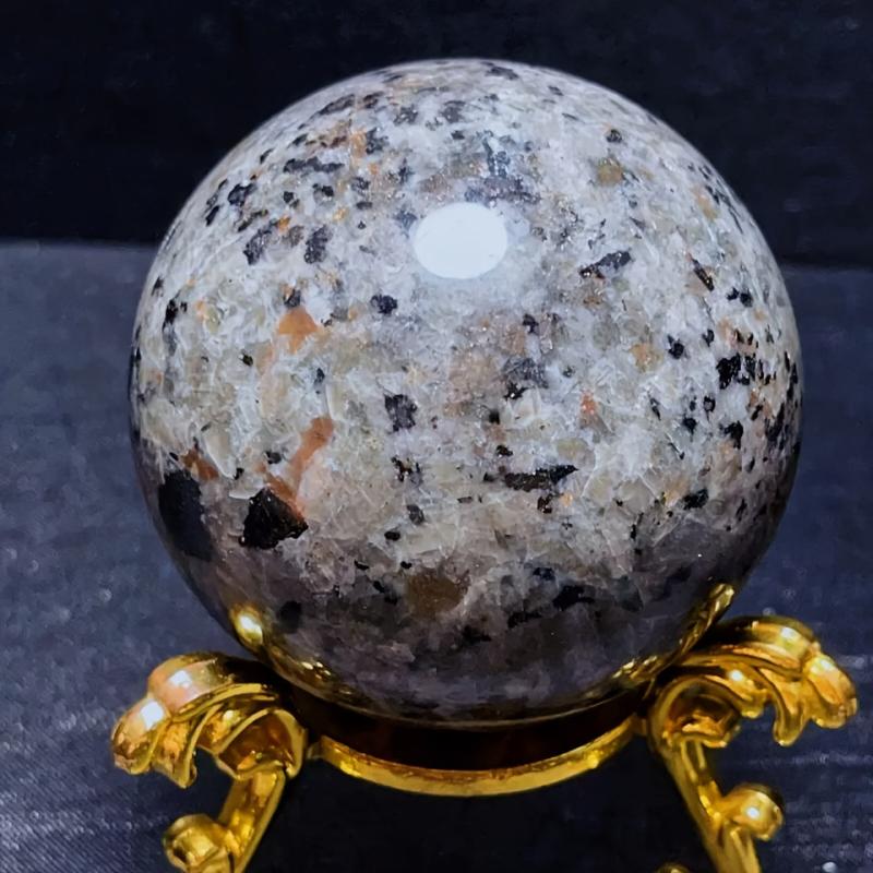 Illuminate your space with this UV reactive Yooperlite sphere that emits a natural glowing orange light. Perfect for a bohemian style home decor.