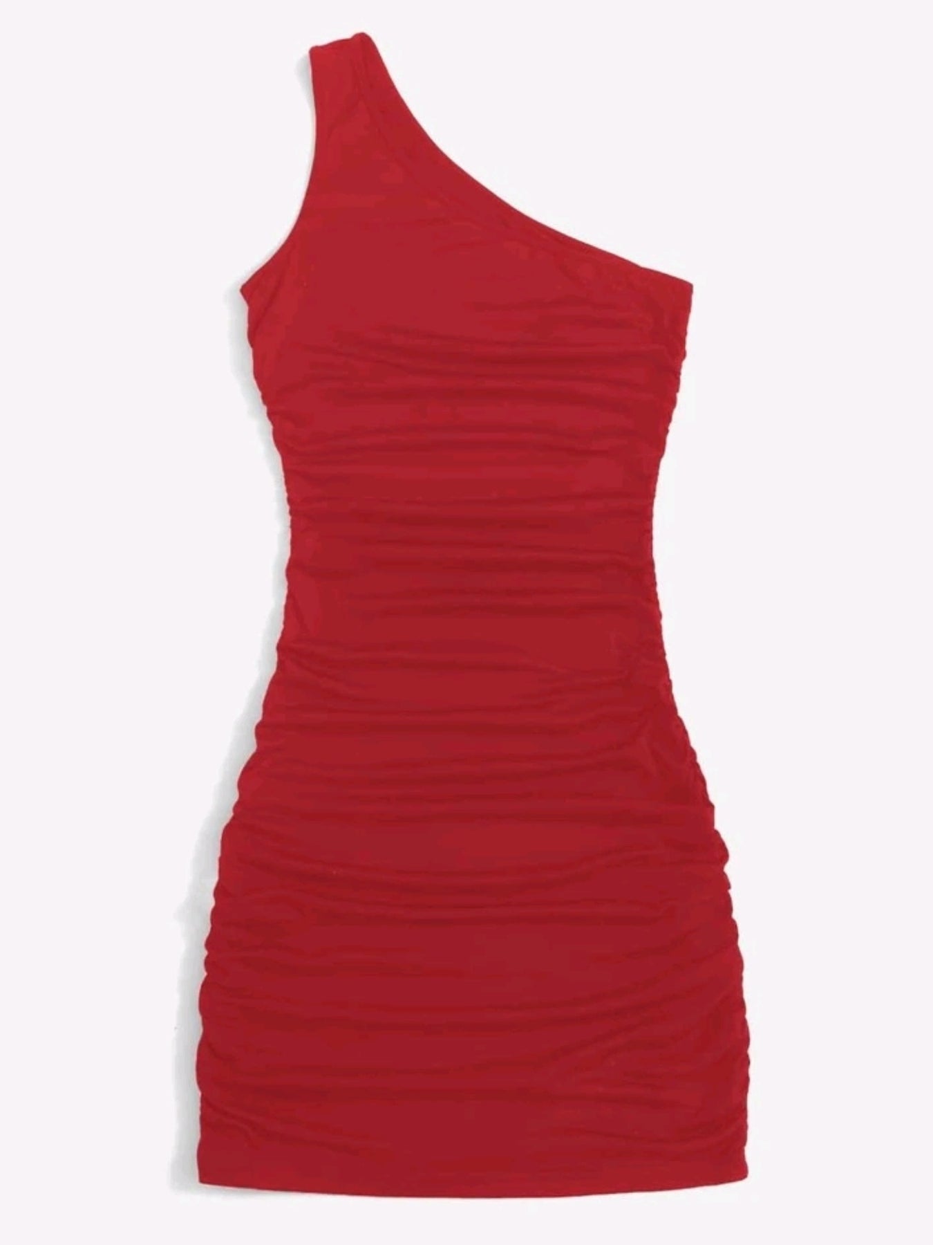 Elevate your style with this sexy one shoulder bodycon dress. The ruched design adds a trendy touch, perfect for a night out or special occasion.