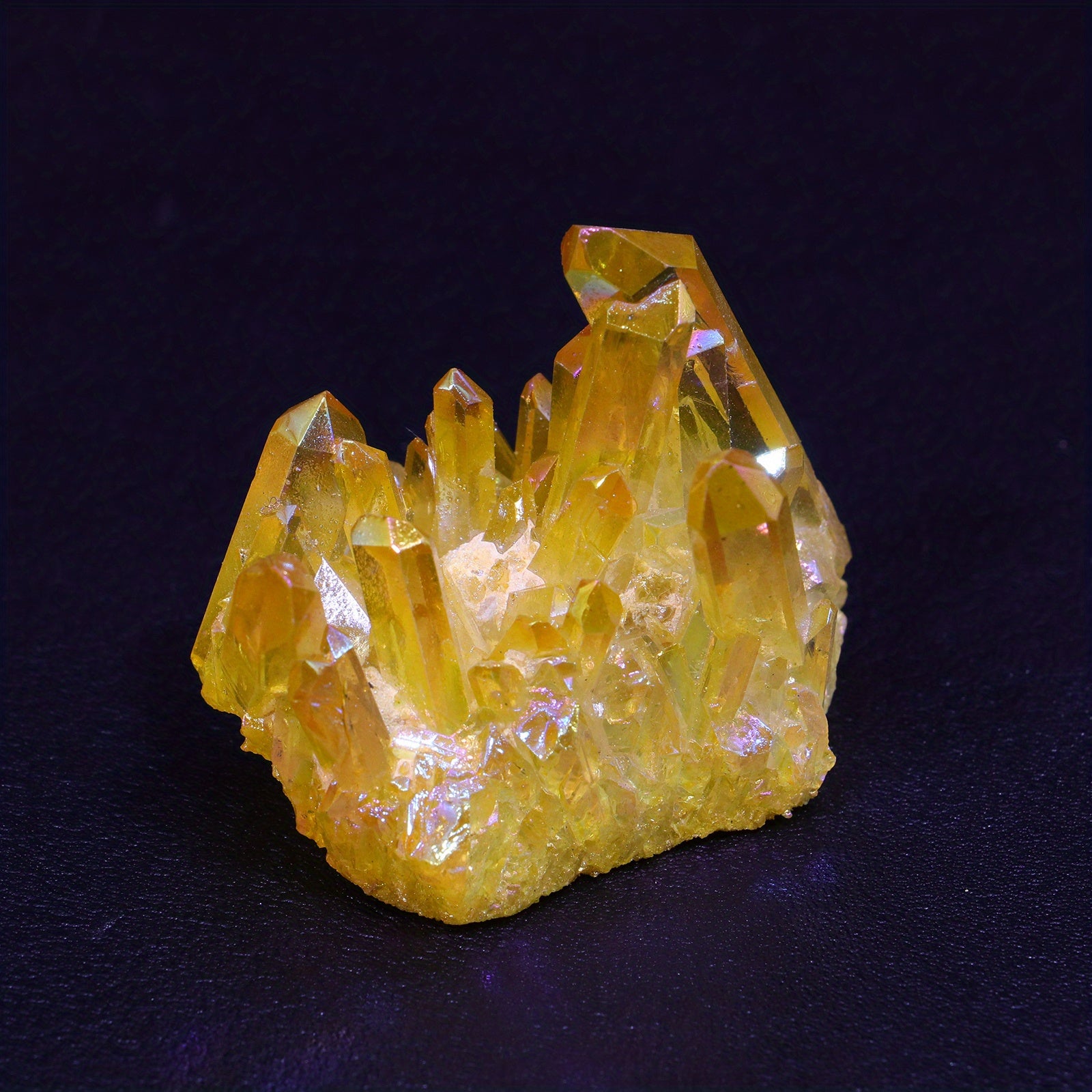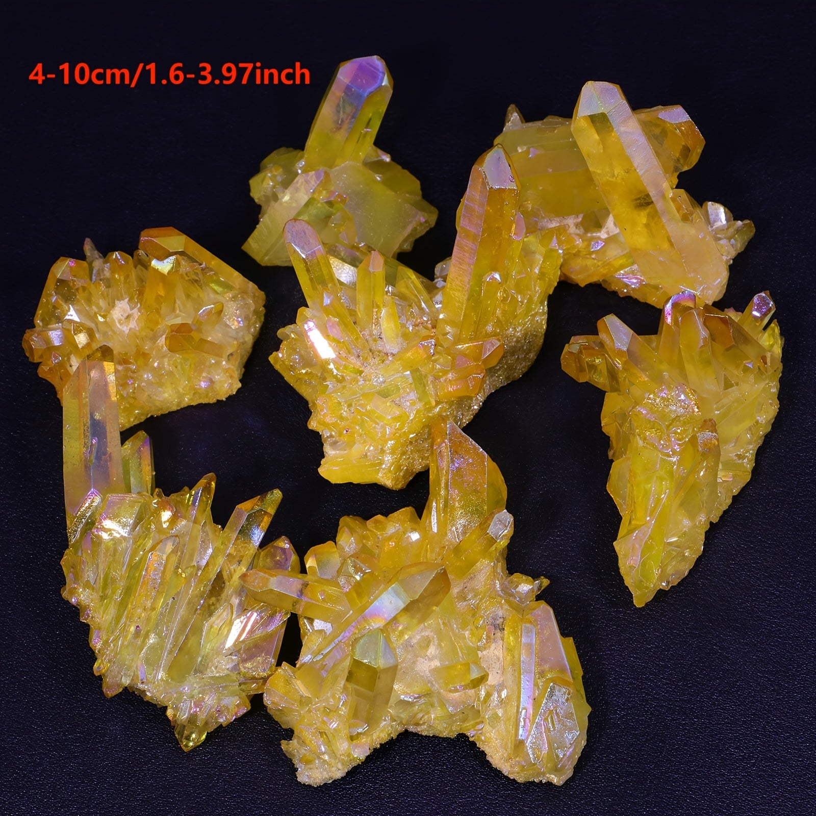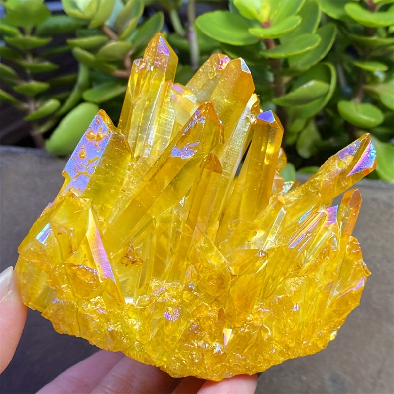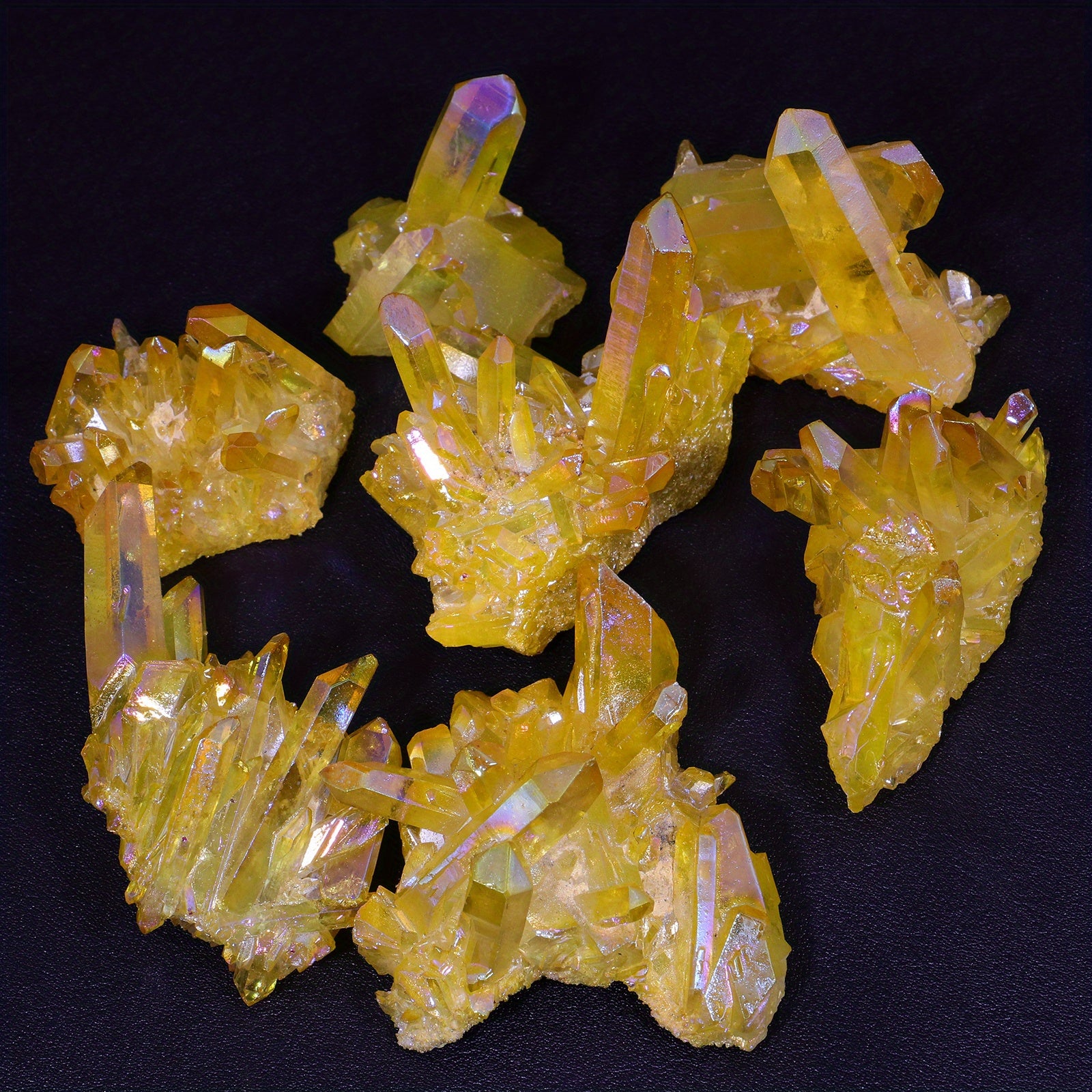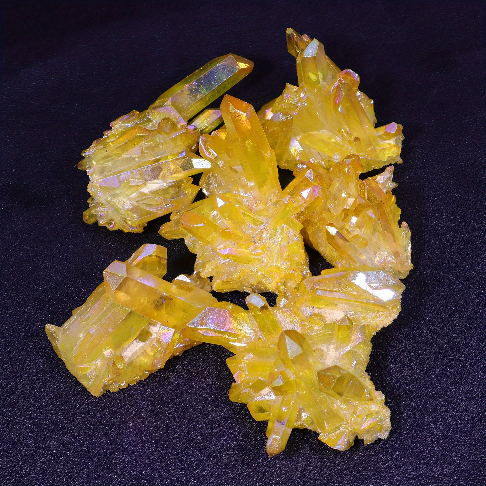 This natural yellow crystal cluster rough mineral specimen is perfect for healing and office decoration. It is made of quartz and carries positive energy.