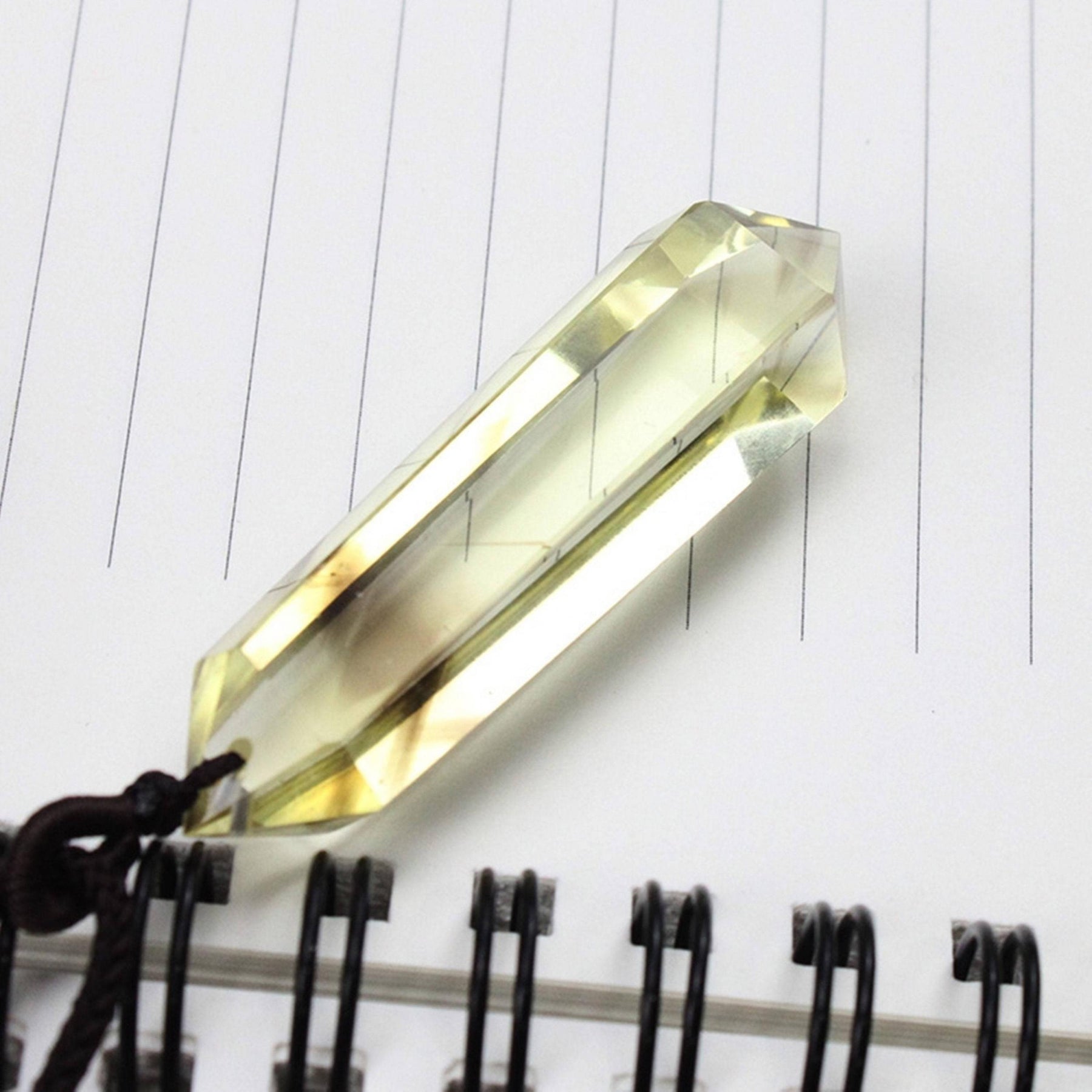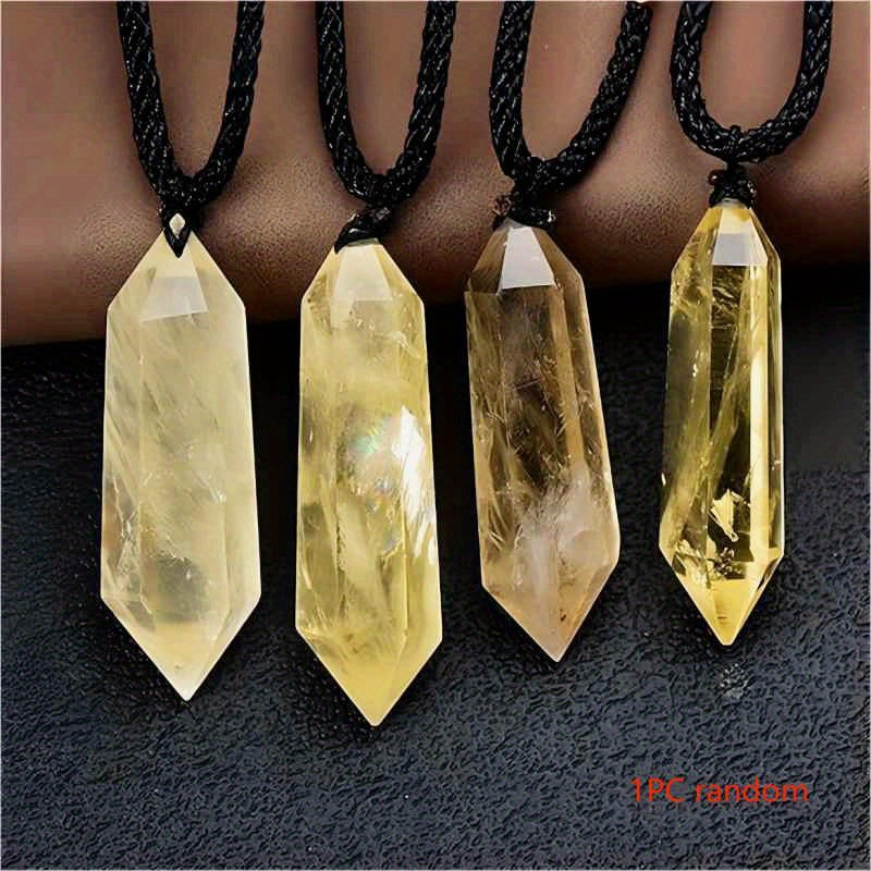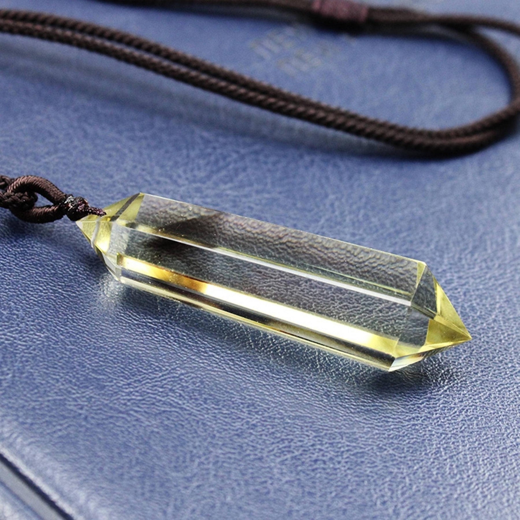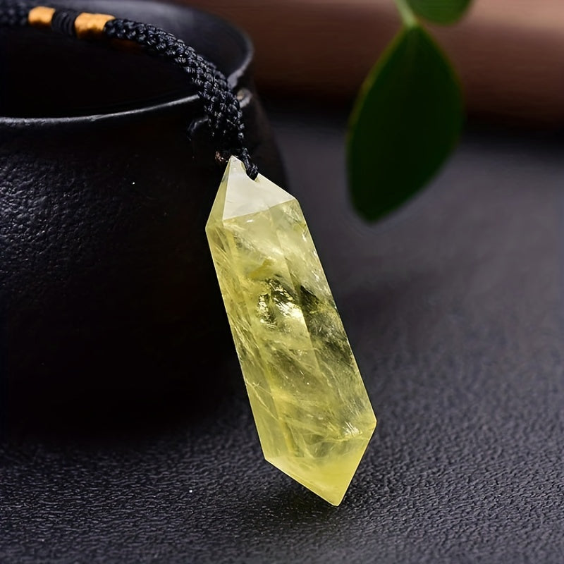 Bring tranquility and positive energy with this stunning yellow crystal pendant. Perfect for meditation or as a jewelry gift.