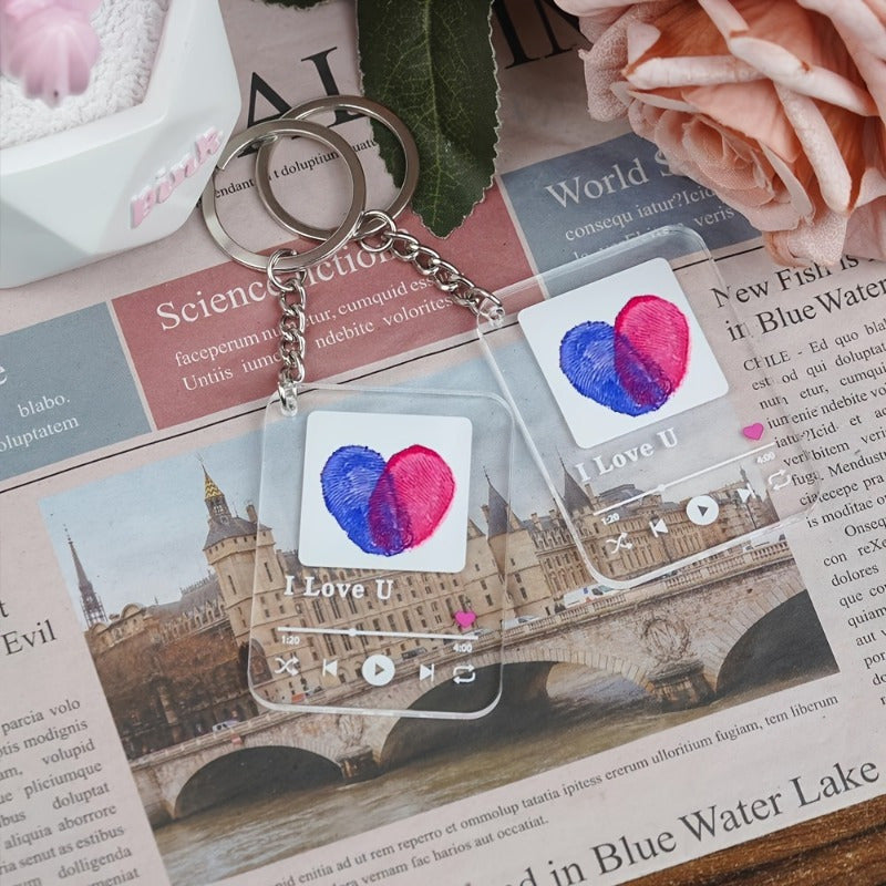 Celebrate the holiday season with this personalized keychain set. Perfect for friends and couples, this custom text acrylic pendant keychain is a great gift for Christmas or anniversaries.