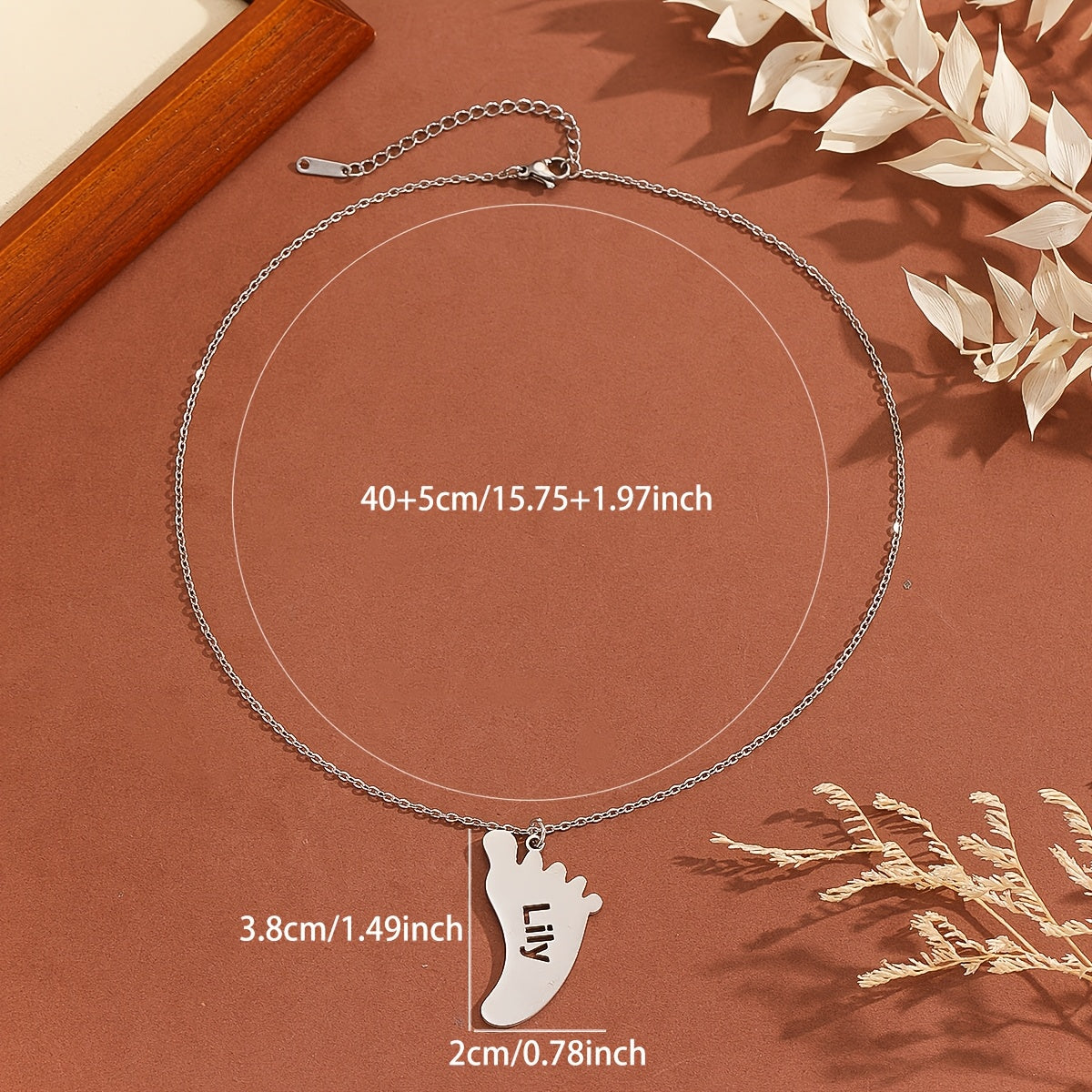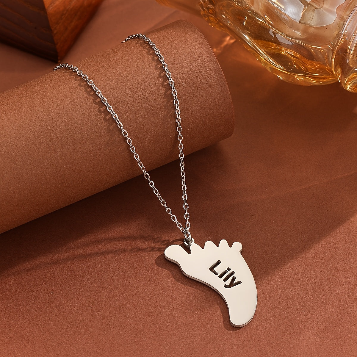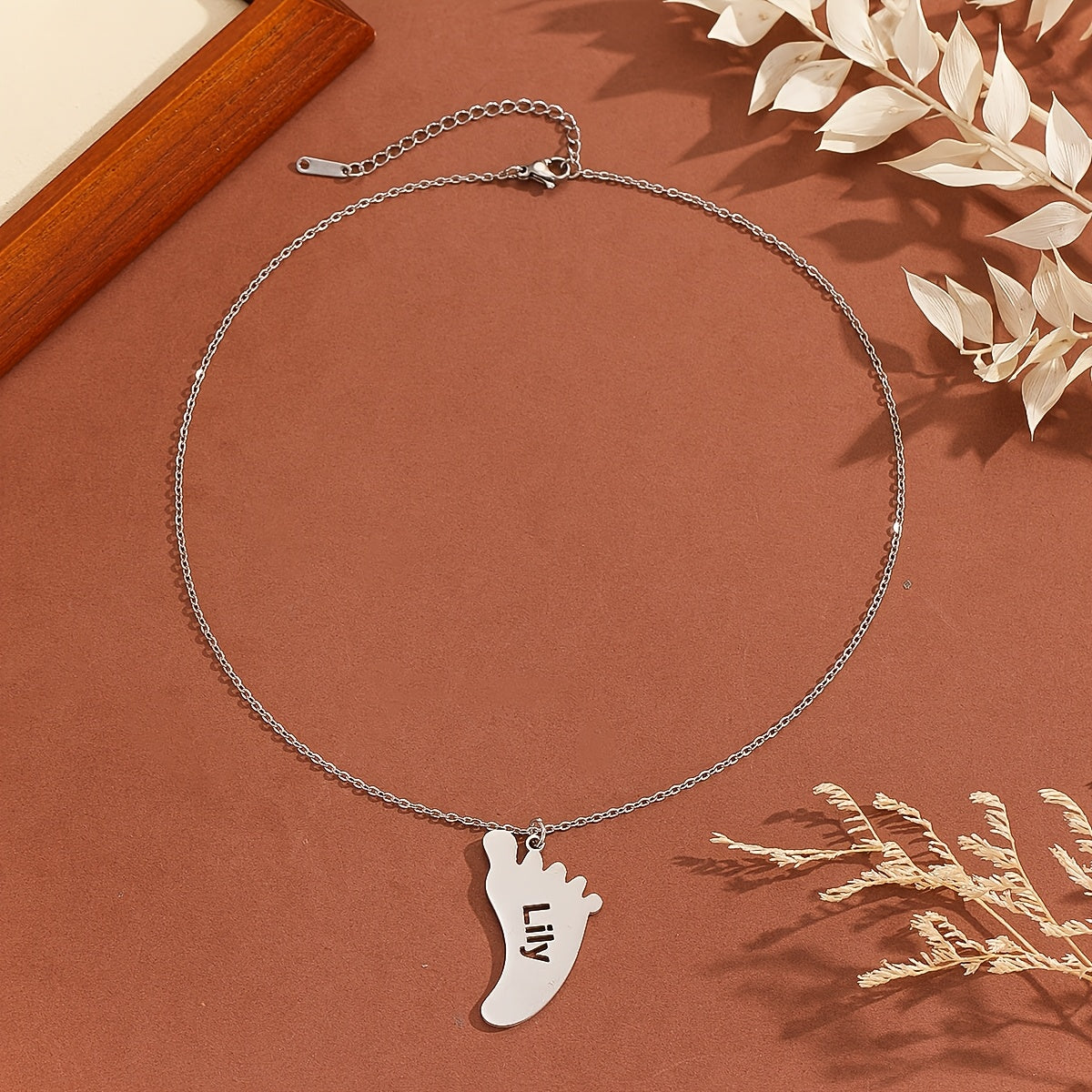 This personalized necklace features baby footprints and can be customized with a name. Made of high-quality stainless steel, this couples necklace is a stylish and meaningful piece of jewelry. The text engraving allows for unique personalization.