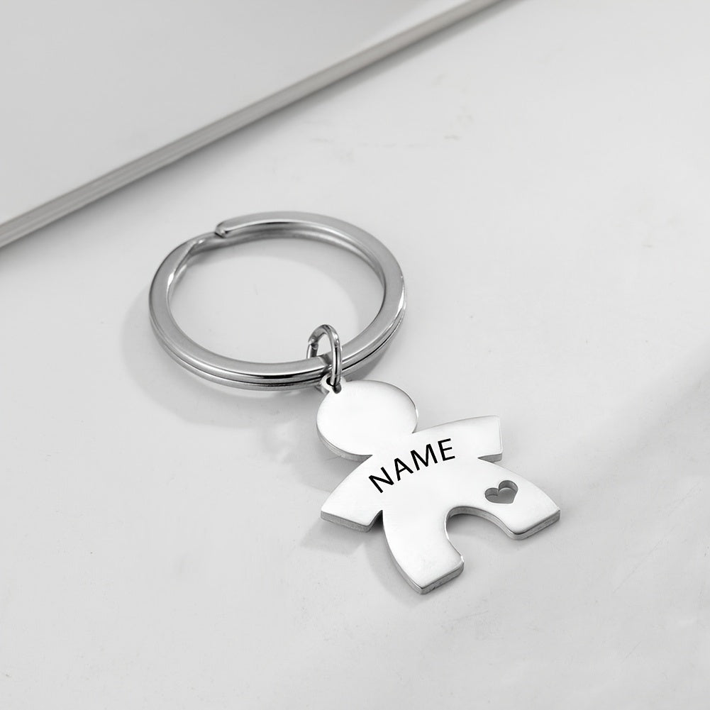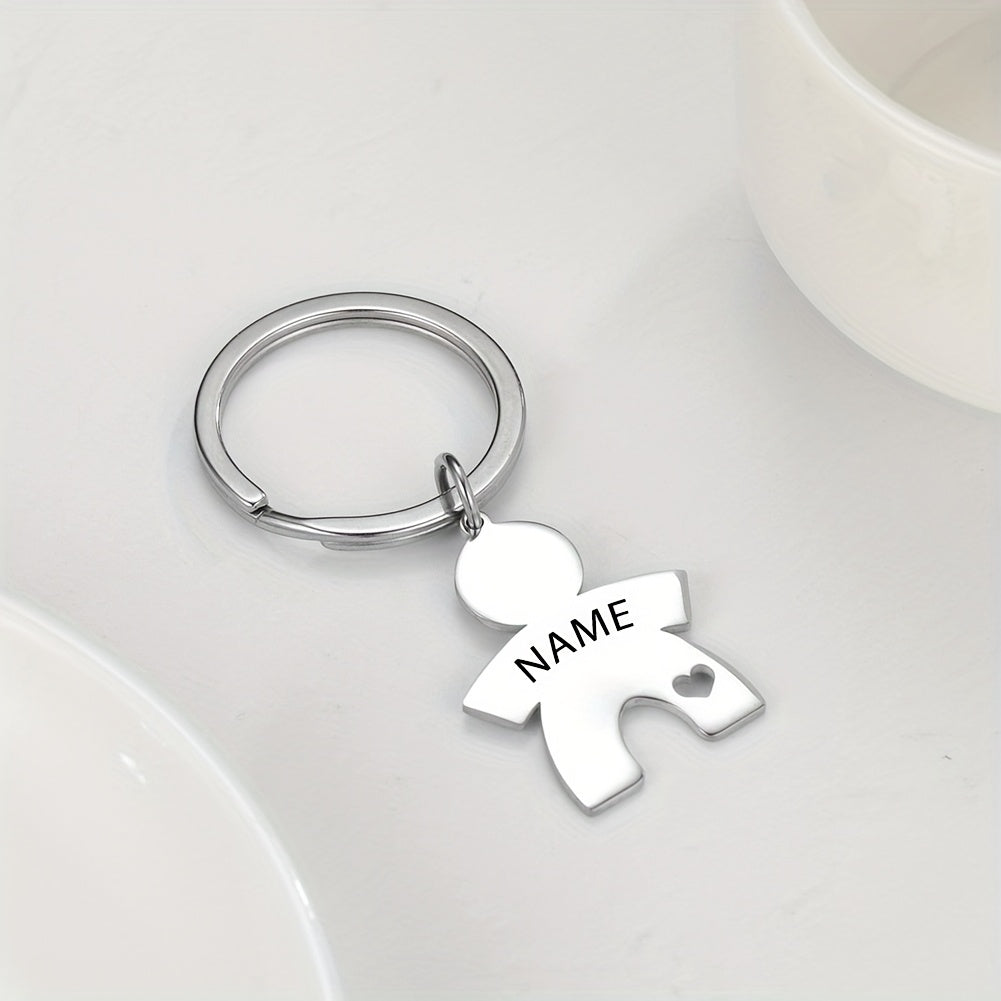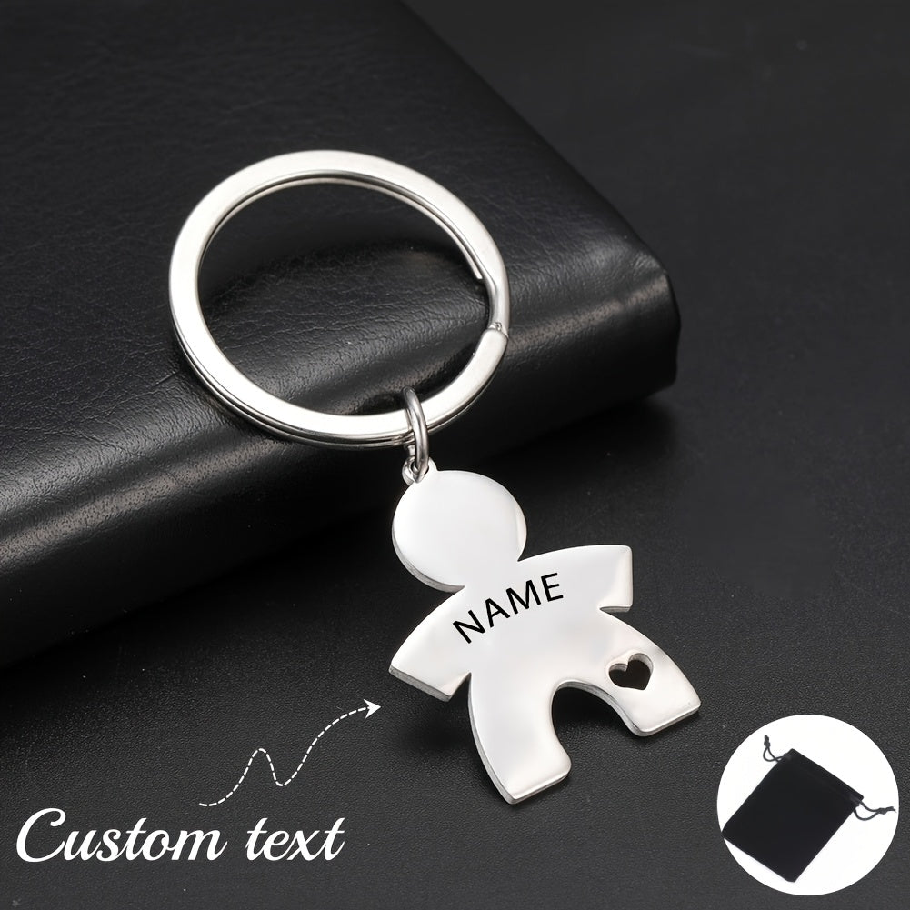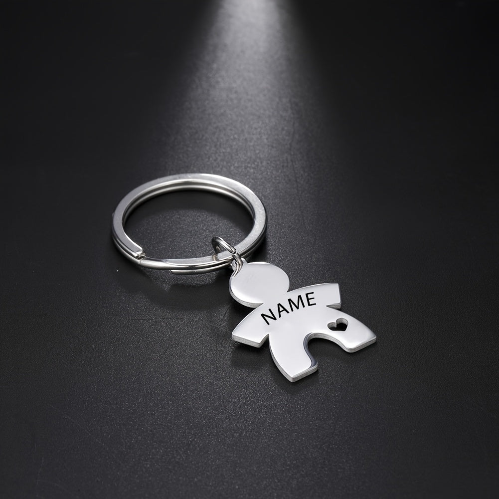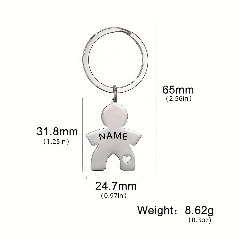 Get a unique and personalized keychain with a heart-shaped paper figure design. Engrave your name on the stainless steel for a special touch.