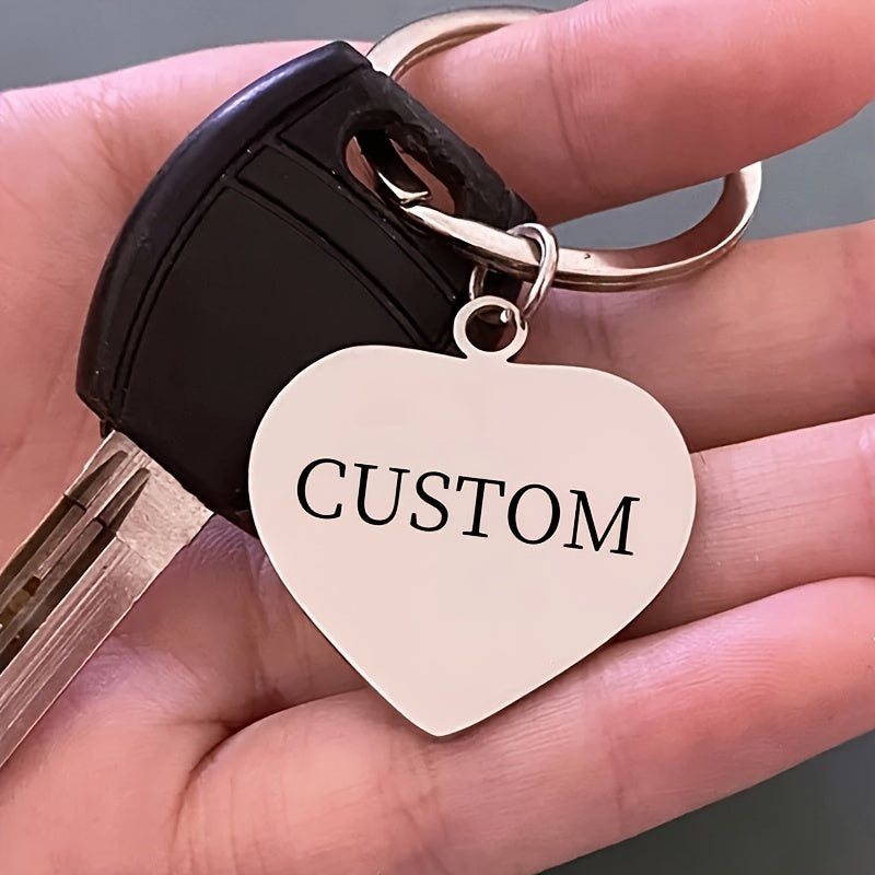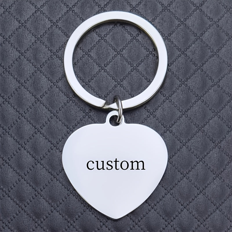 This personalized heart keychain is crafted from high-quality stainless steel, making it a durable and stylish accessory. Customize it with your own text for a thoughtful and unique gift for her.
