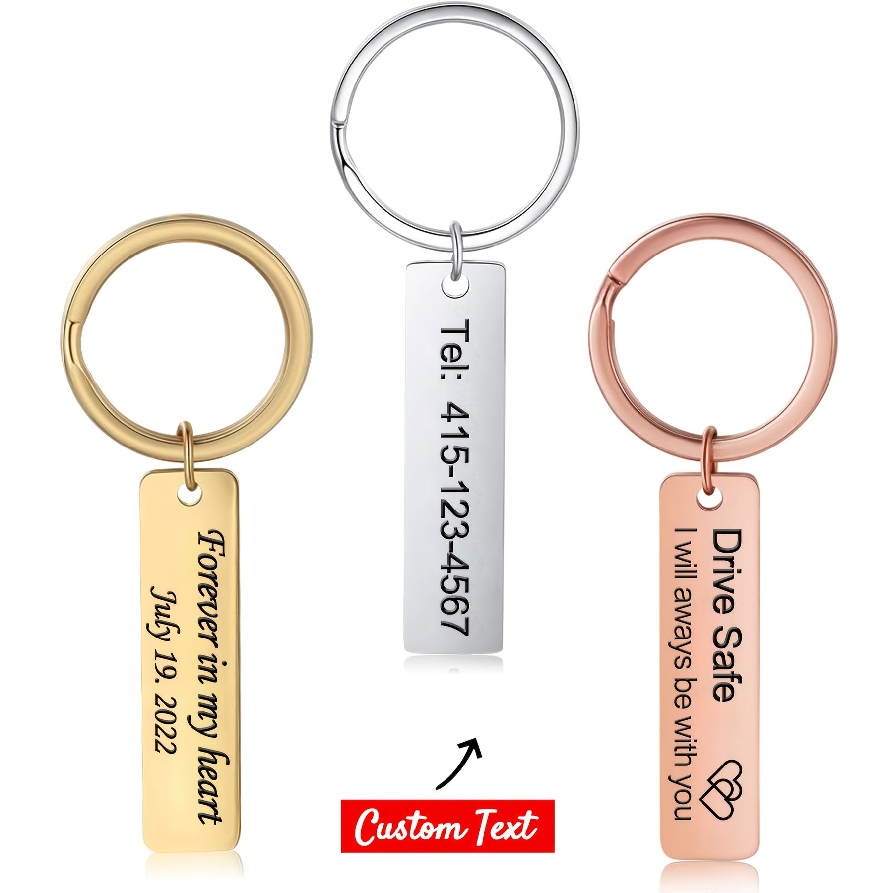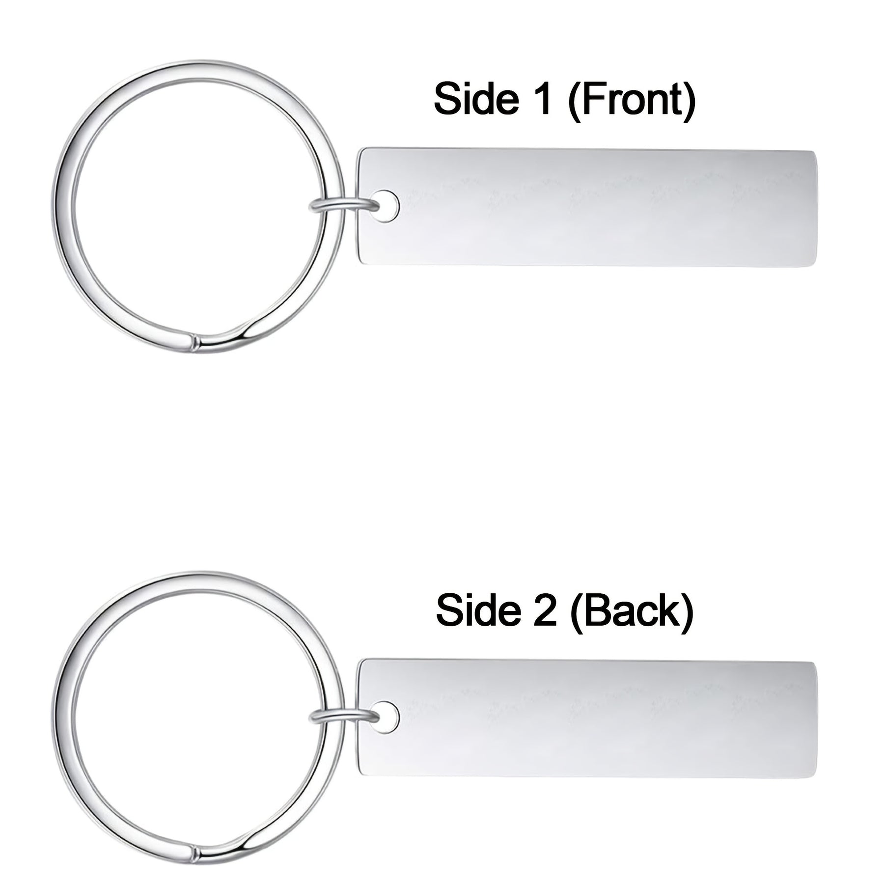 This personalized keychain is made of high-quality stainless steel and can be custom engraved with your chosen text. The double-sided design allows for additional customization options.