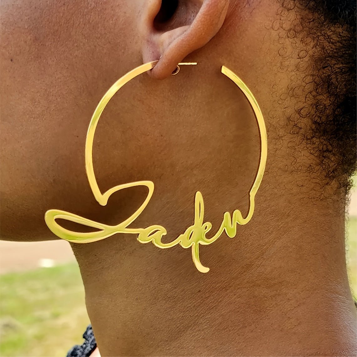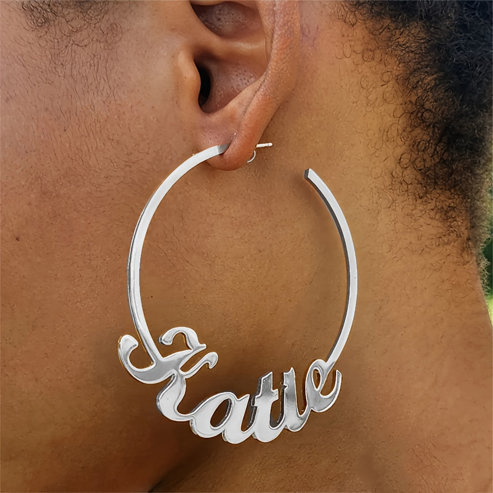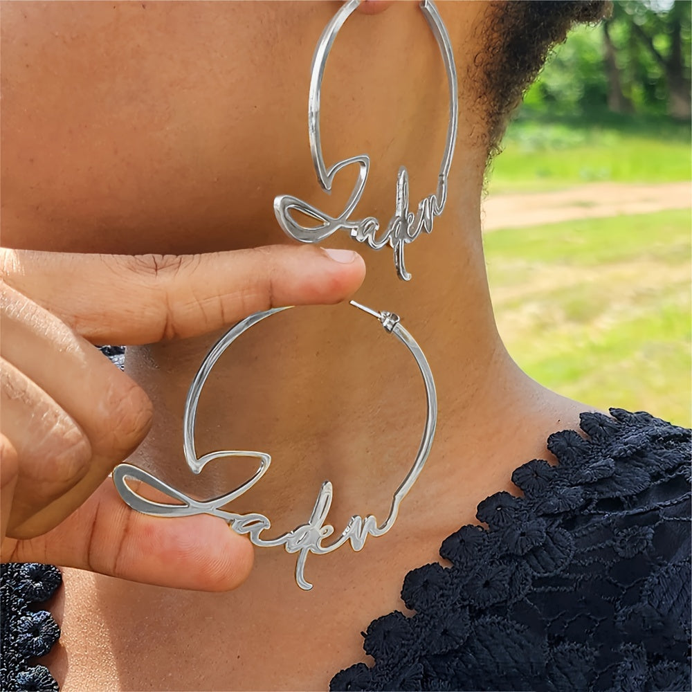 Get your own personalized name hoop earrings with a handwritten style. Made from durable stainless steel, these punk earrings are a unique addition to your jewelry collection.