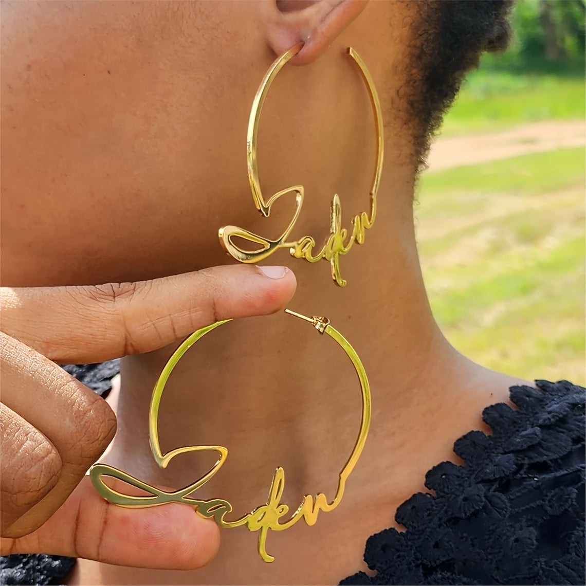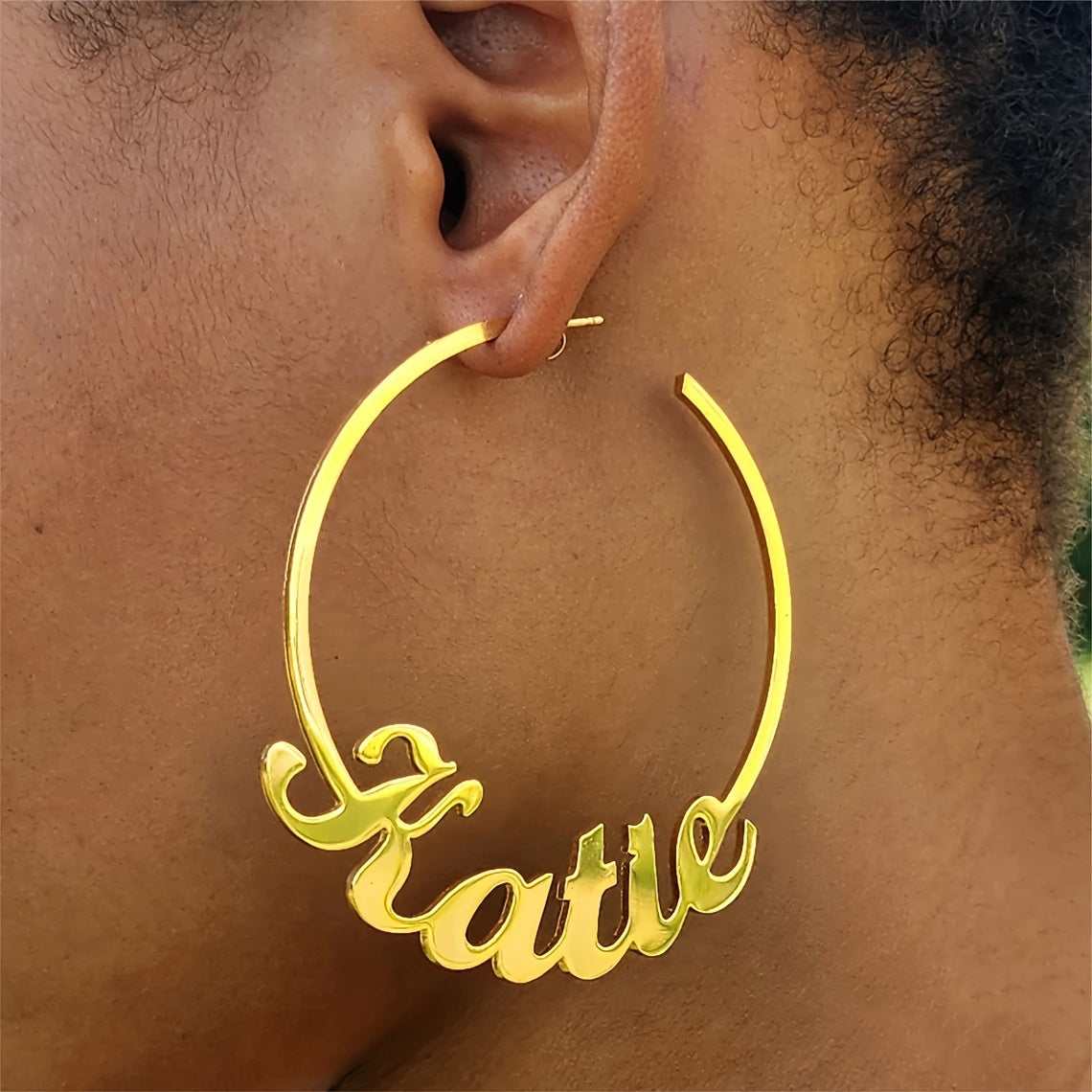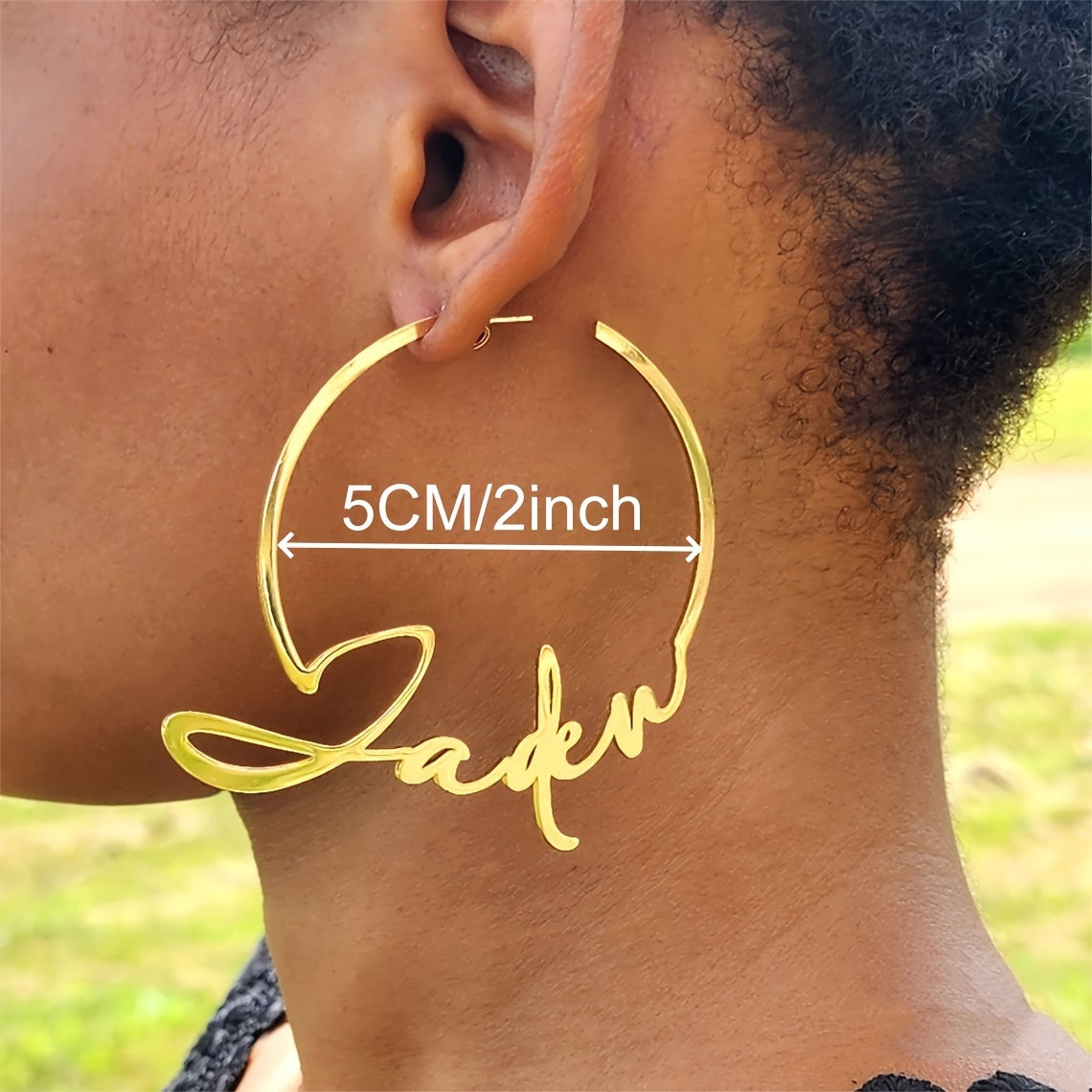 Get your own personalized name hoop earrings with a handwritten style. Made from durable stainless steel, these punk earrings are a unique addition to your jewelry collection.