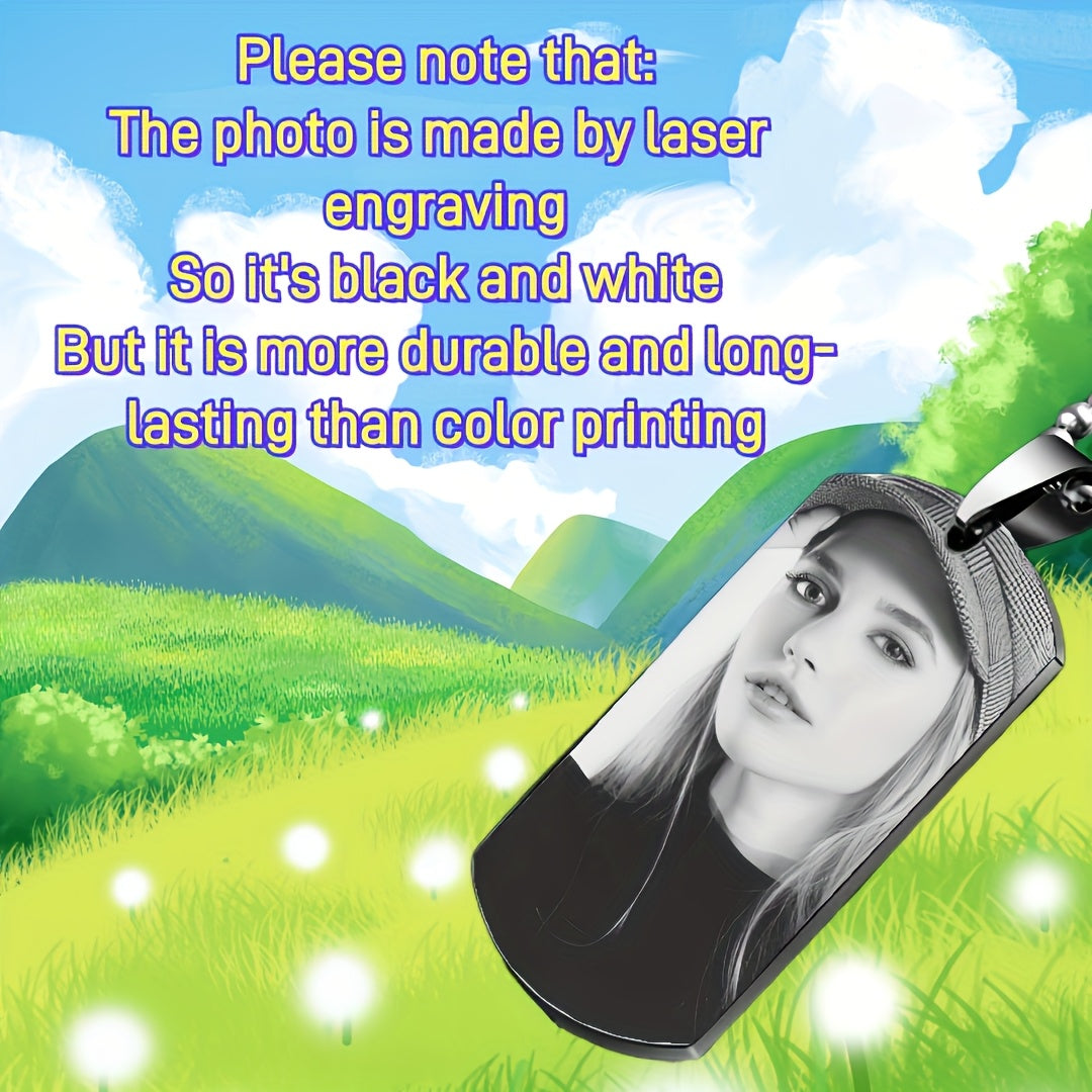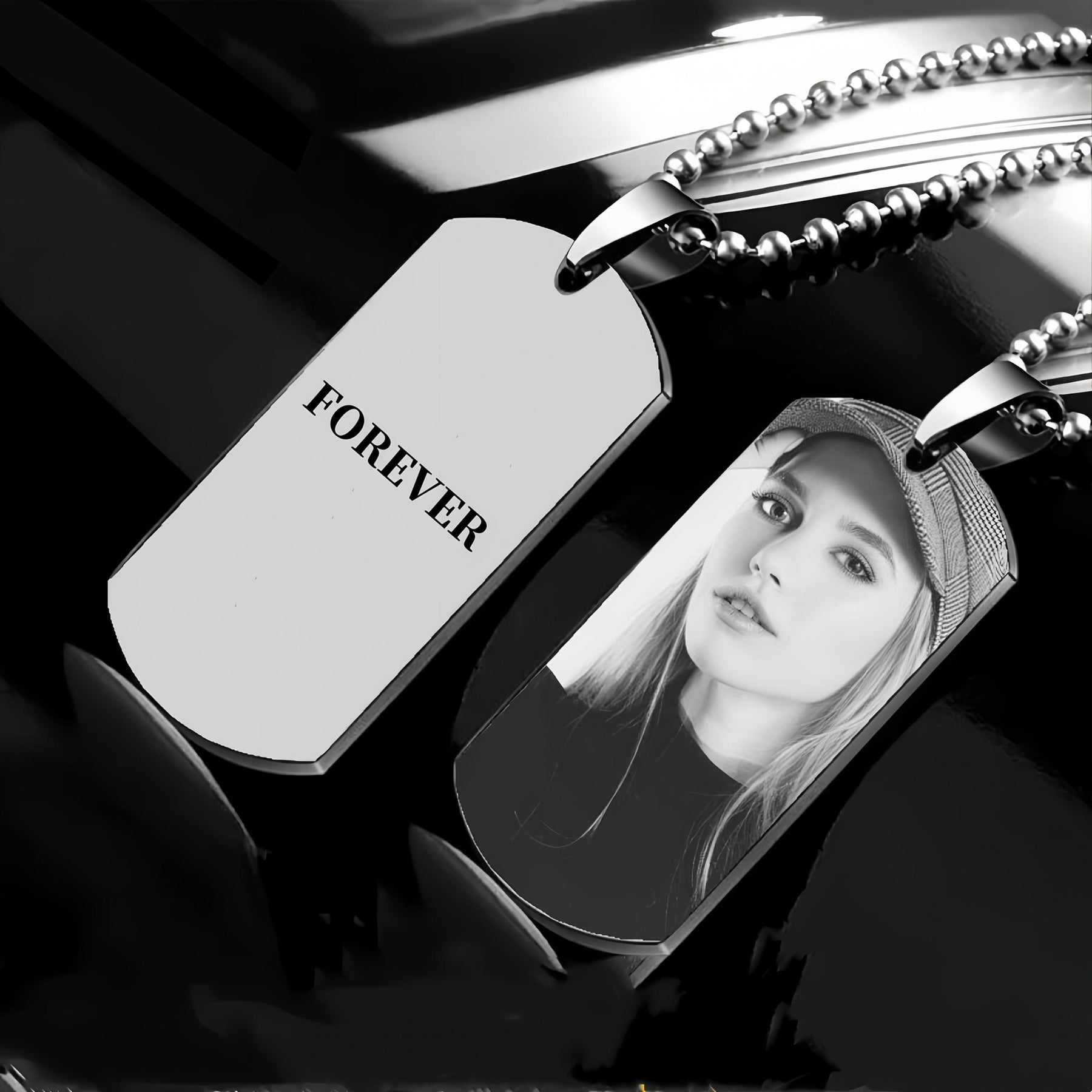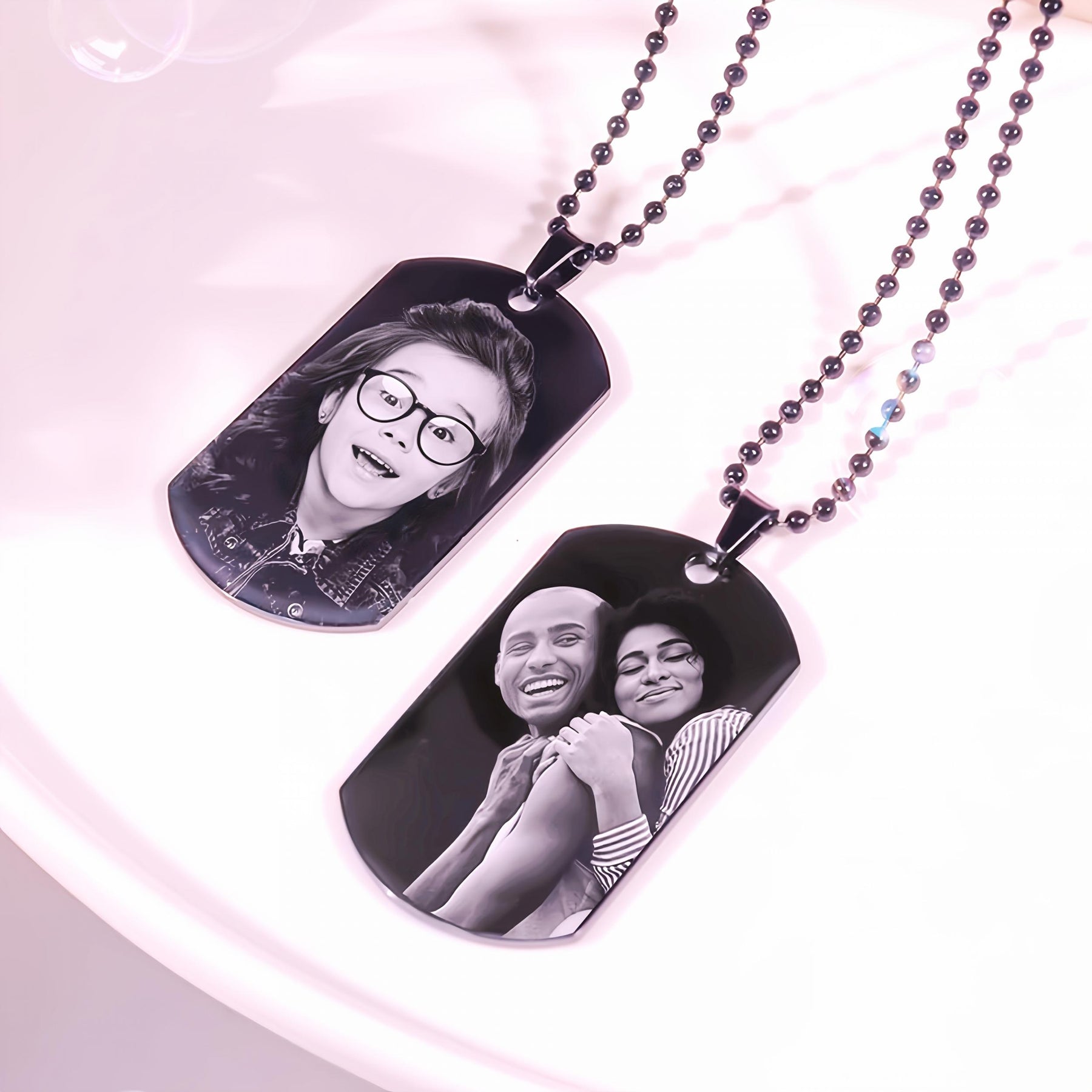 Create a unique accessory with your own photo on this personalized stainless steel dog tag pendant in a sleek gun metal finish.