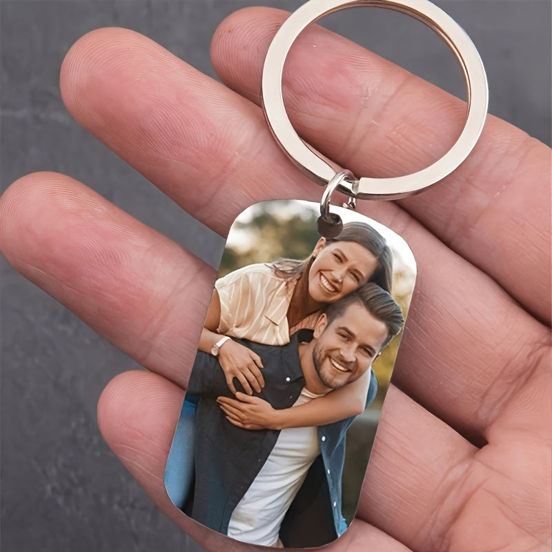This personalized stainless steel keychain features a custom photo, making it a perfect anniversary gift for couples or a unique key ring for ladies. Single piece design.