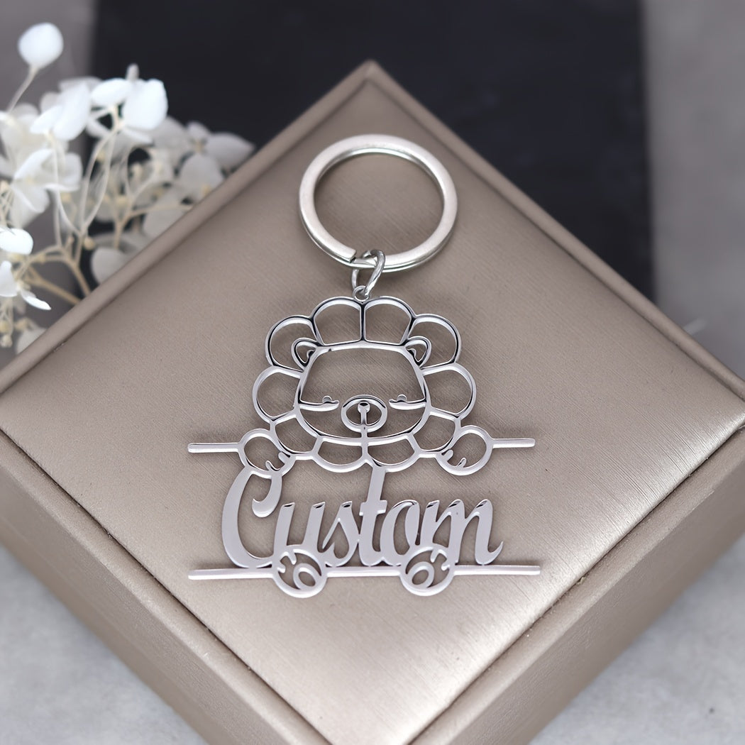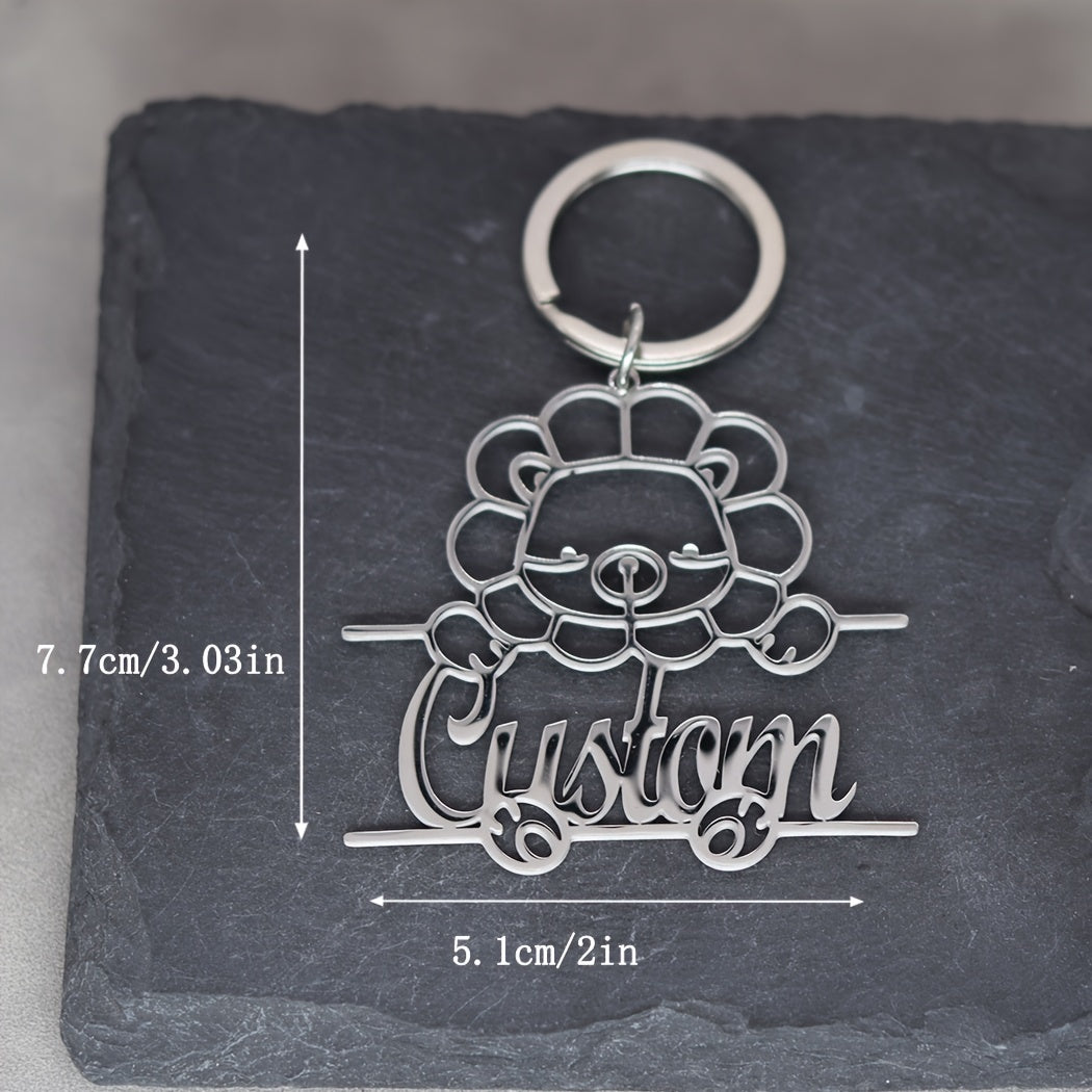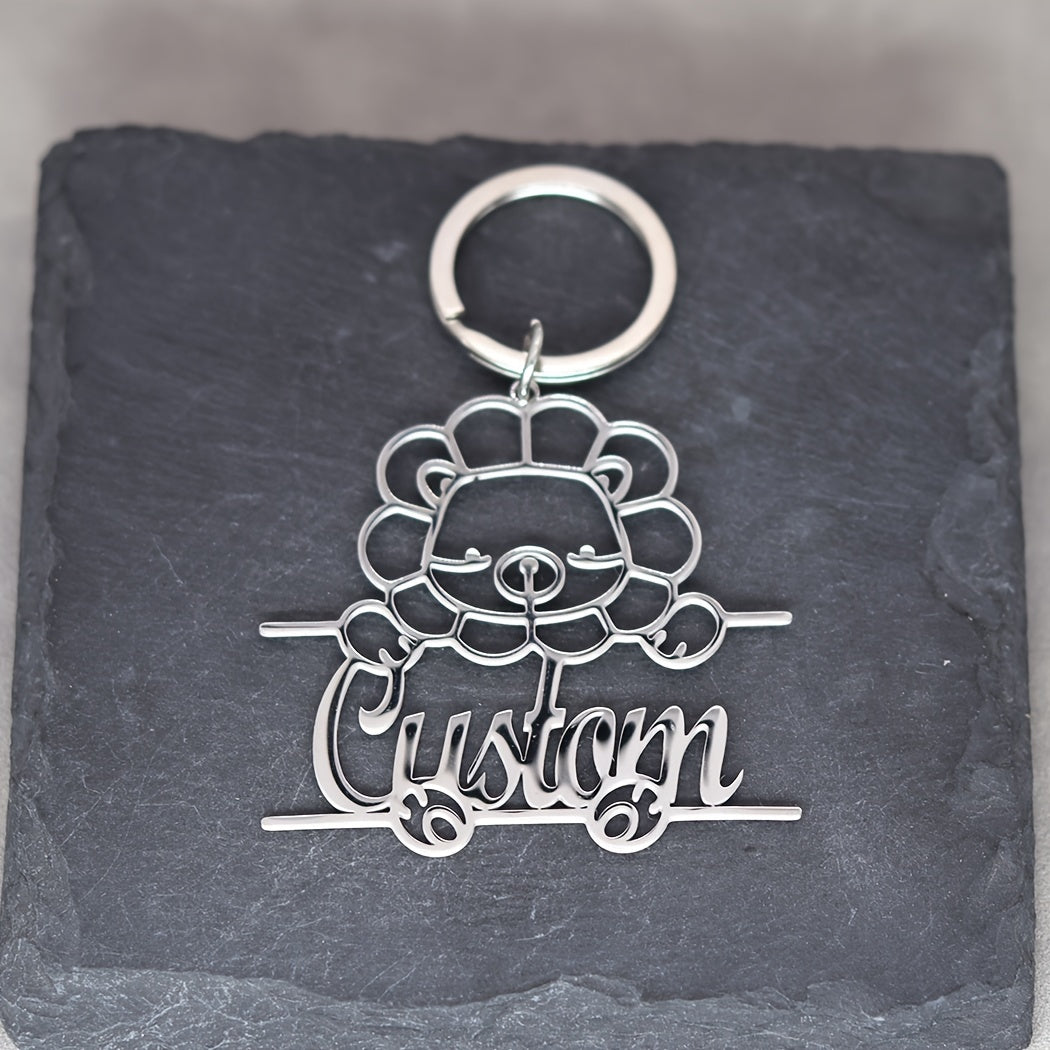 This 1pc personalized keychain features a stainless steel animal design with custom name lettering, making it a unique nameplate jewelry gift for men and women. Ideal for birthdays or special occasions.