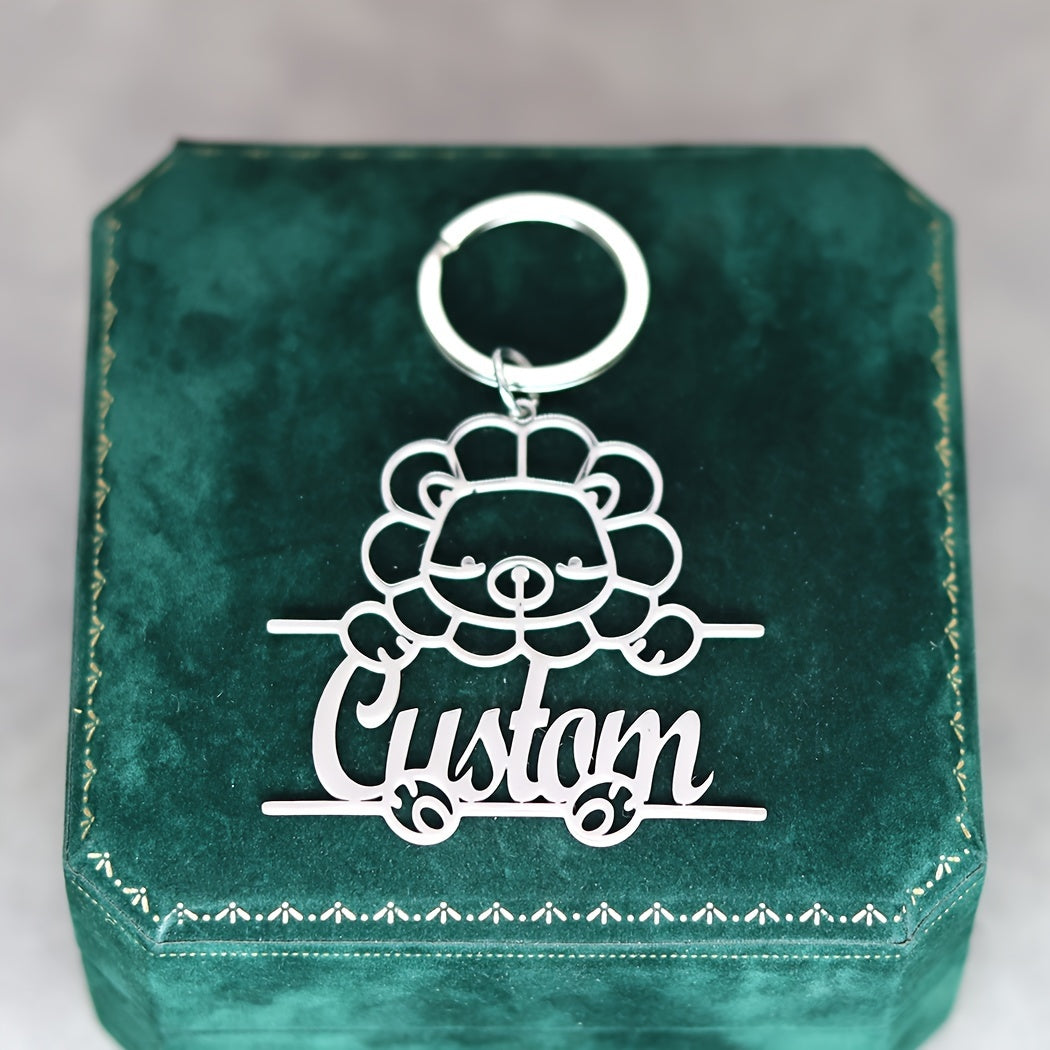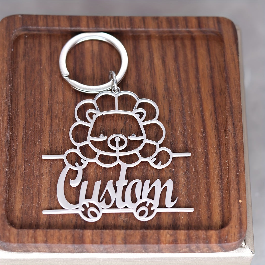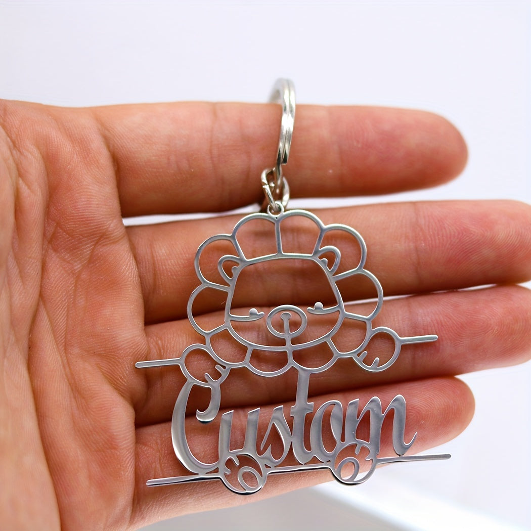 This 1pc personalized keychain features a stainless steel animal design with custom name lettering, making it a unique nameplate jewelry gift for men and women. Ideal for birthdays or special occasions.
