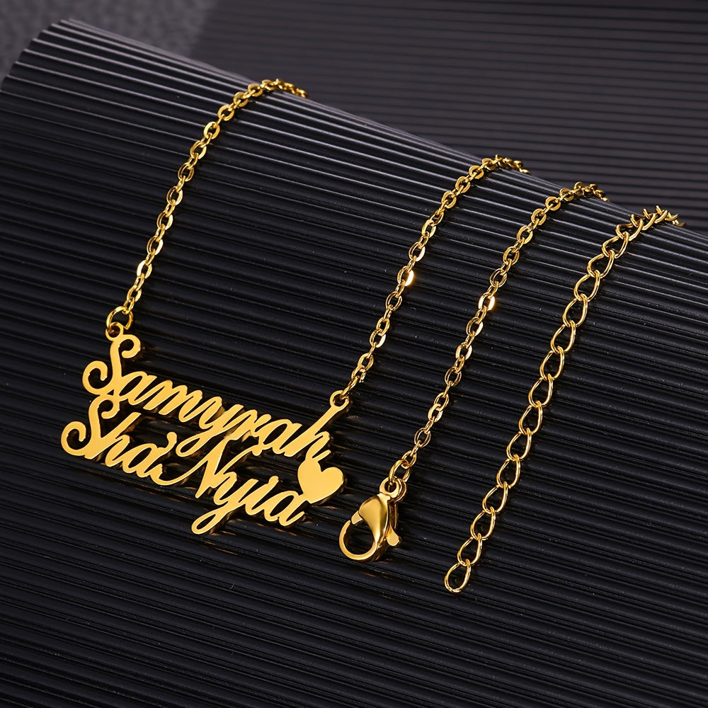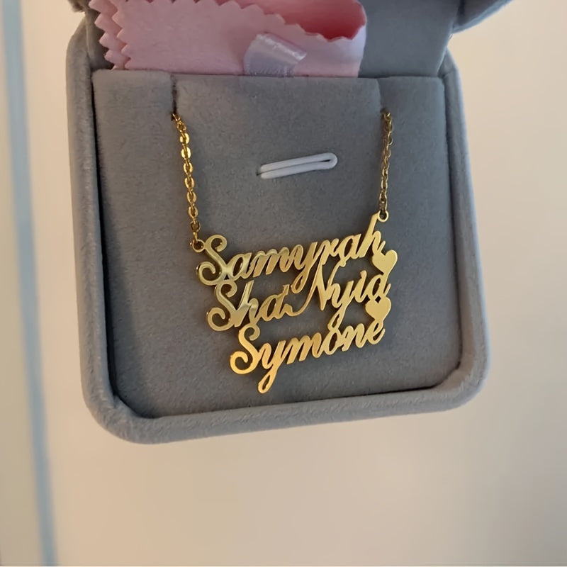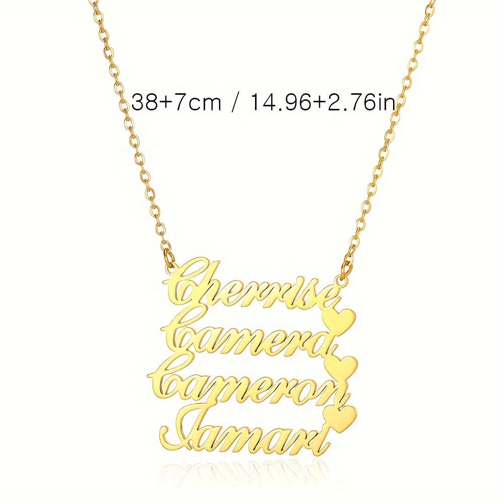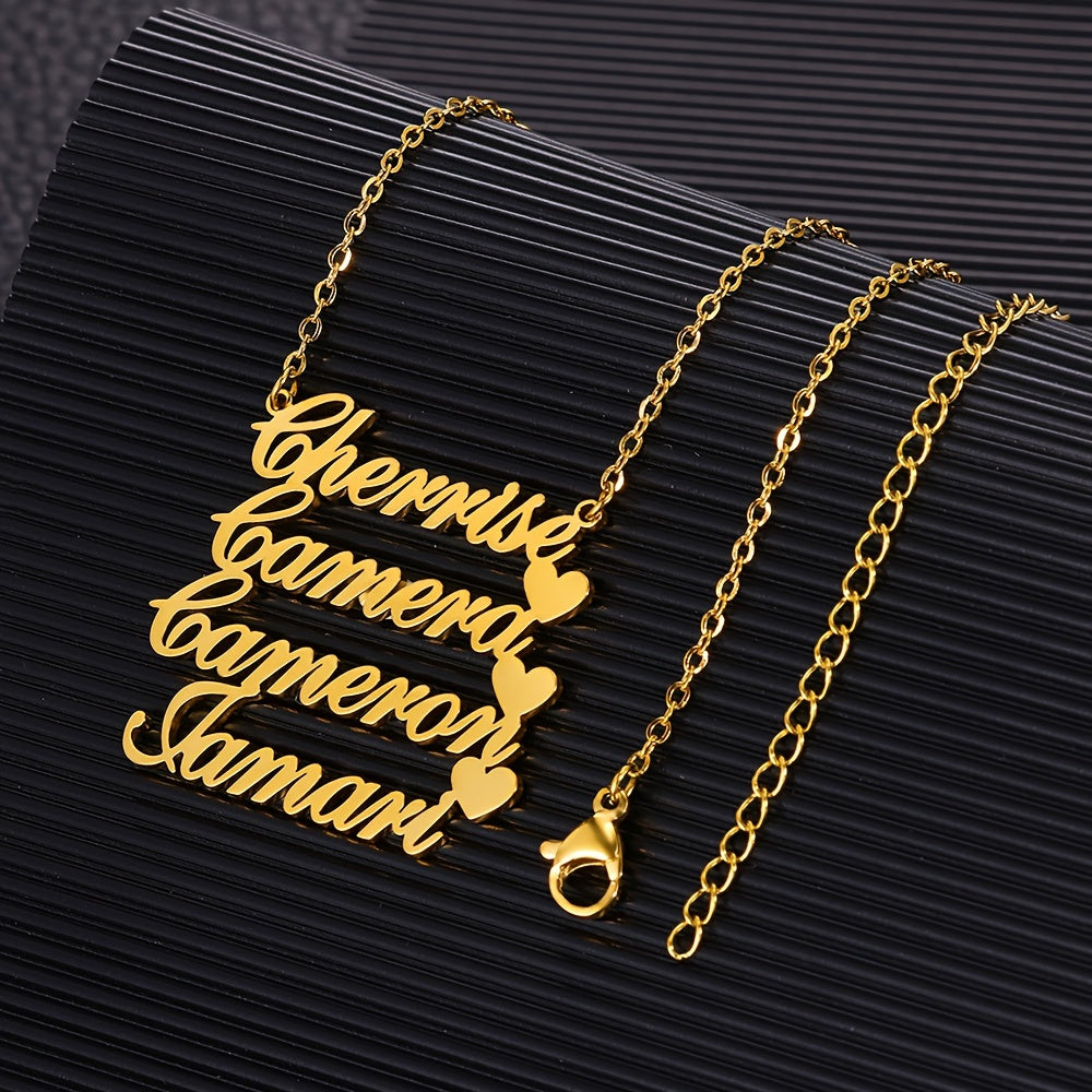 This personalized stainless steel heart necklace features custom names and is ideal for gifting to grandmothers and moms. The 18K golden plated finish makes it perfect for daily wear in all seasons.
