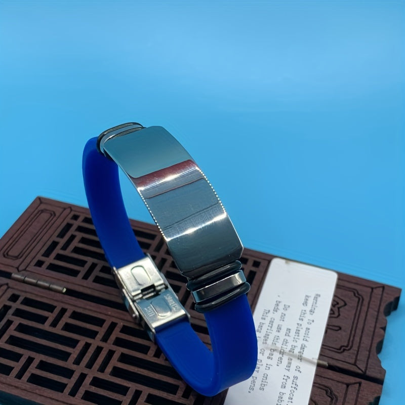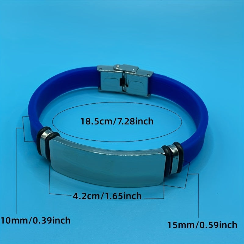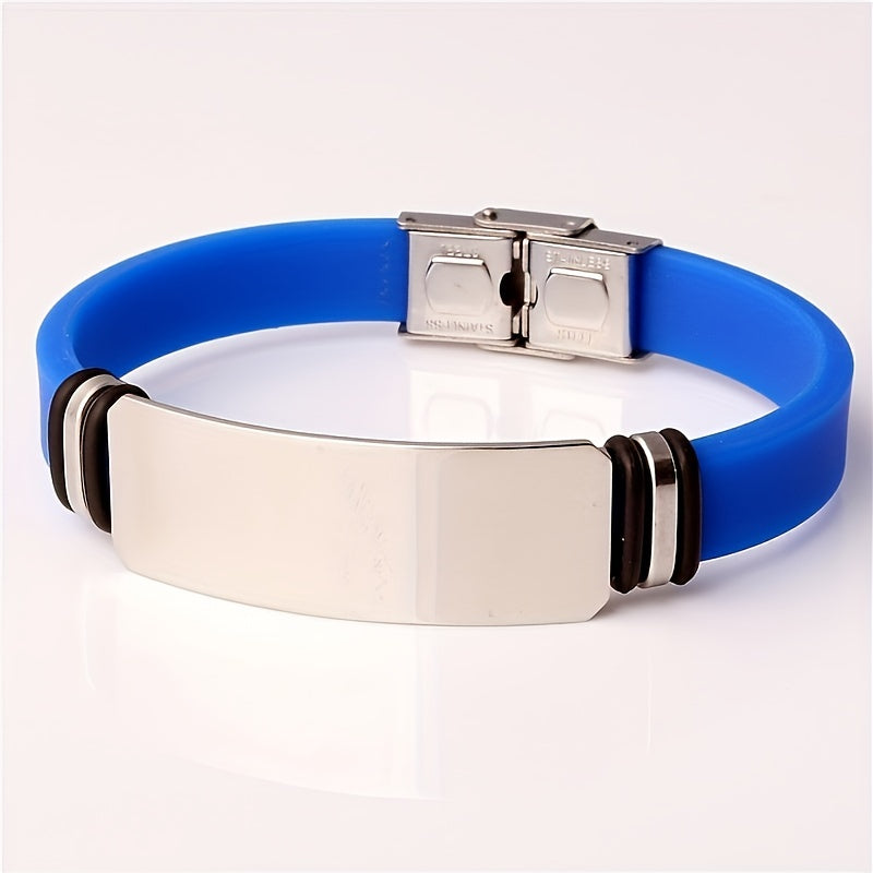 This personalized men's leather bracelet features a stainless steel charm that can be customized with your own unique text. A stylish accessory for men.
