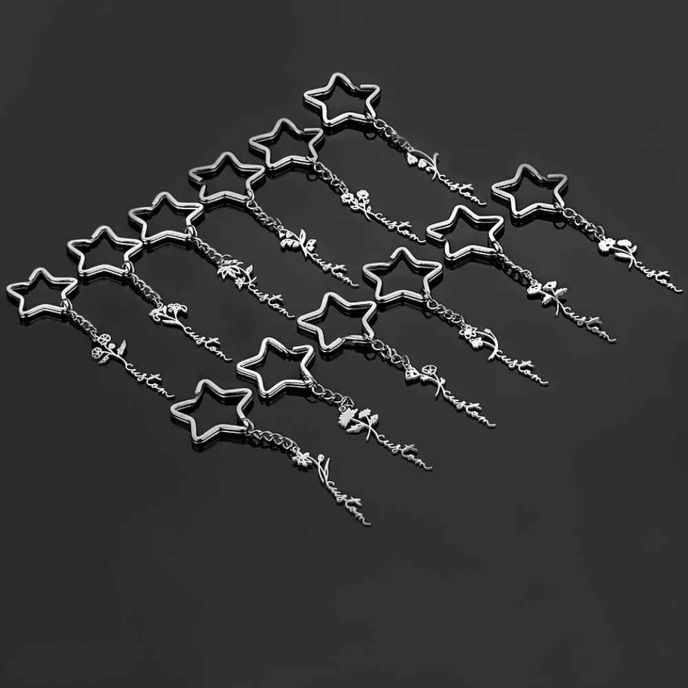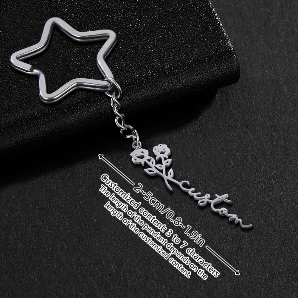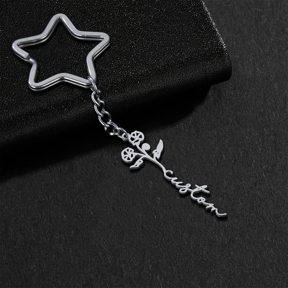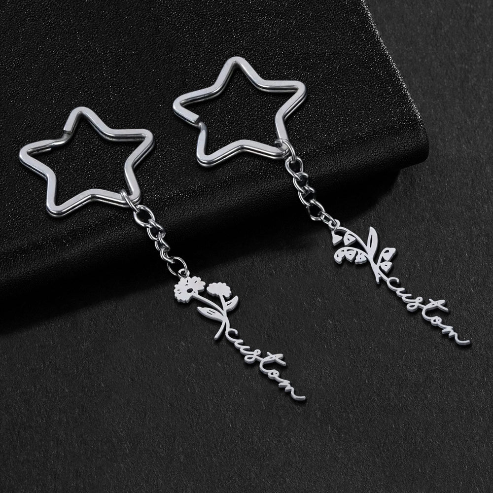 Personalized keychain with birthflower and star charms, ideal bag accessory for women. Perfect birthday gift for a loved one.