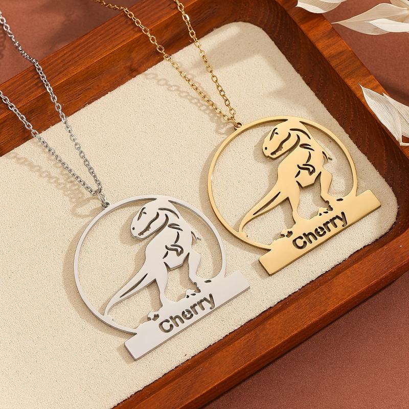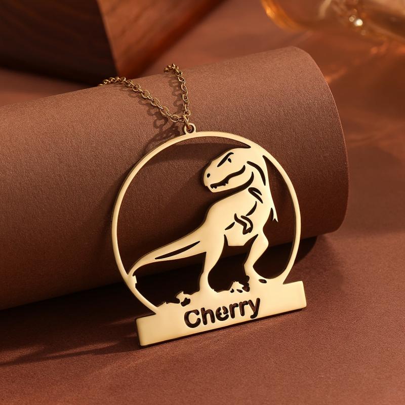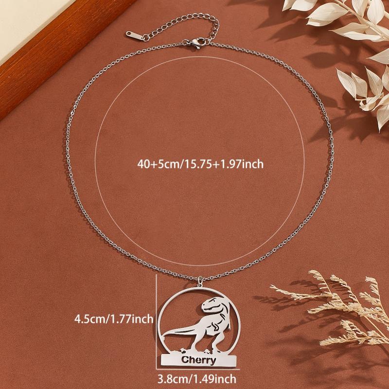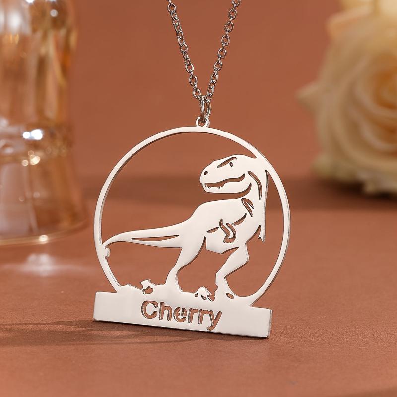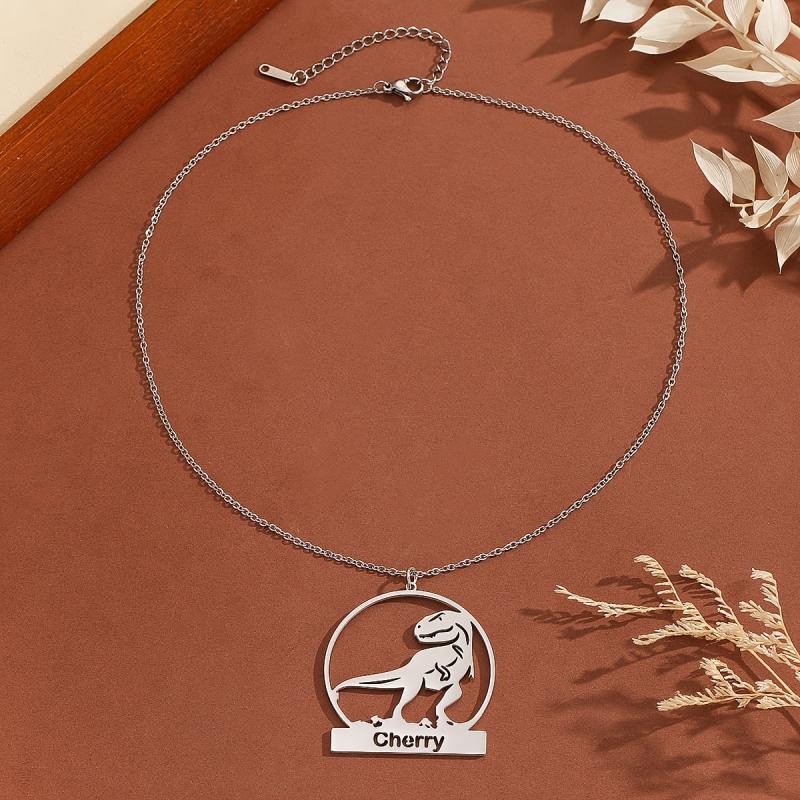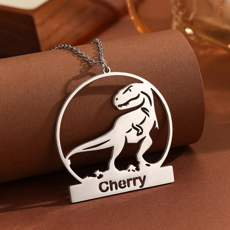 Show off your style with this personalized dinosaurs pendant necklace. Made of stainless steel, it's a perfect gift for boys' birthdays.