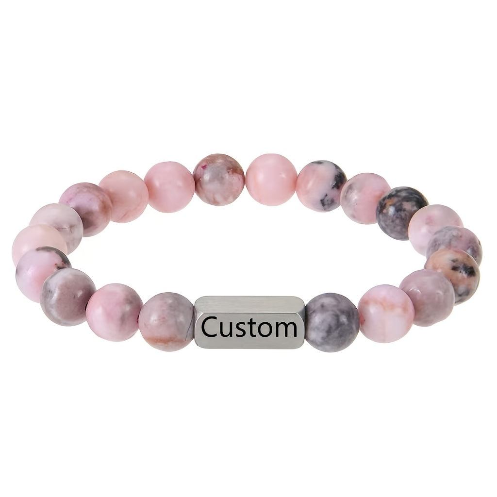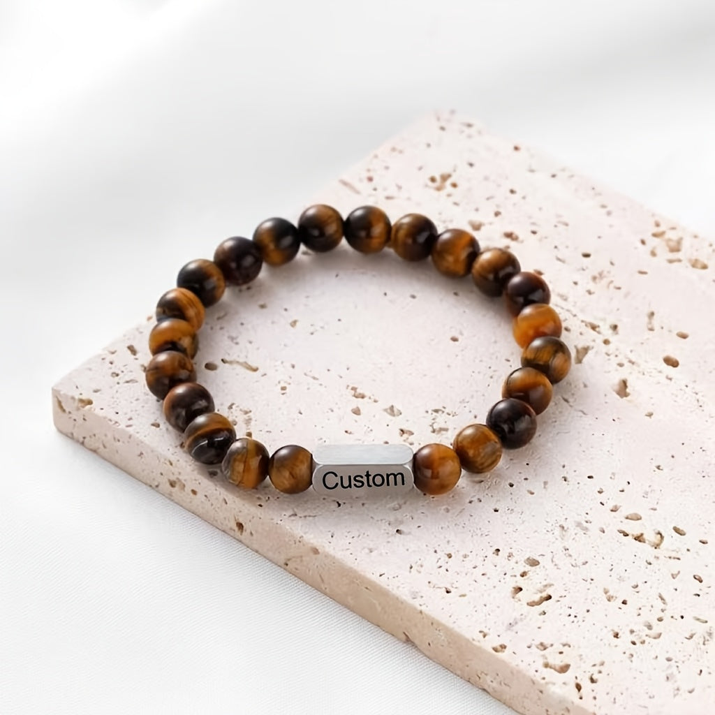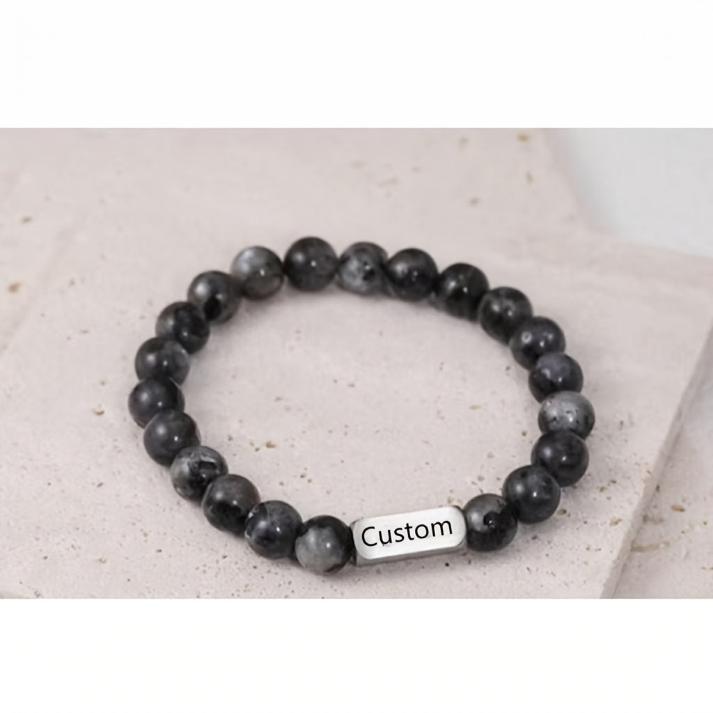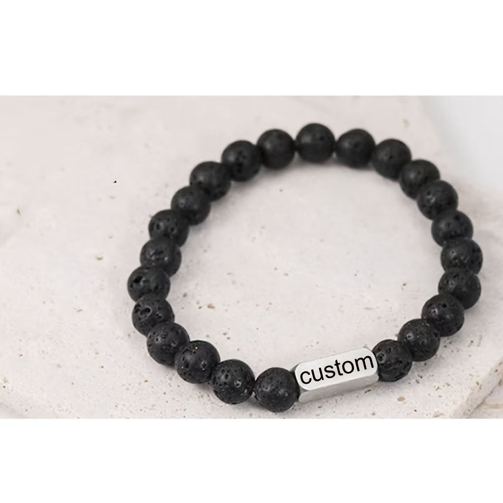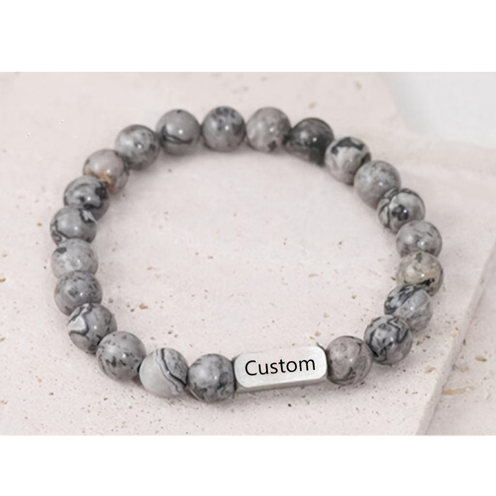 This custom engraved natural stone bracelet features a sleek elastic fit, perfect for casual attire. It makes an ideal gift for birthdays, anniversaries, or any special occasion.