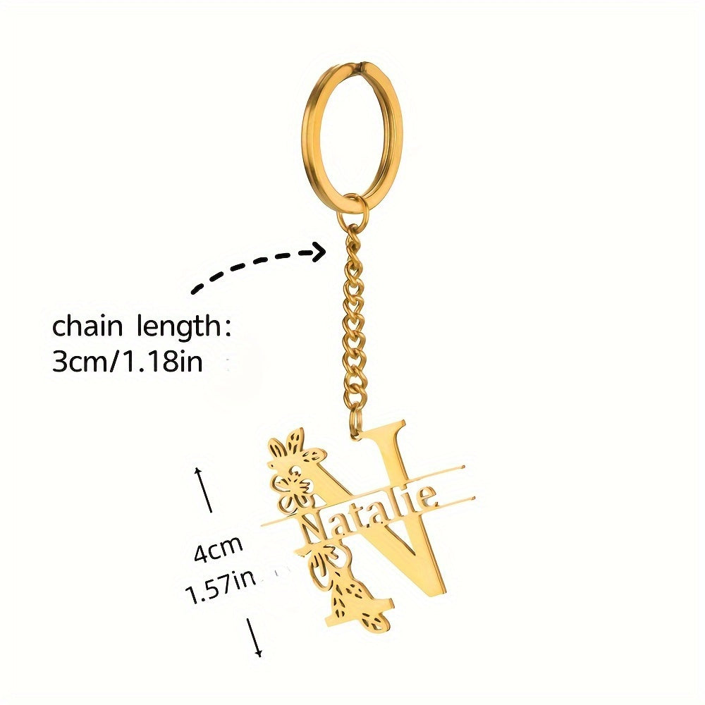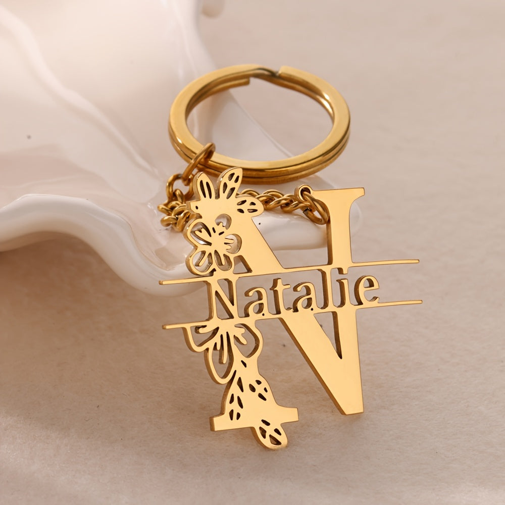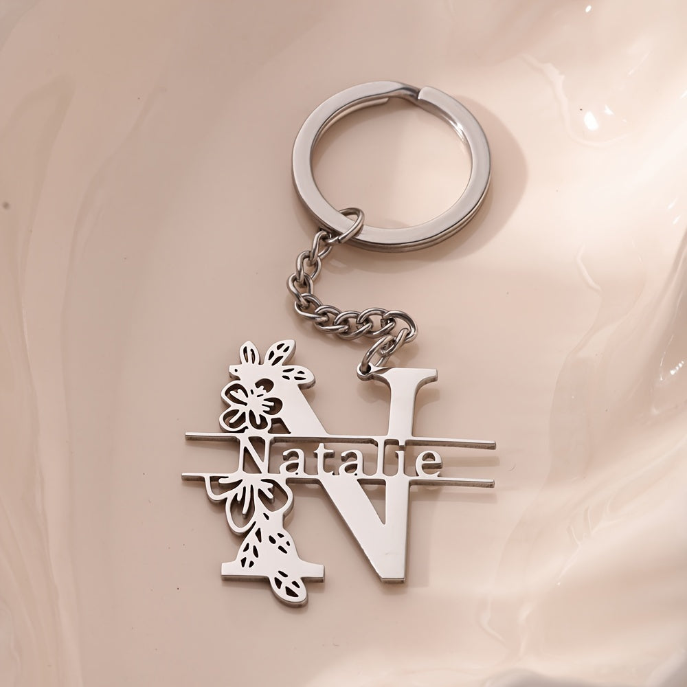 This customized keychain features a floral design and can be personalized with a name or initial. It makes a great gift for graduations, birthdays, or as a Christmas present.