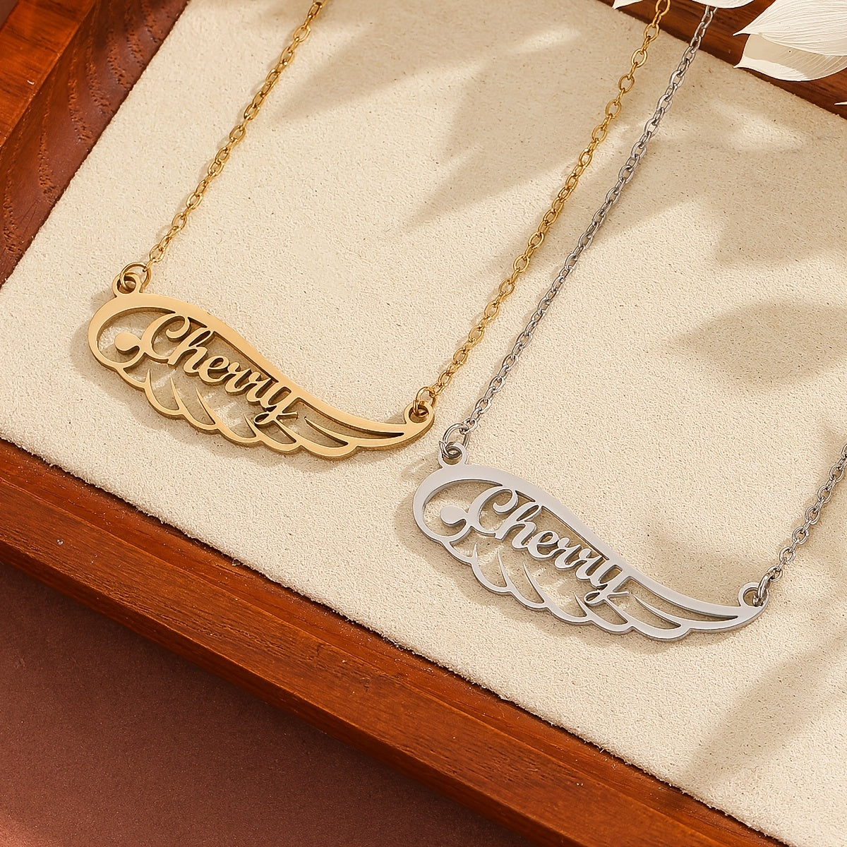 This beautiful angel wing necklace is a perfect accessory for daily wear. It features a personalized touch that adds a special meaning to your outfit.