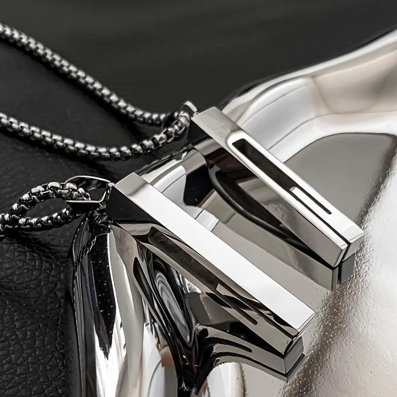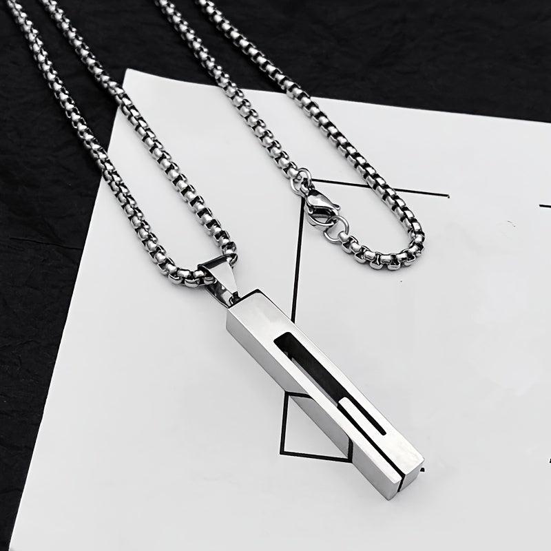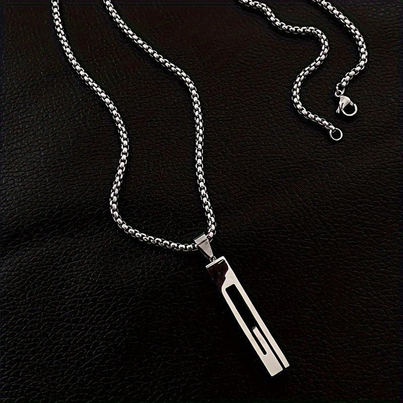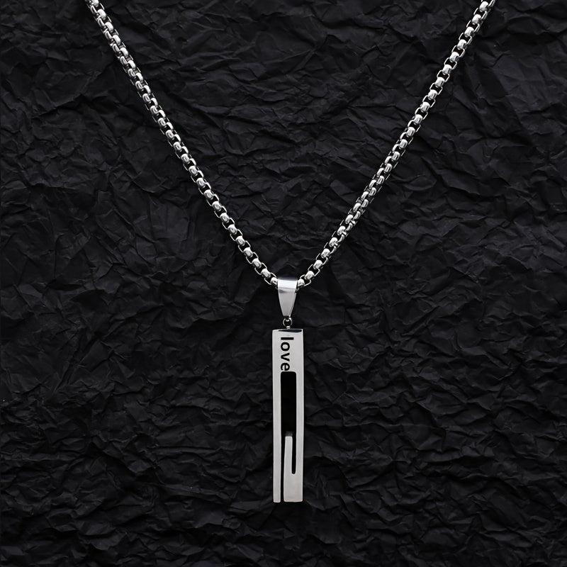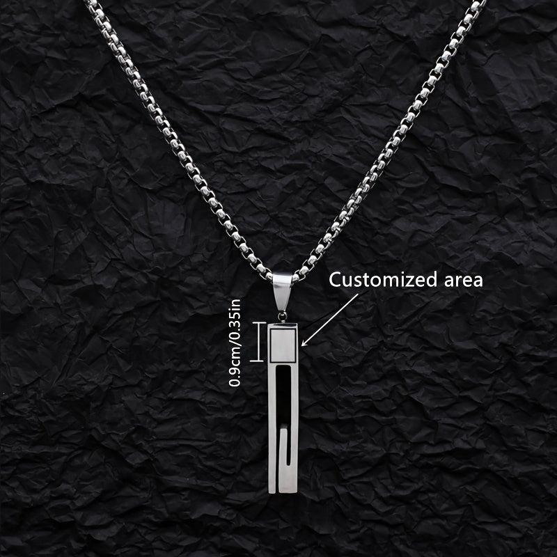 Elegant men's pendant necklace crafted with stainless steel, featuring a customizable engravable design. This modern minimalist accessory adds a touch of sophistication to any outfit.