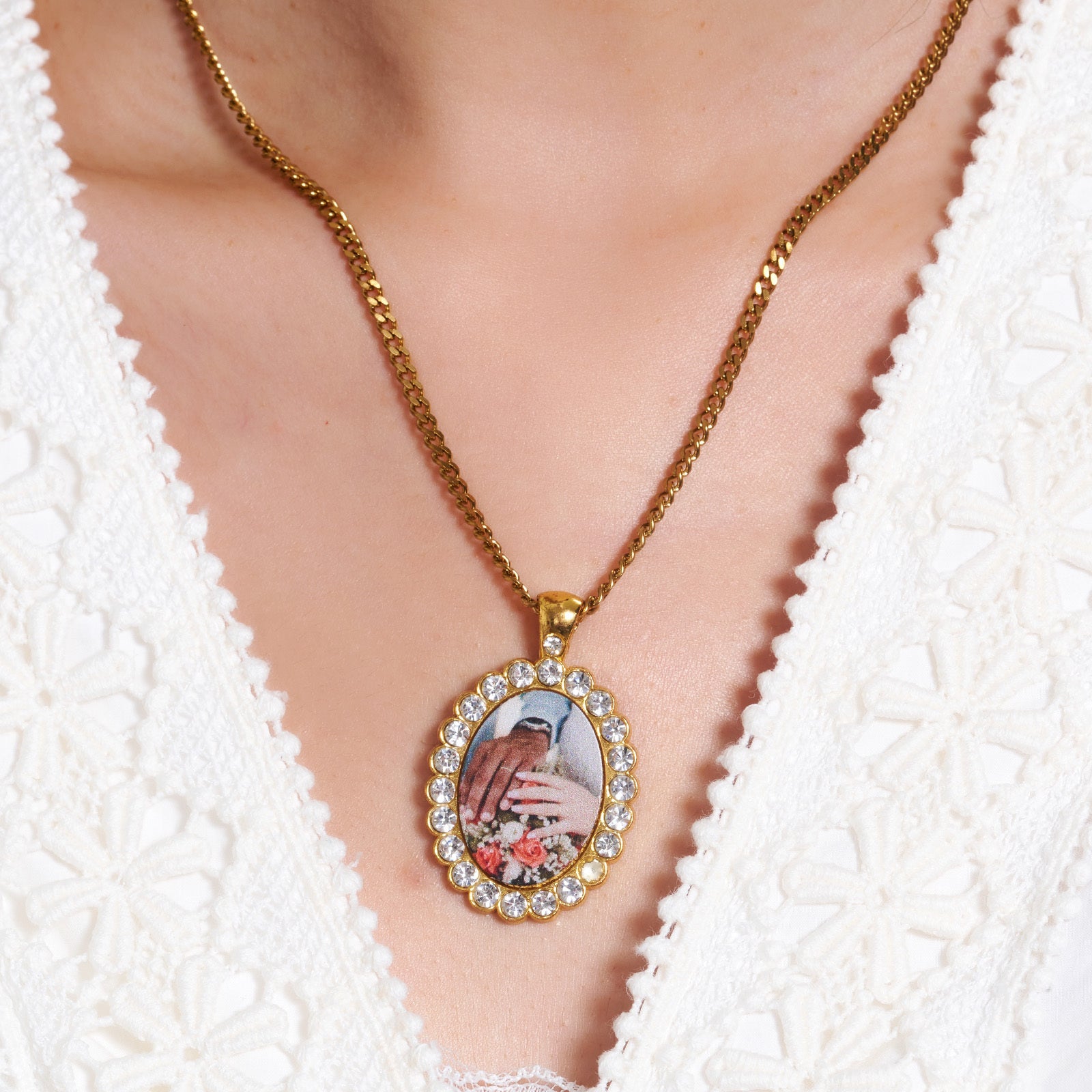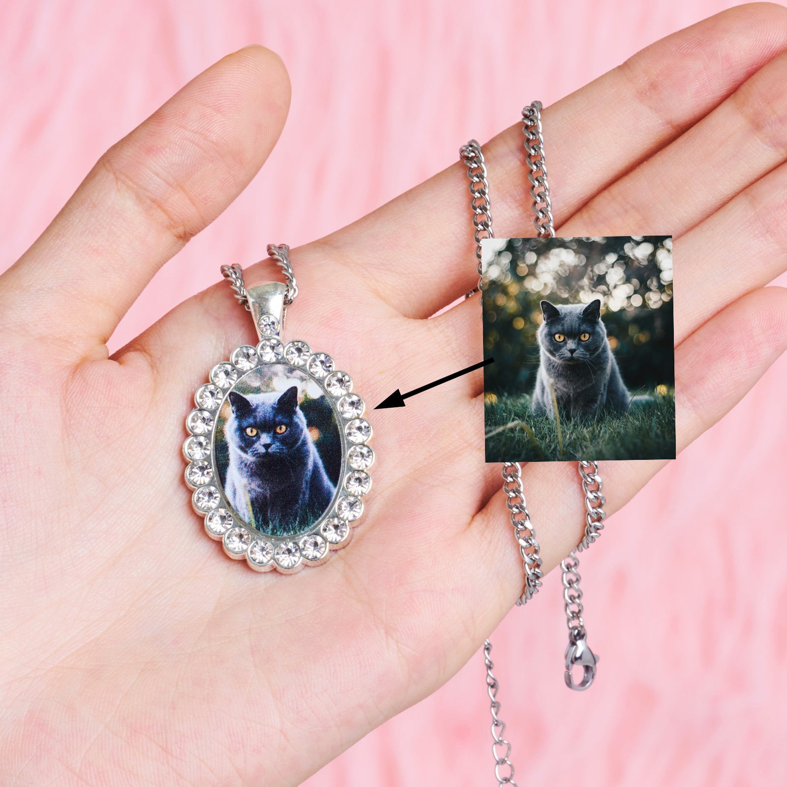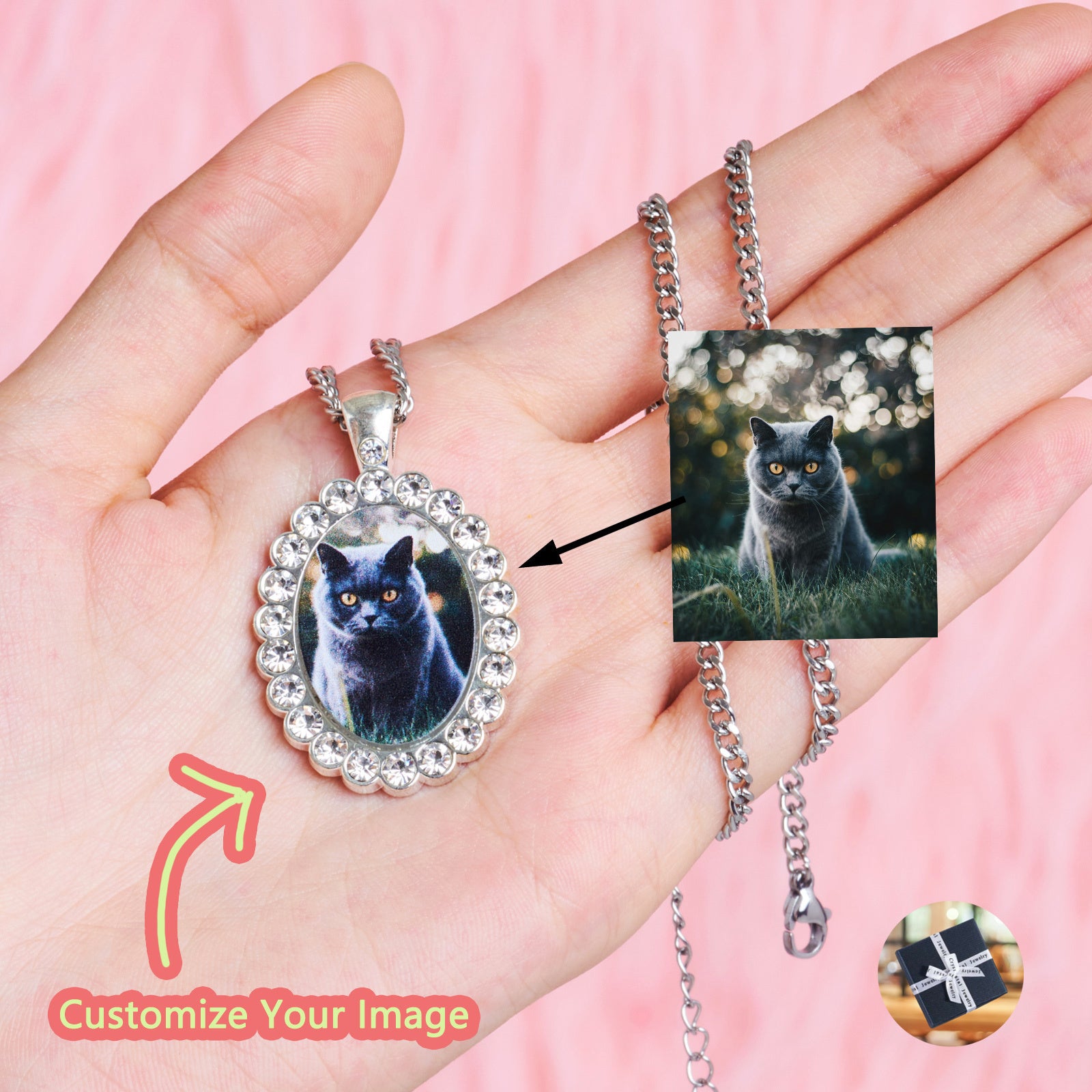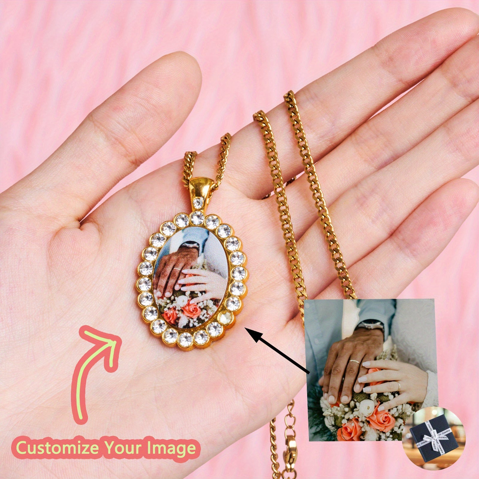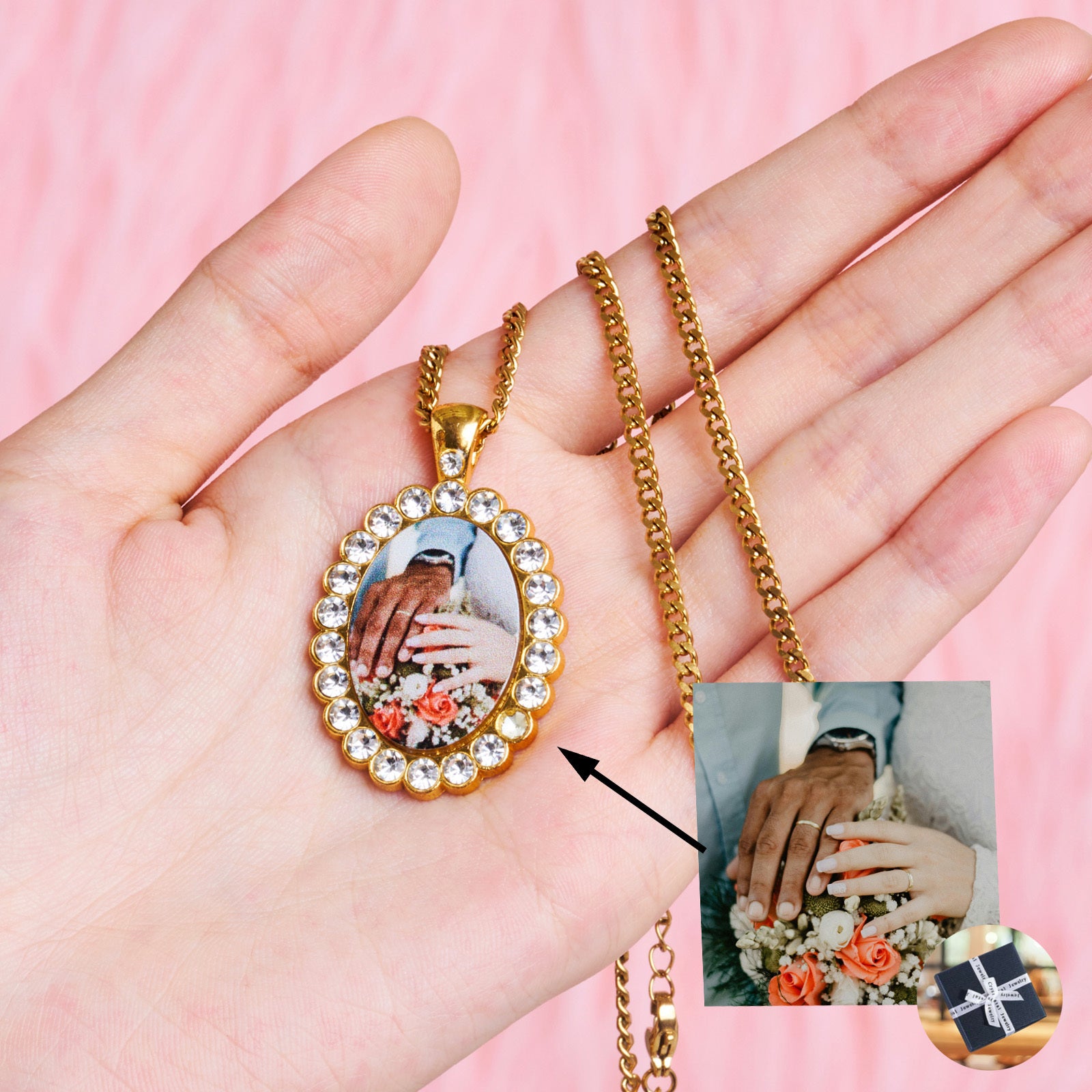 Capture memories with this sparkling photo pendant necklace featuring acrylic oval pendant with rhinestone accents. Perfect gift for birthdays, anniversaries, or to show appreciation to a mother, girlfriend, or wife.