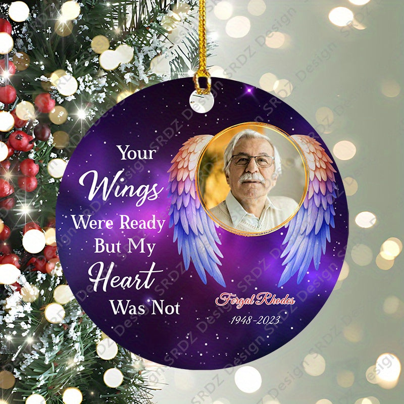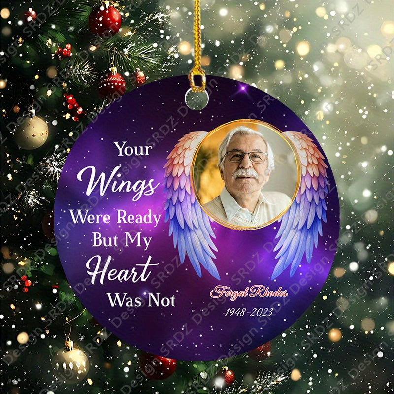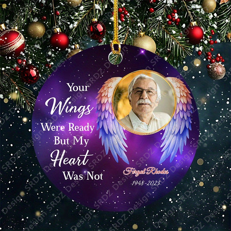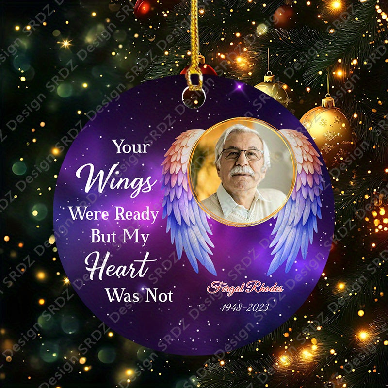 Memorialize loved ones with this customized year photo angel wings jewelry. Perfect gift for family and friends.