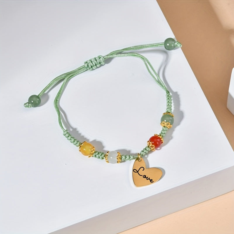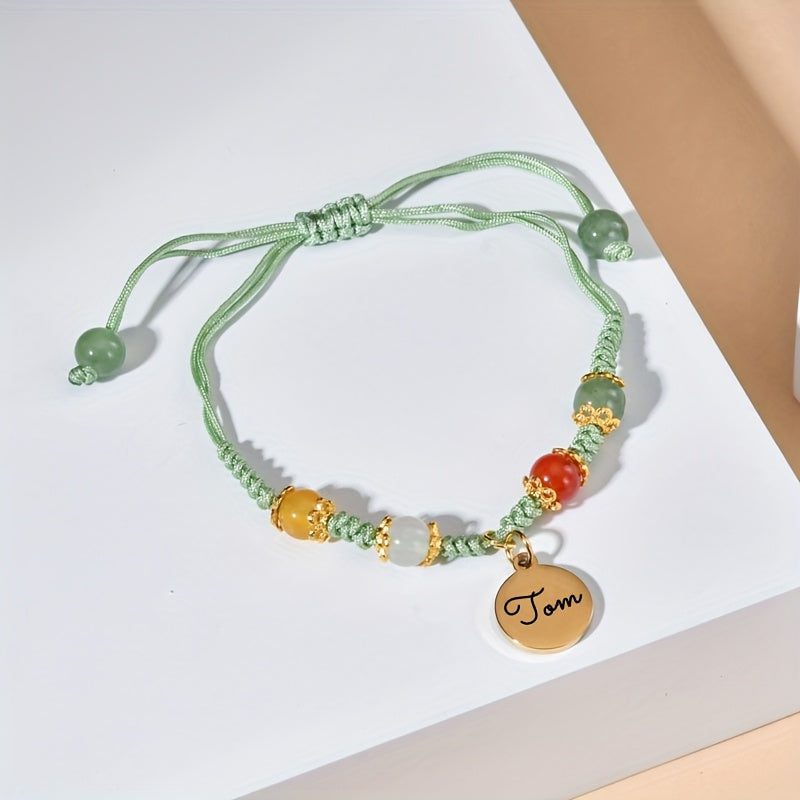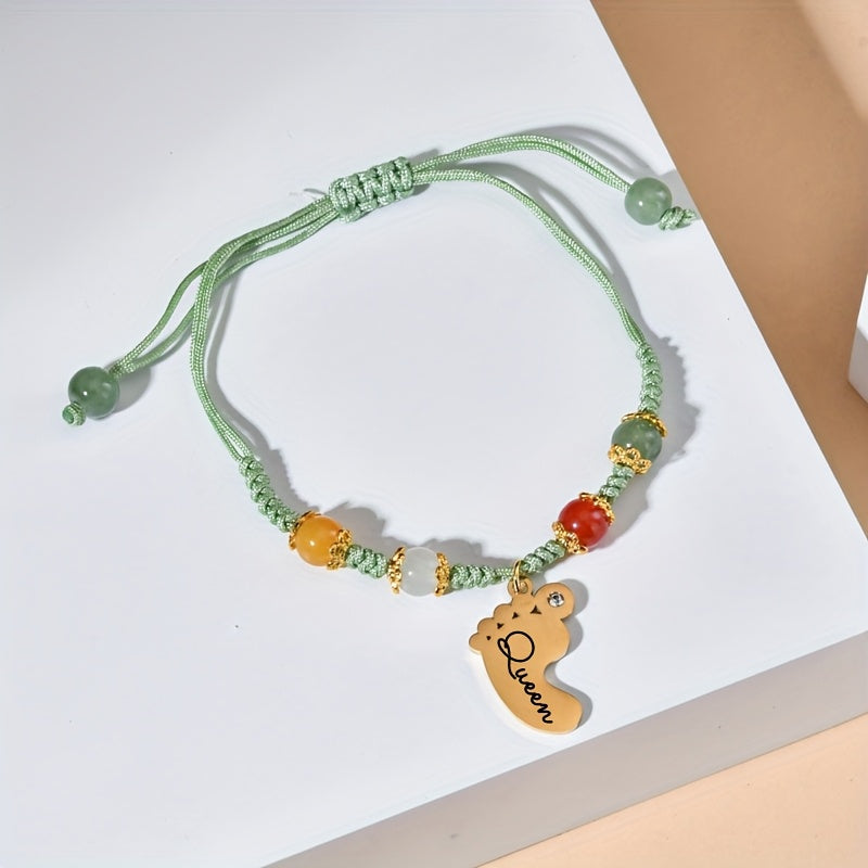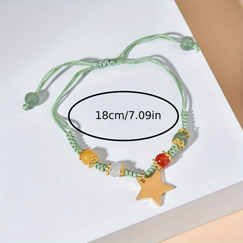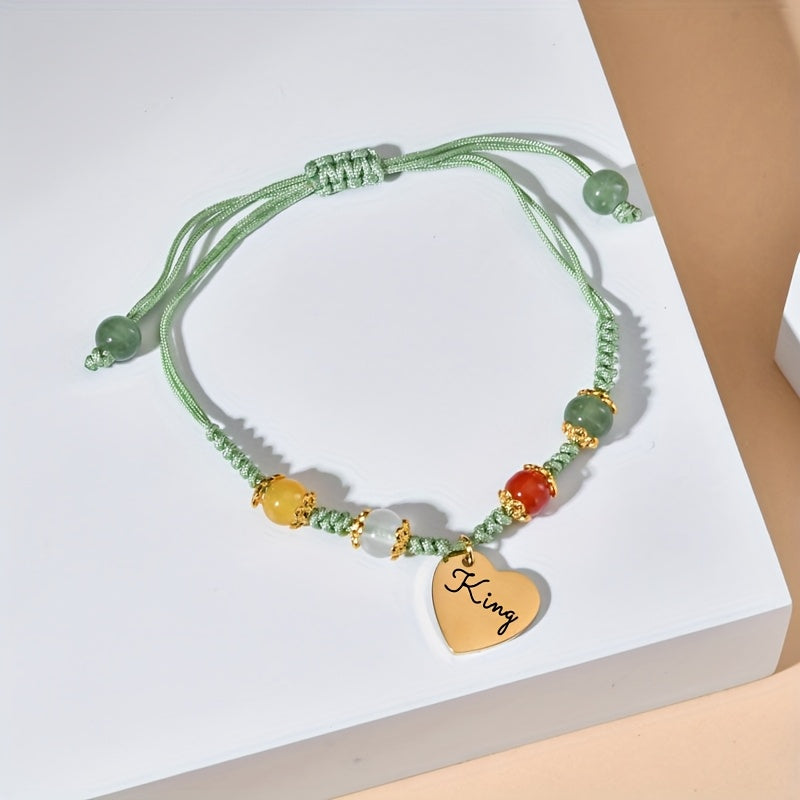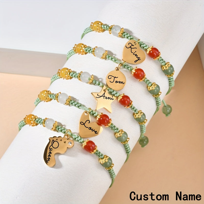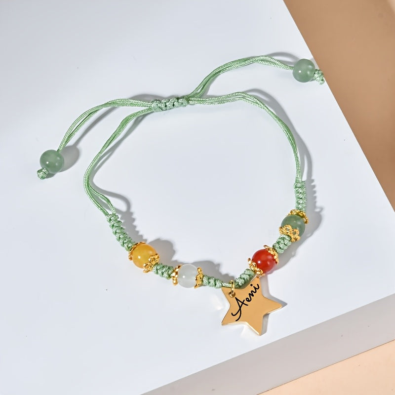 This braided rope bracelet features golden tone heart and star charms, along with a custom name charm. It is a perfect gift for women, family, and friends, especially for special occasions like Valentine's Day.