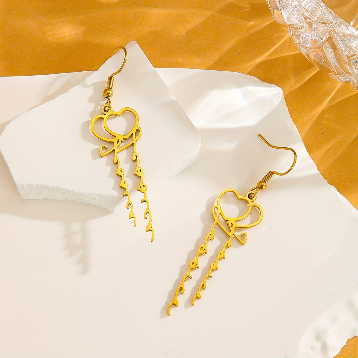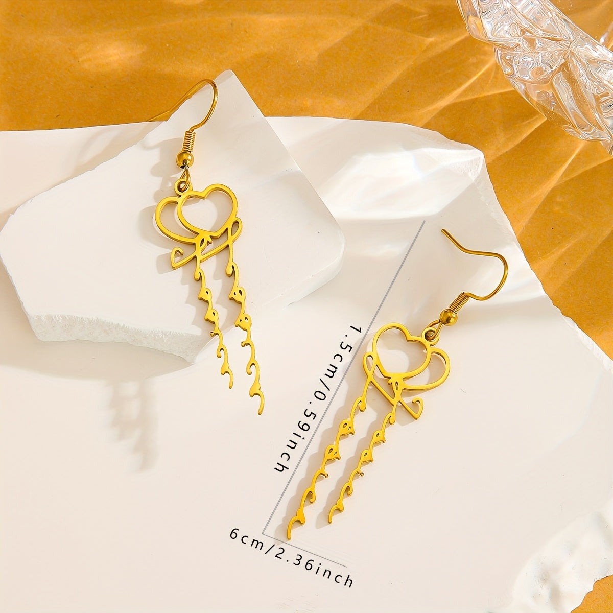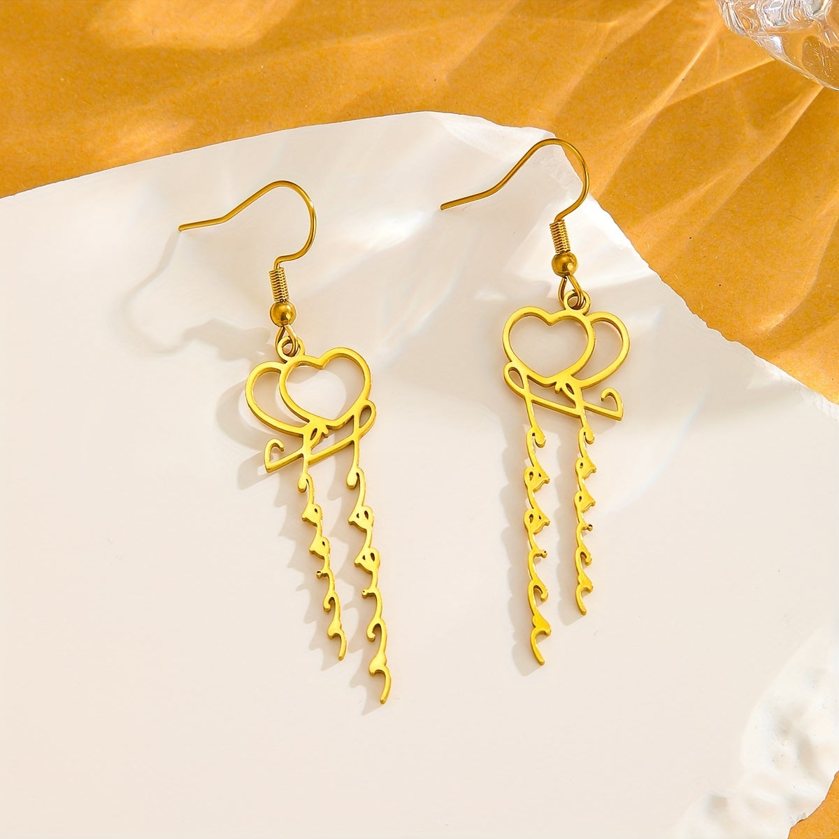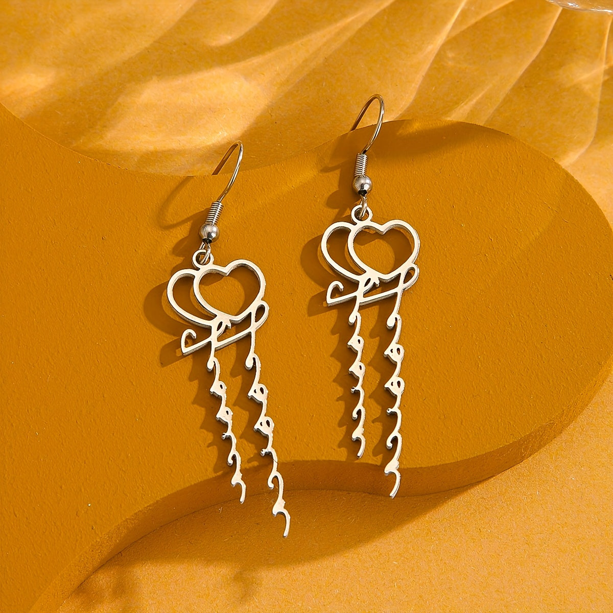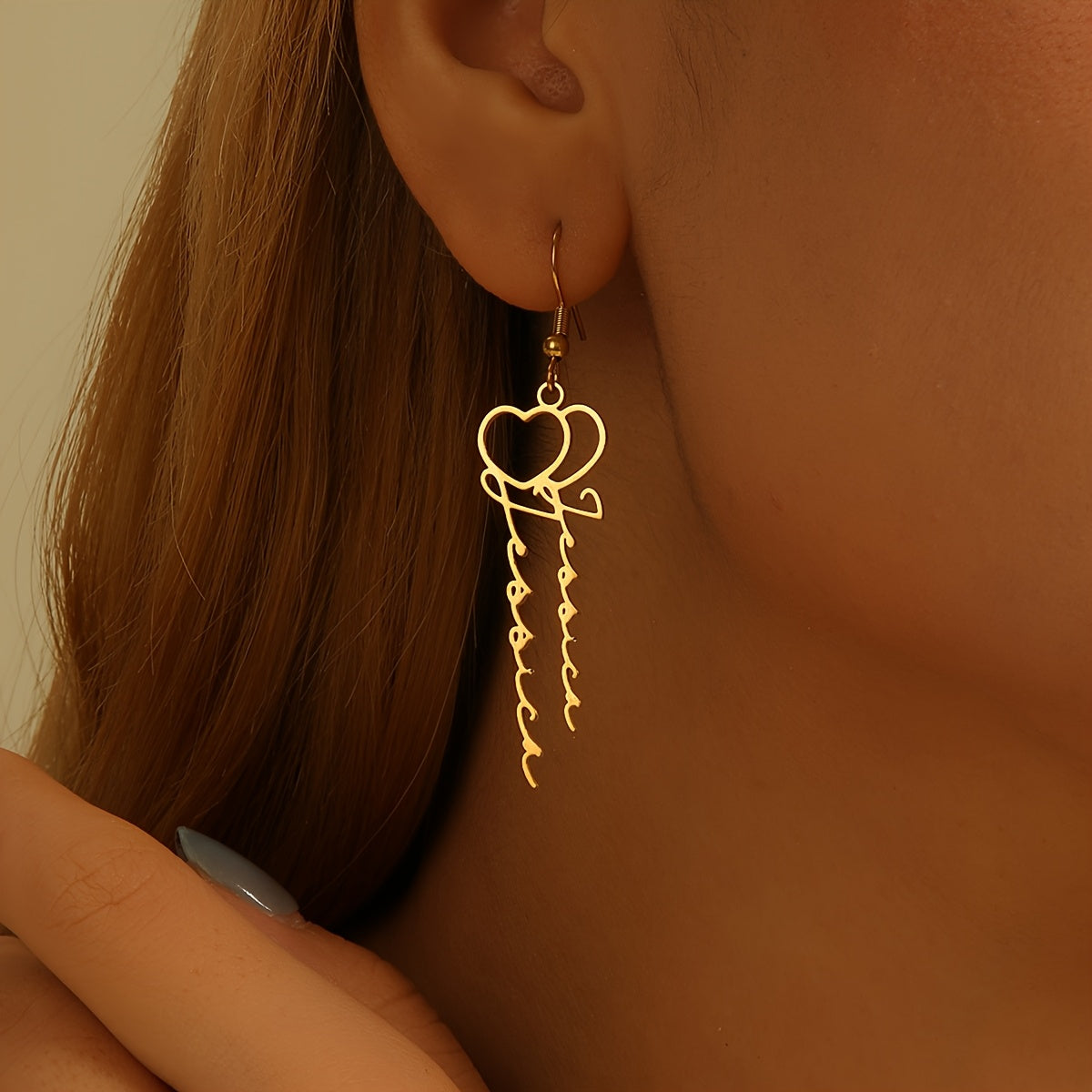Beautiful double heart earrings made of stainless steel, customized with couple's names. Perfect for daily wear or special occasions.