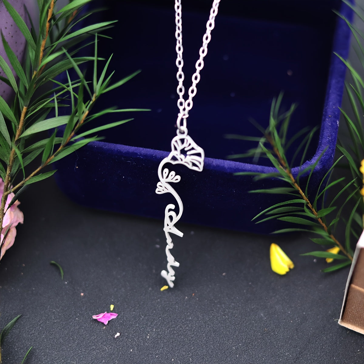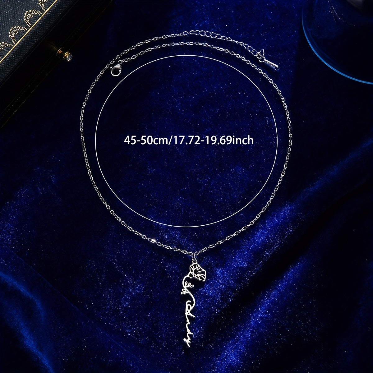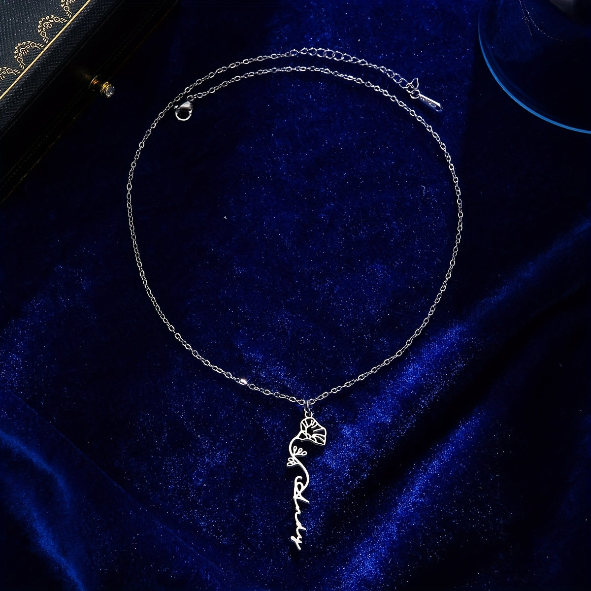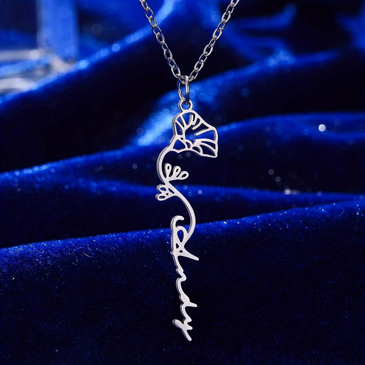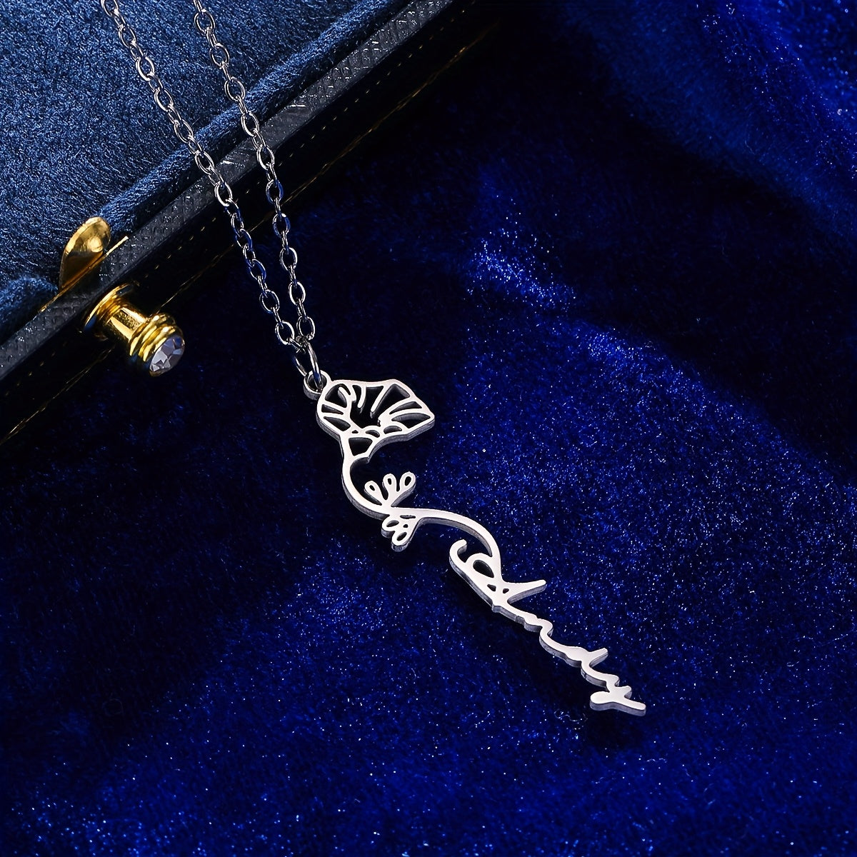This customized flower pendant necklace is crafted from stainless steel, featuring a delicate floral design. It makes an ideal birthday gift for her and is suitable for casual attire.