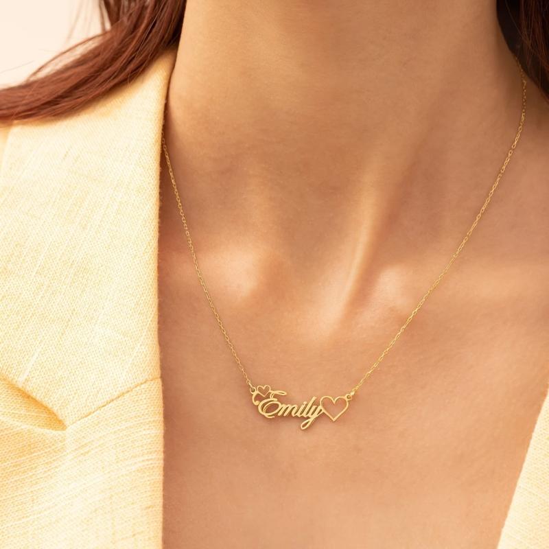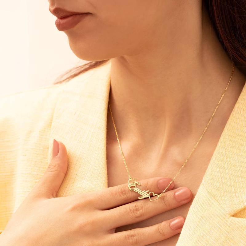 This customized name necklace features a heart shape pendant, perfect for daily wear or as a gift for Valentine's Day. Made from durable stainless steel.