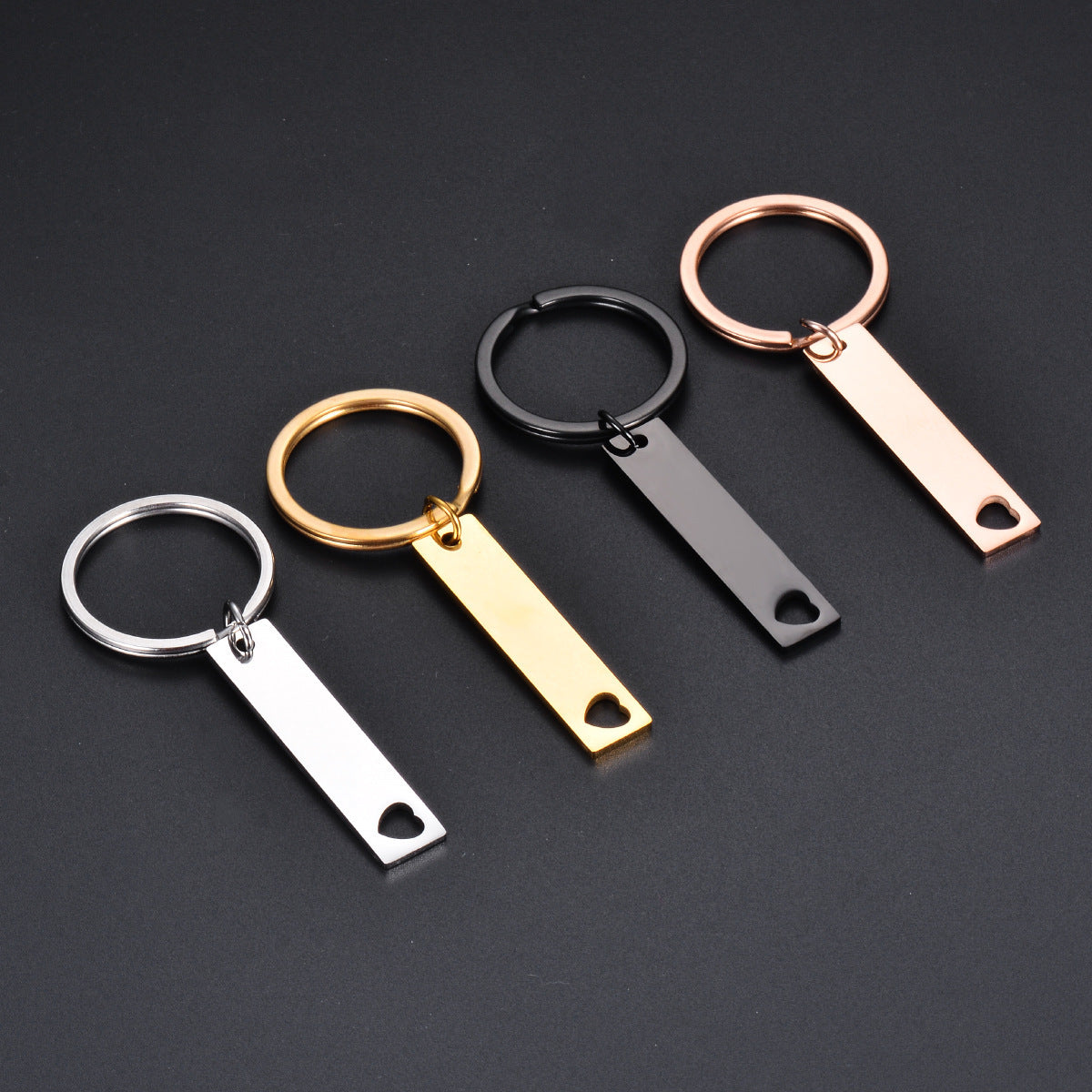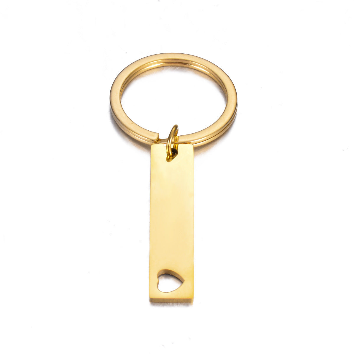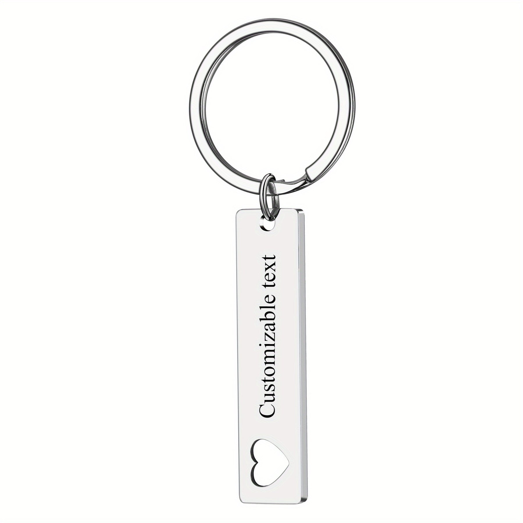 This customizable keychain features a heart-shaped tag and is made of high-quality stainless steel. Engrave a personalized message or text of your choice on this key holder.