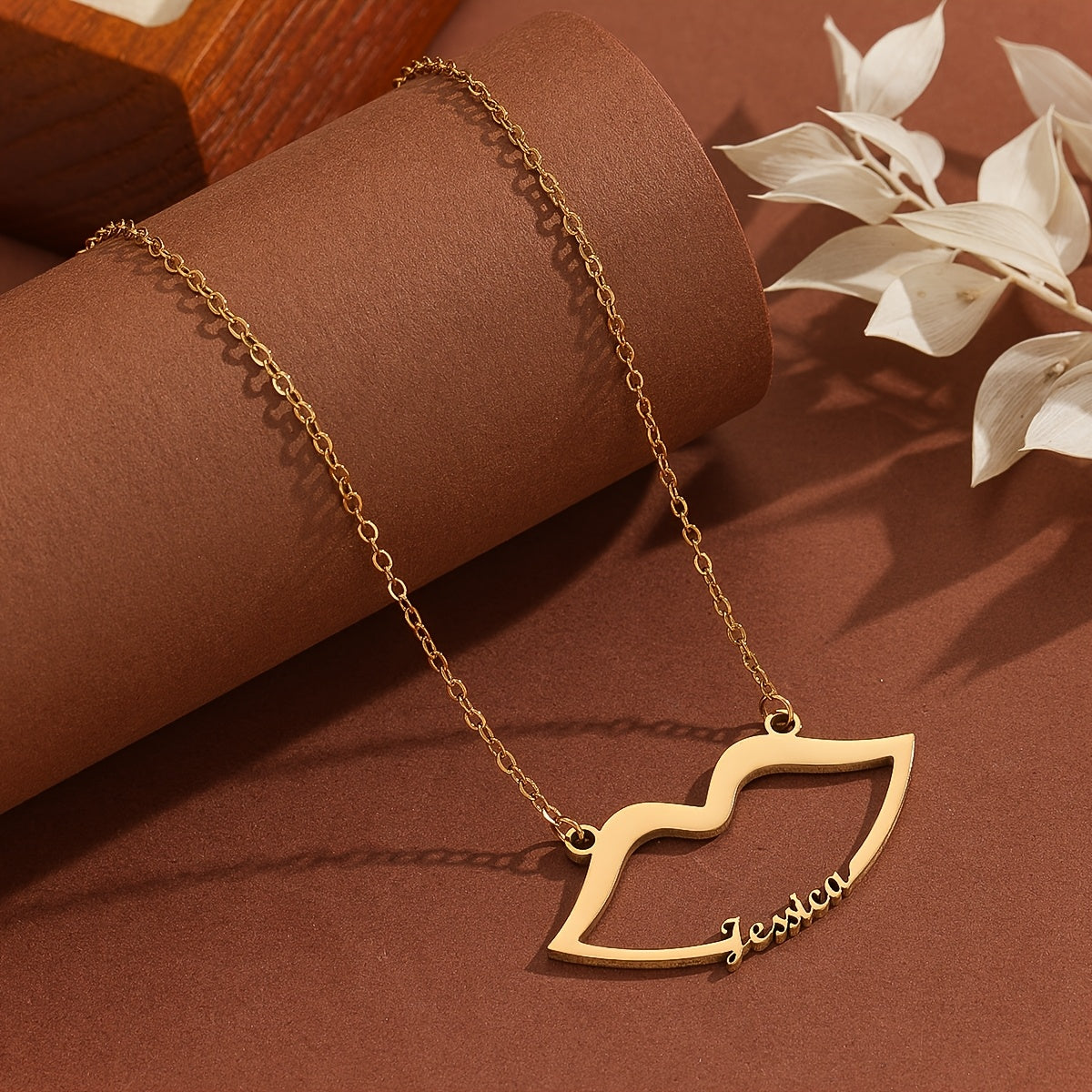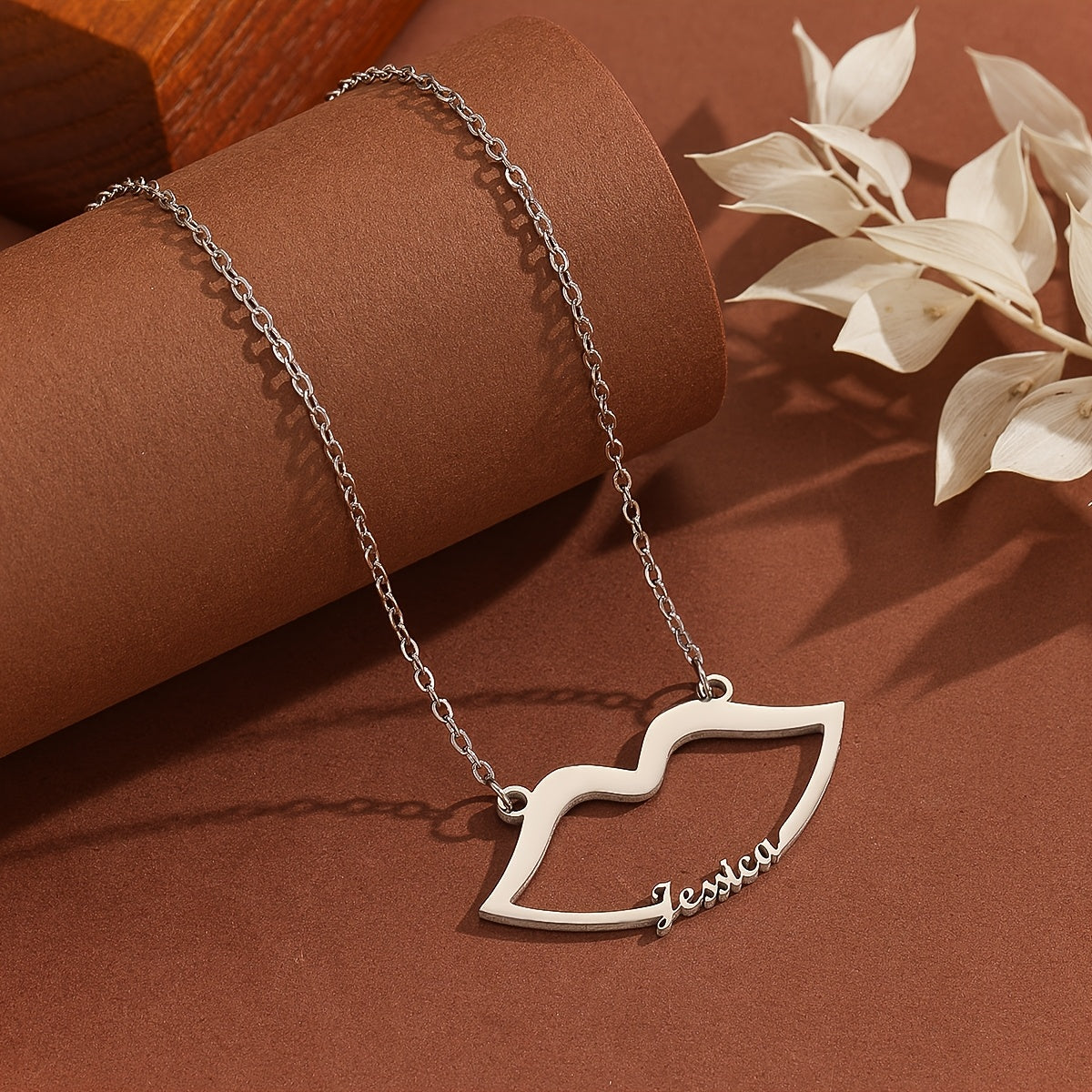 This stylish Lips Shape Name Necklace is a personalized accessory made of stainless steel. The minimal design adds a touch of uniqueness to your look.