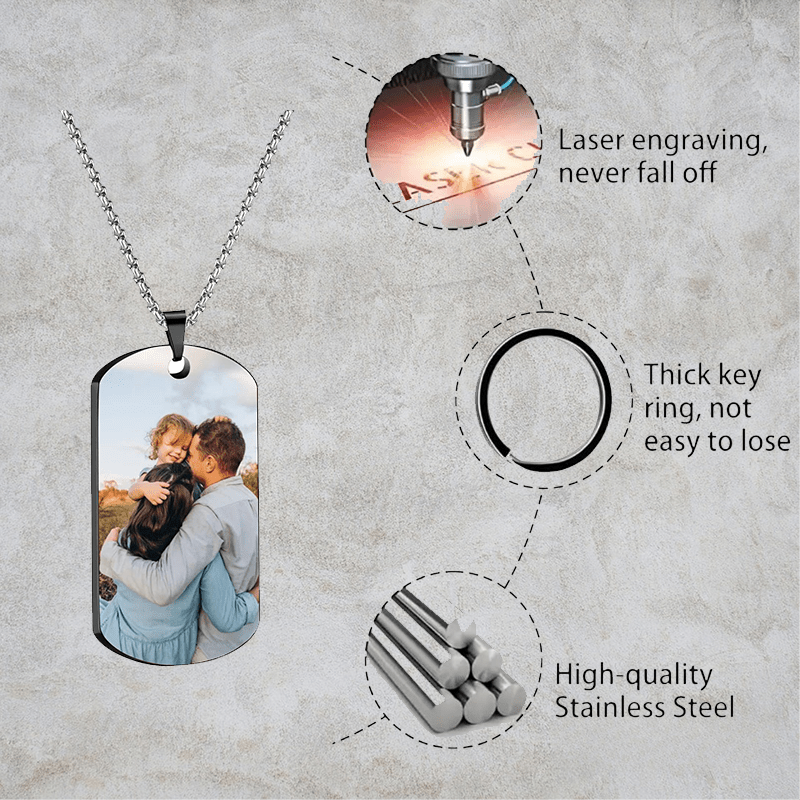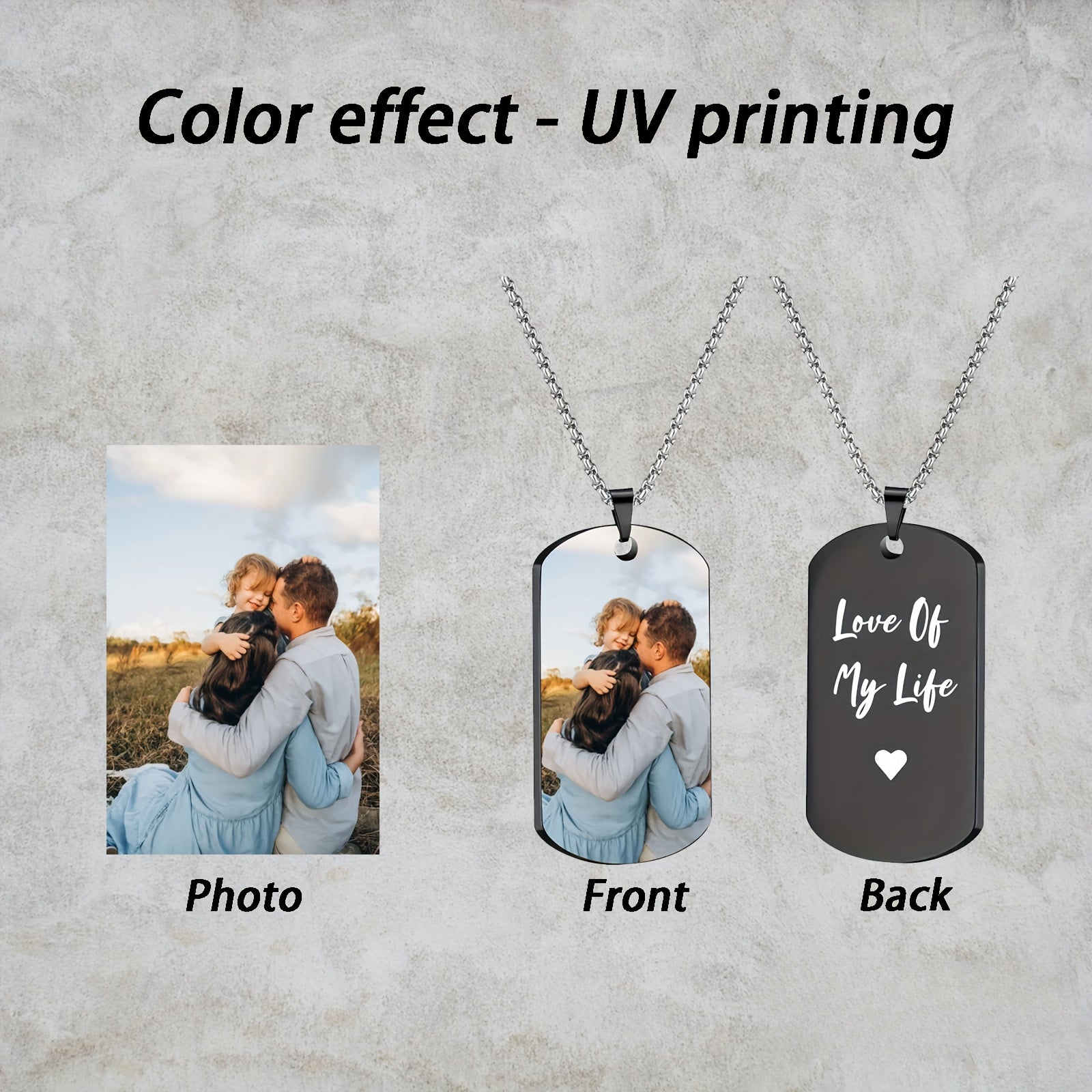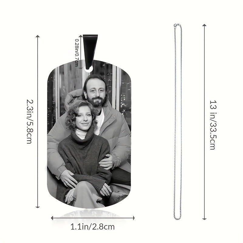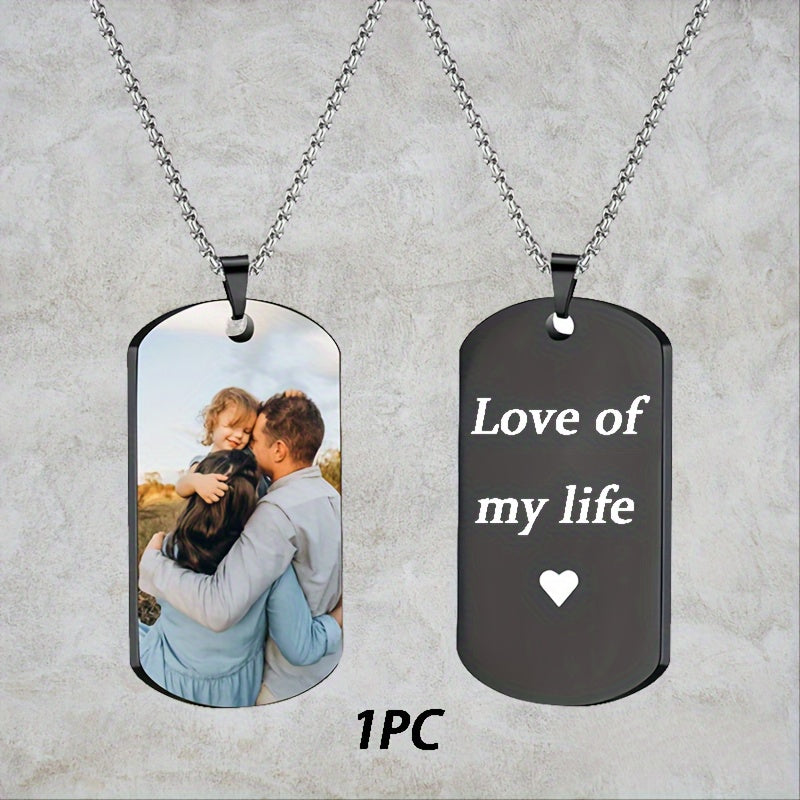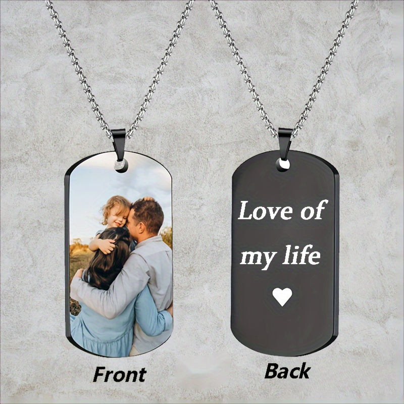 Show your love with this custom engraved photo pendant necklace featuring your favorite image. Made of durable stainless steel, this necklace is a perfect gift for your loved one.