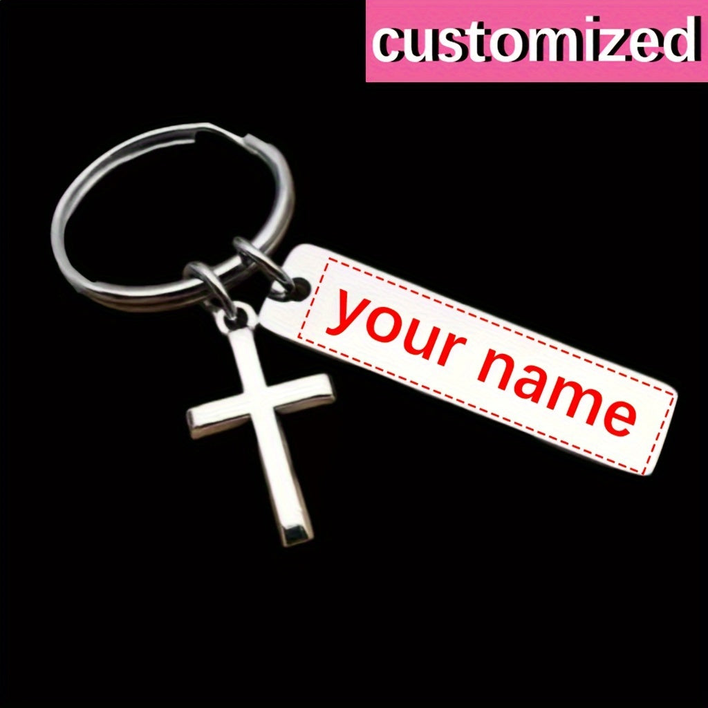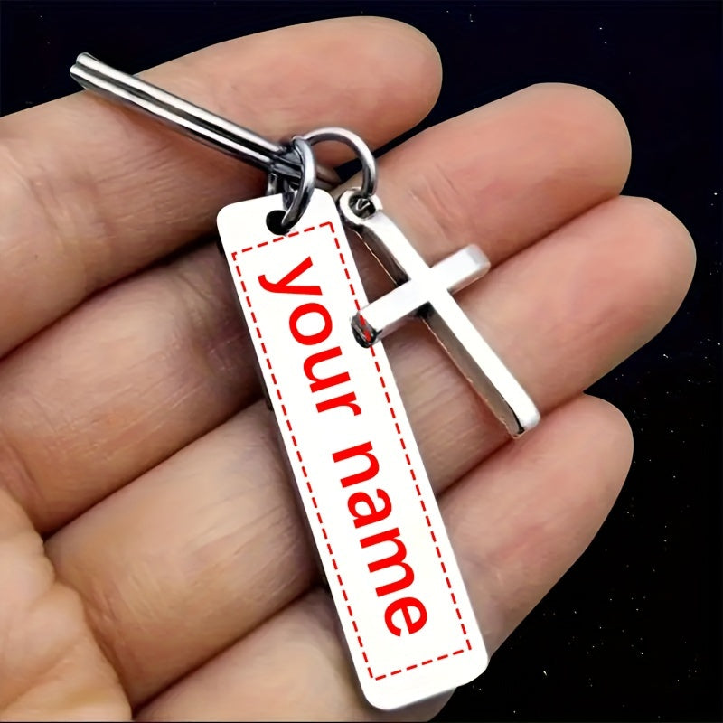 Keep your keys stylish and secure with this sleek minimalist keychain featuring a custom engraved stainless steel cross pendant. Perfect for bags, keys, or as a thoughtful gift.