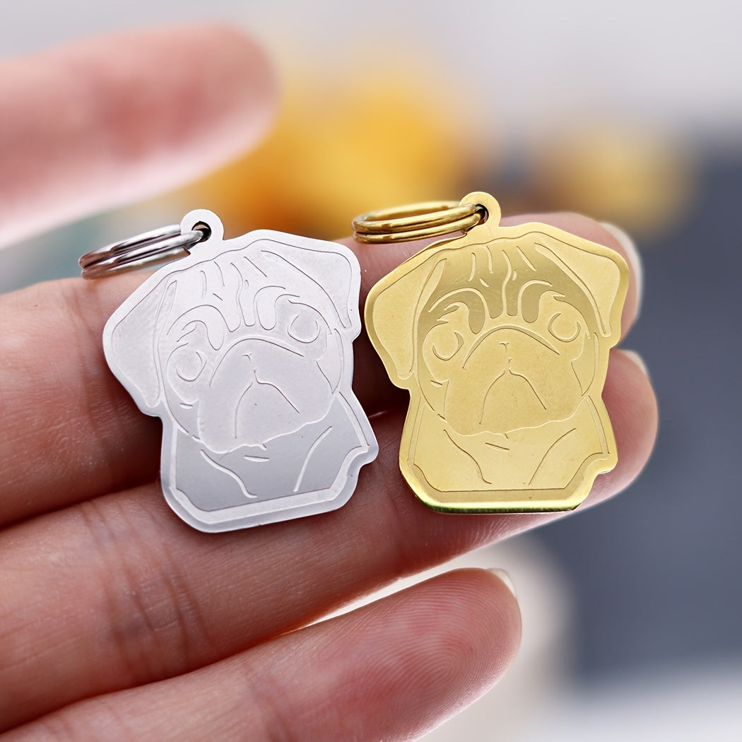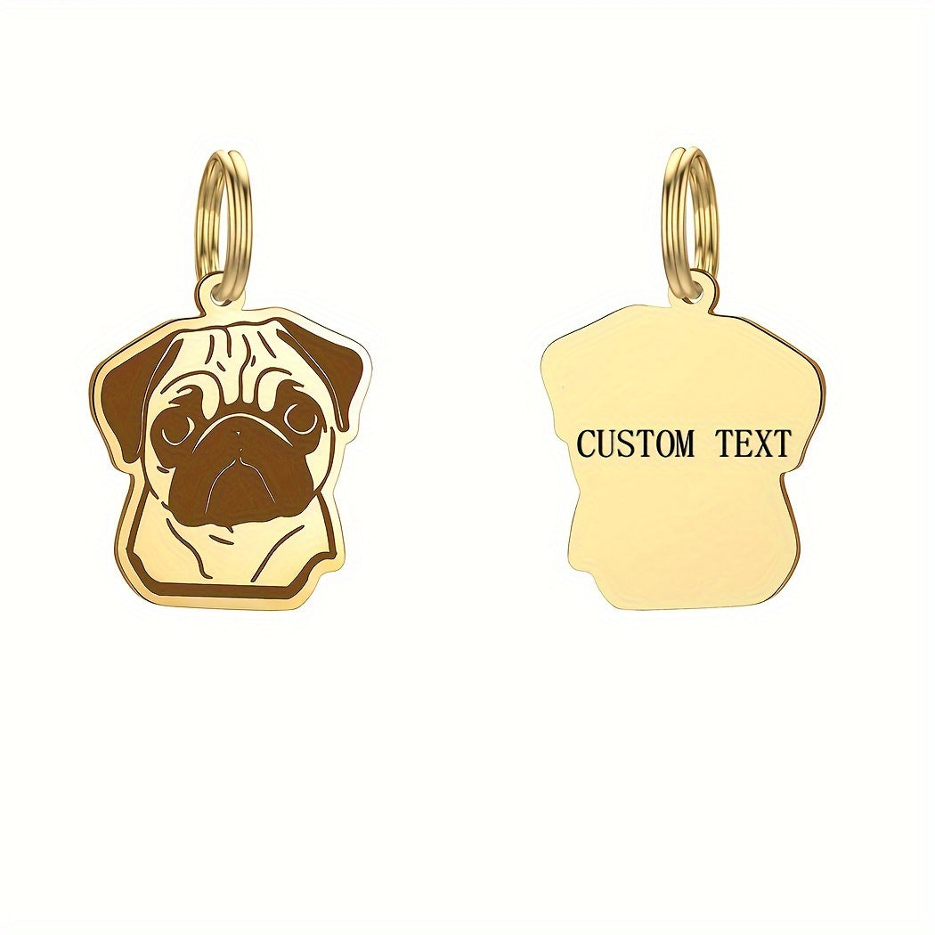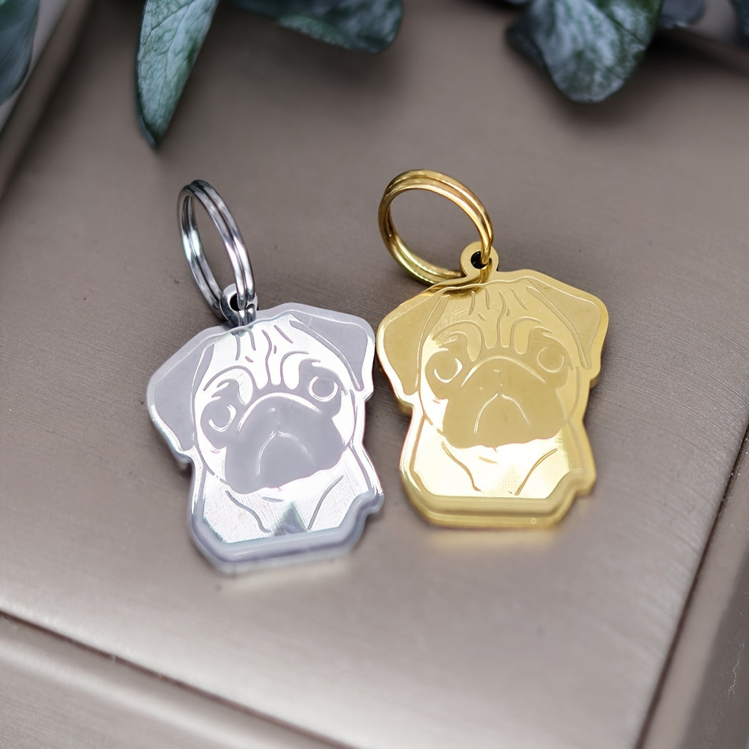 This custom stainless steel Pug dog tag keychain is a great gift for any occasion. Engrave your name or a special message on this keychain to make it unique. Perfect for family, holiday, or memorial gifts.