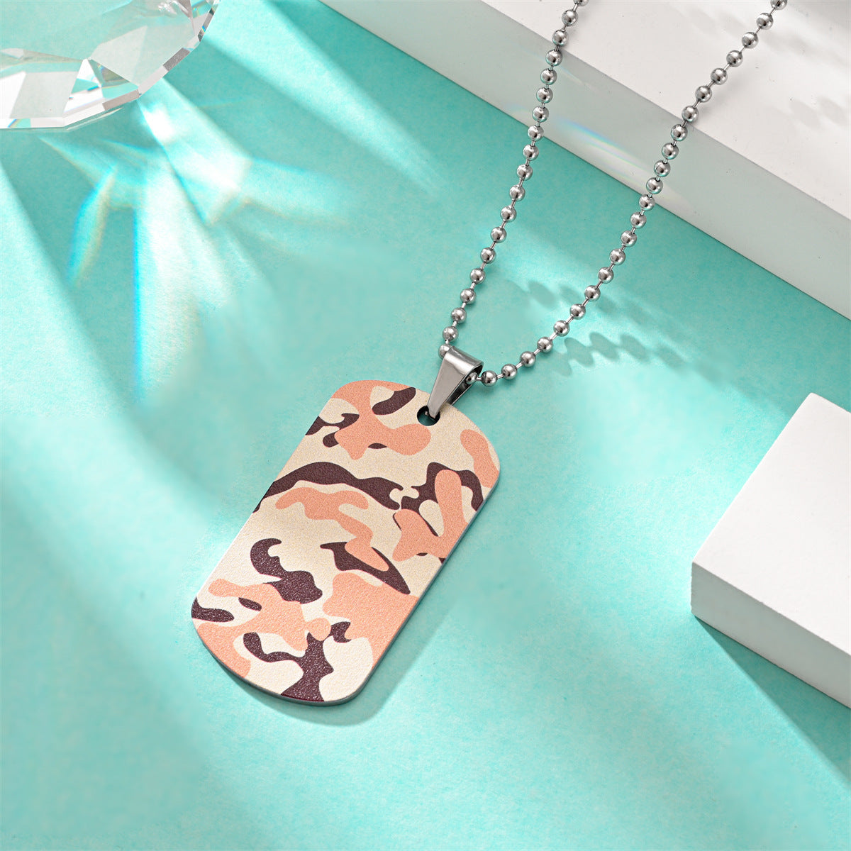 This unique camouflage necklace is the perfect accessory for daily wear or party outfits. Crafted from high-quality stainless steel, it features a special pattern that adds a touch of personality to any look.