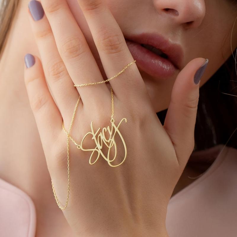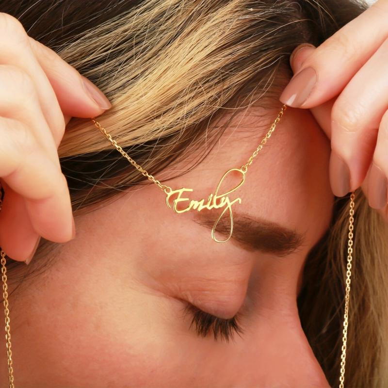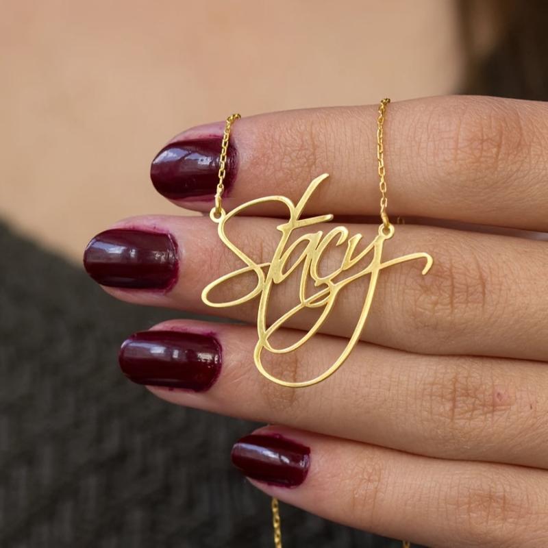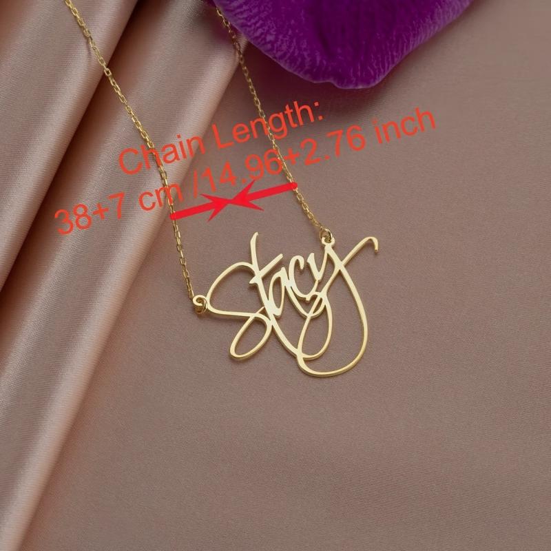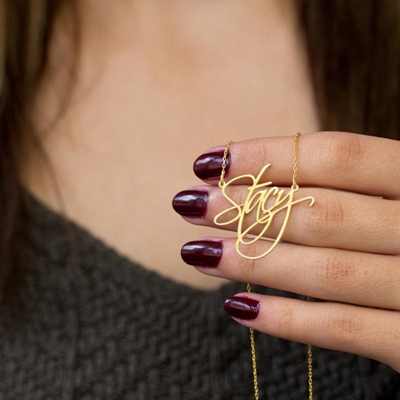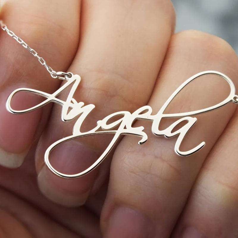 Personalized stainless steel necklace with cursive name. Ideal gift for Mother's Day and special occasions.