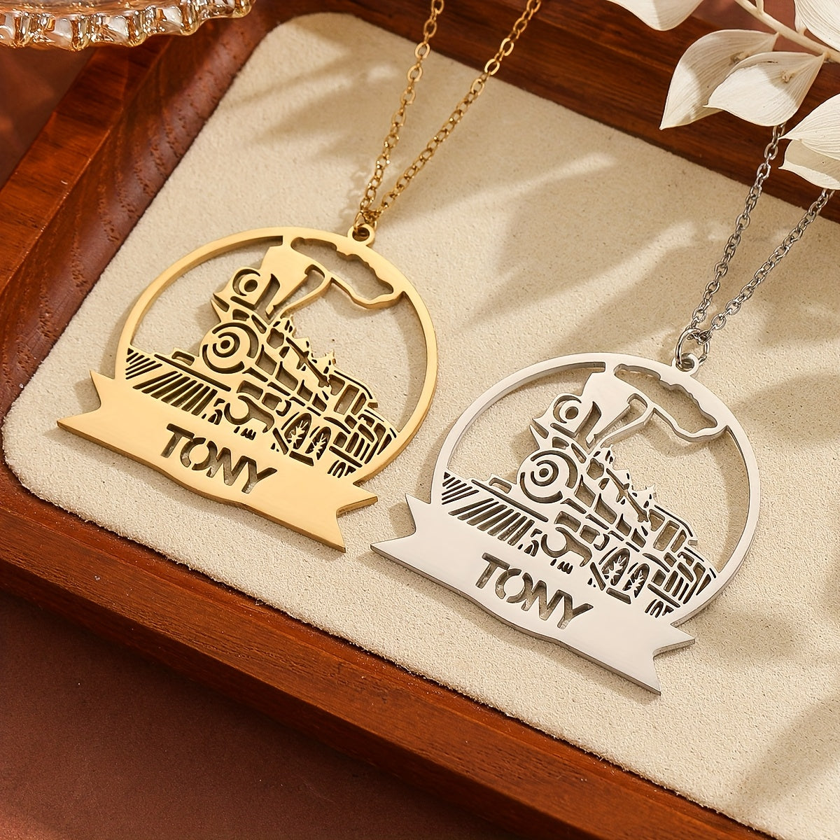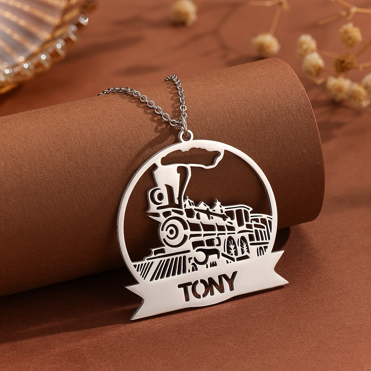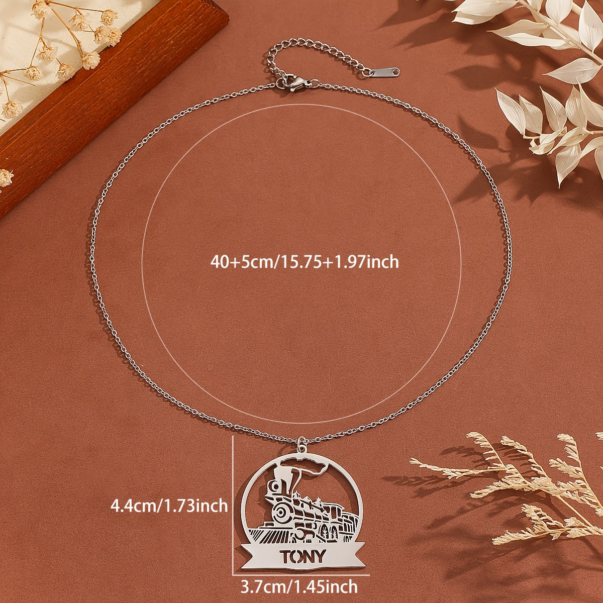 This custom steam train pendant necklace is a fashionable and personalized accessory for daily wear. Made of stainless steel, it features a unique design that adds a touch of boho chic to your outfit.