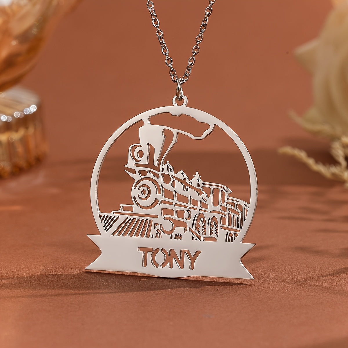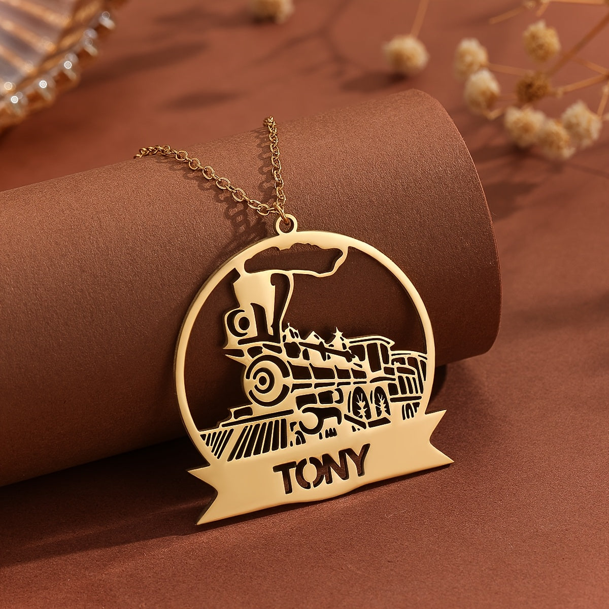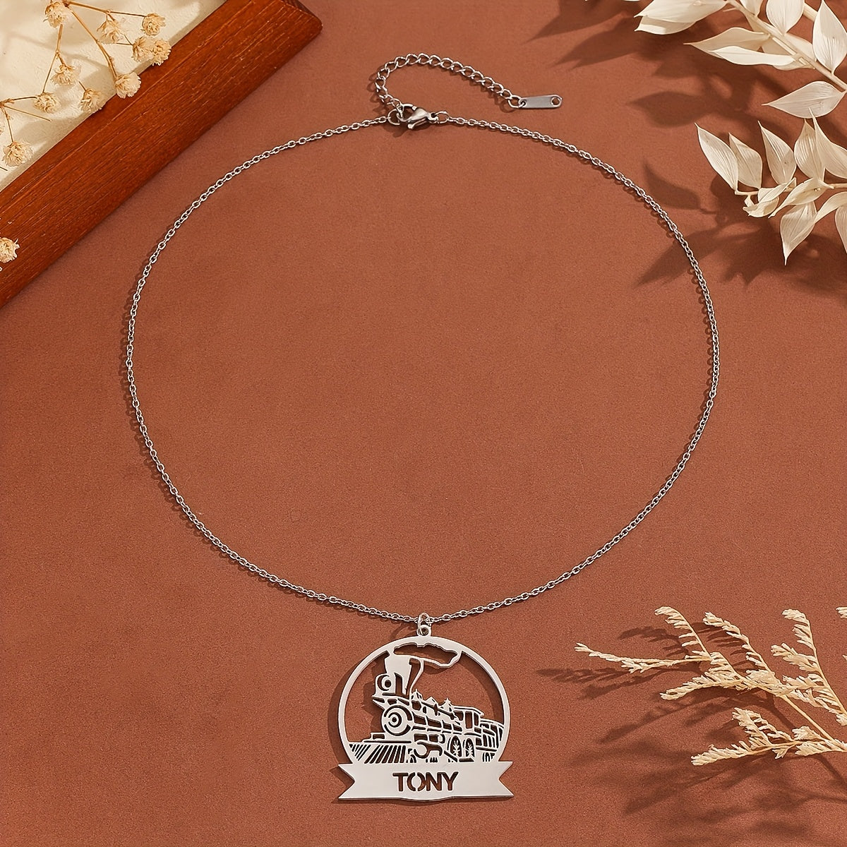 This custom steam train pendant necklace is a fashionable and personalized accessory for daily wear. Made of stainless steel, it features a unique design that adds a touch of boho chic to your outfit.