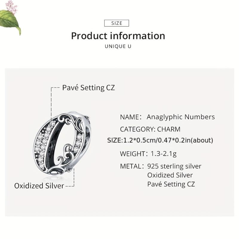 Express your style with this 925 silver bead featuring Arabic numbers from 0 to 9. Perfect for personalized jewelry creations.