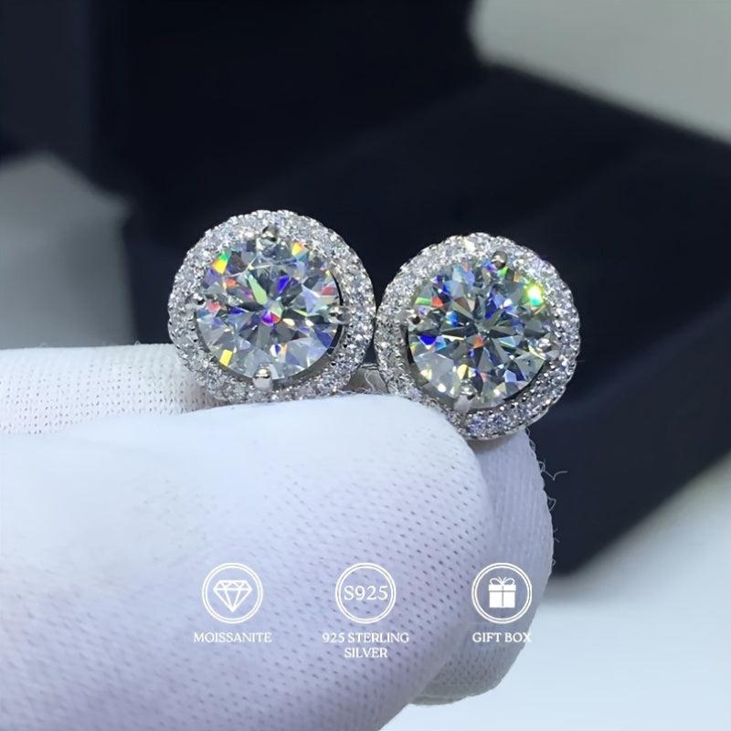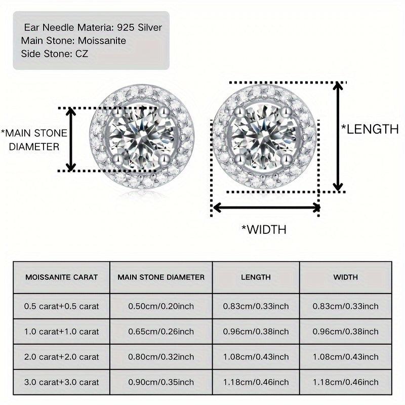 Elegant and sophisticated stud earrings featuring 1 carat Moissanite stones set in 925 sterling silver with 18K golden plating. Perfect for any occasion.