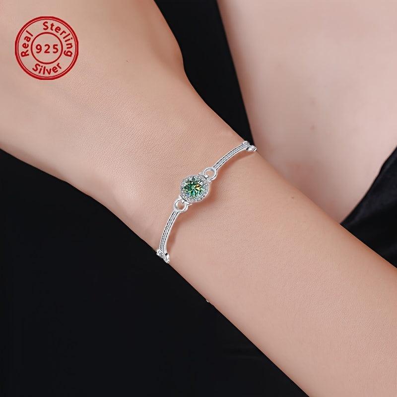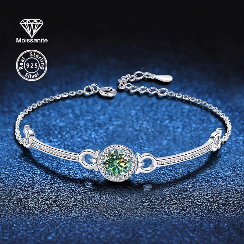 Elevate your style with this fashionable 925 sterling silver bracelet featuring a 1 carat round cut moissanite. Perfect for daily wear or special occasions.