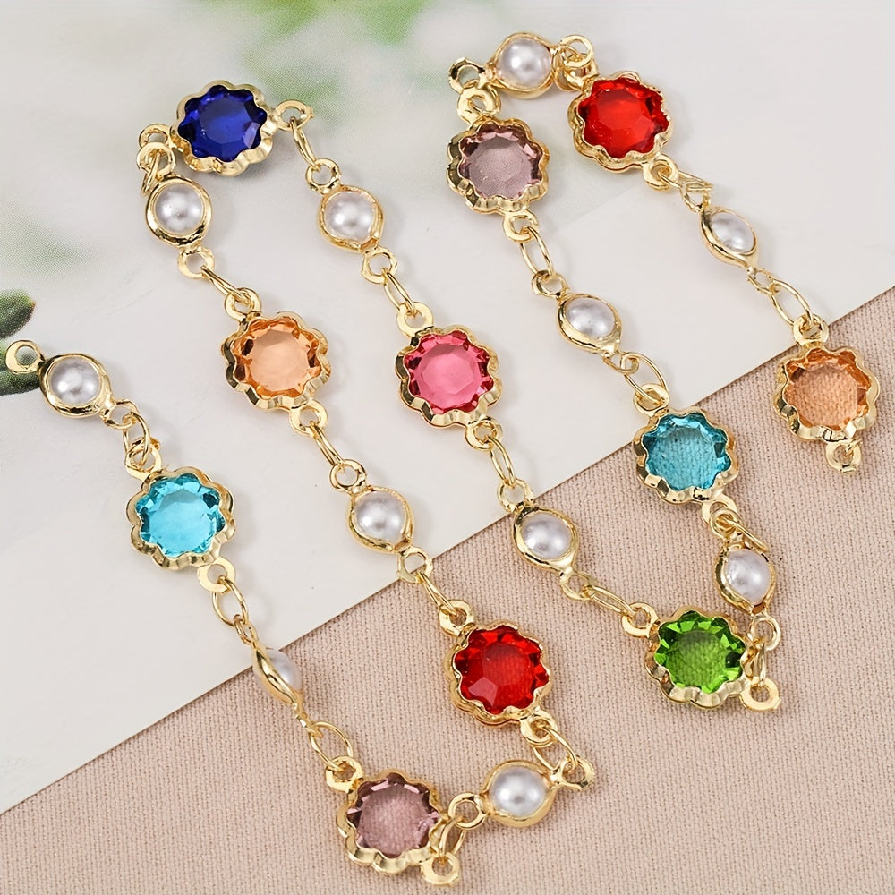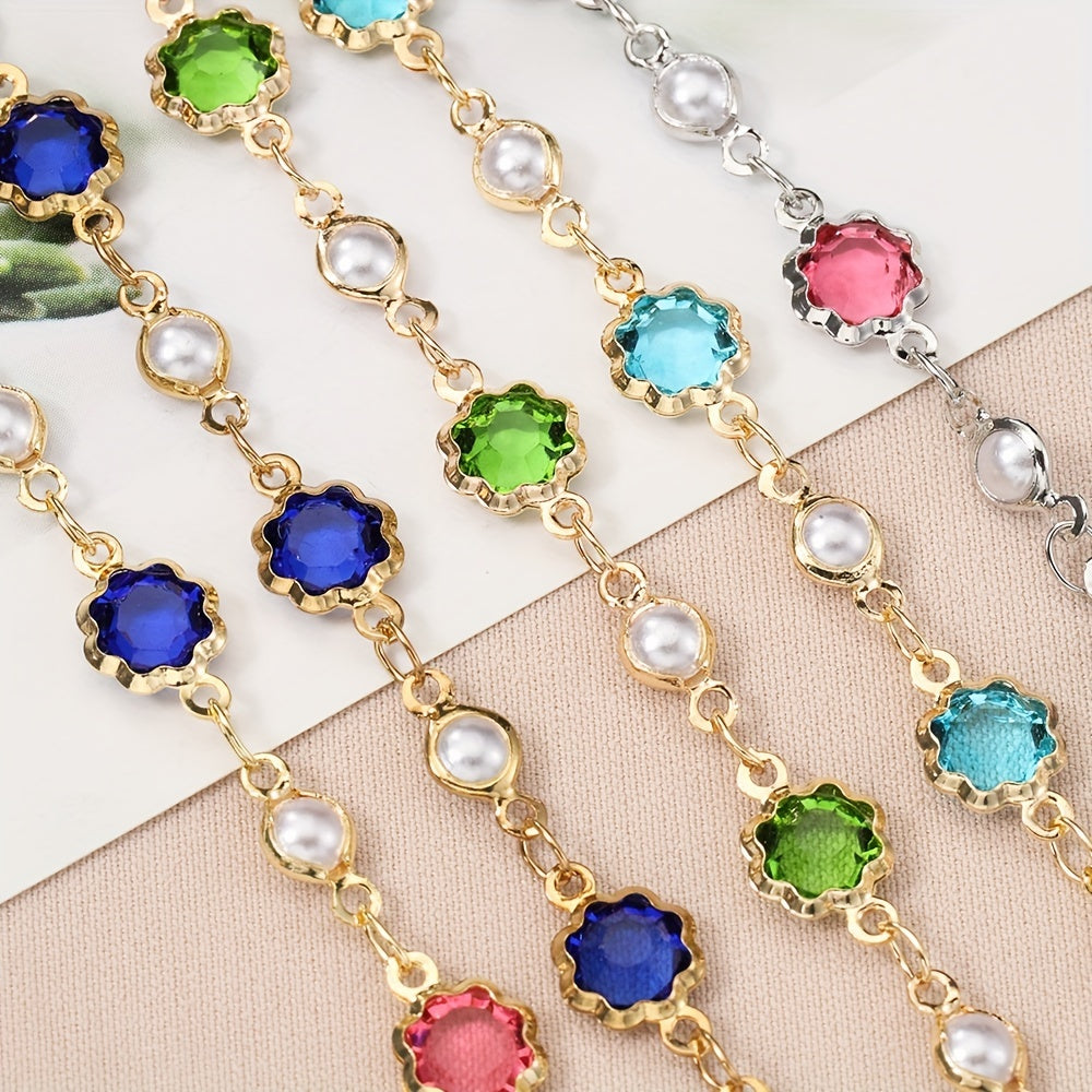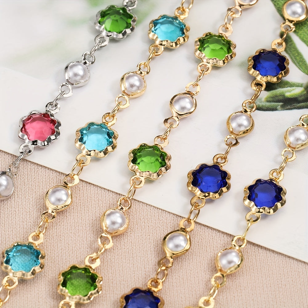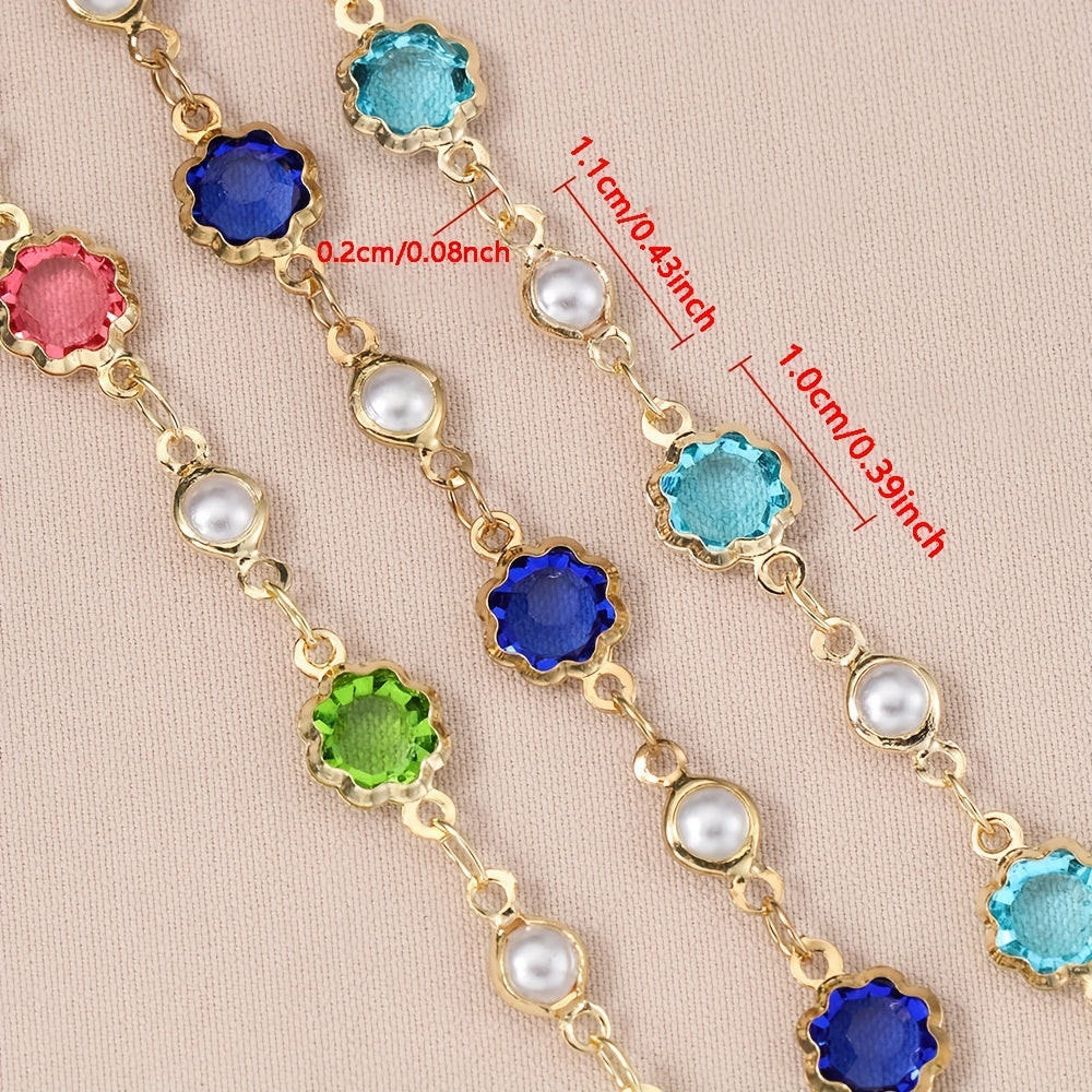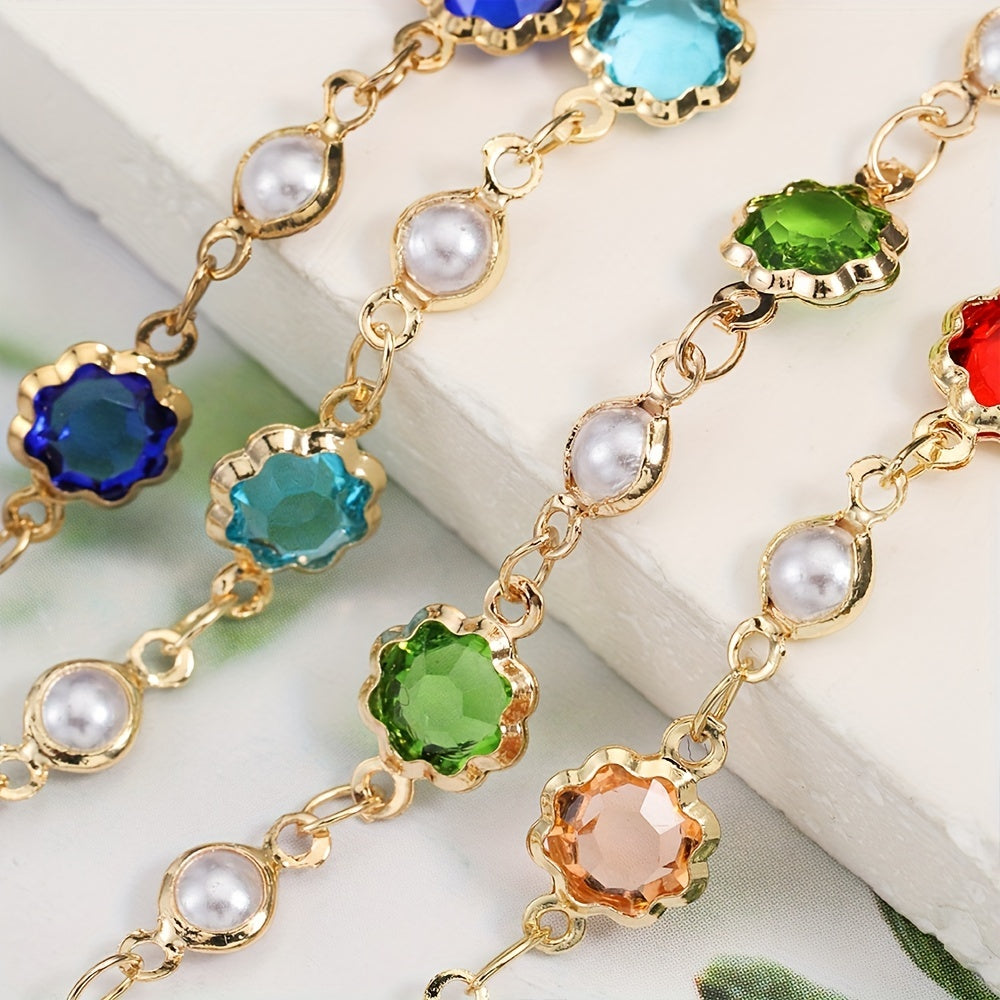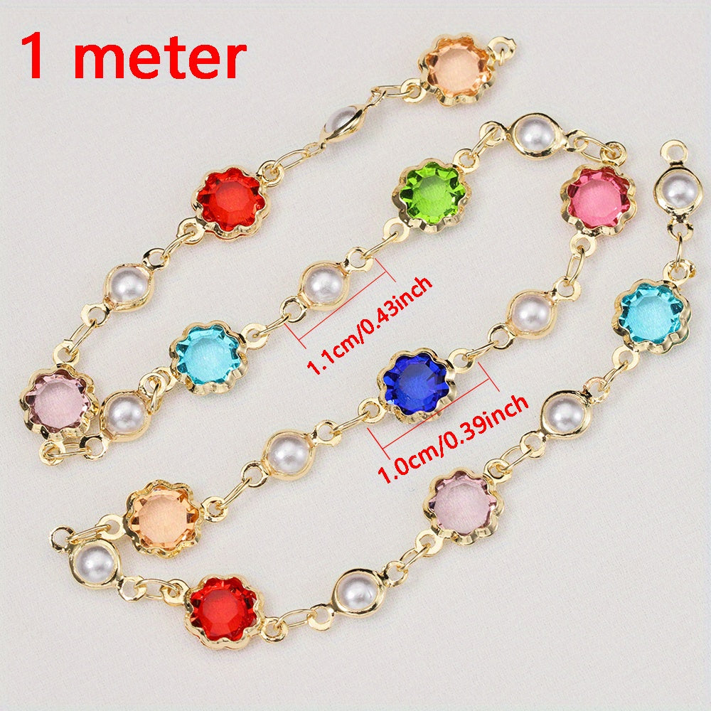 This 1 meter colorful glass crystal bead chain is perfect for creating your own bracelets and necklaces. The chain features a mix of golden pearl and copper accents for a stylish finish.