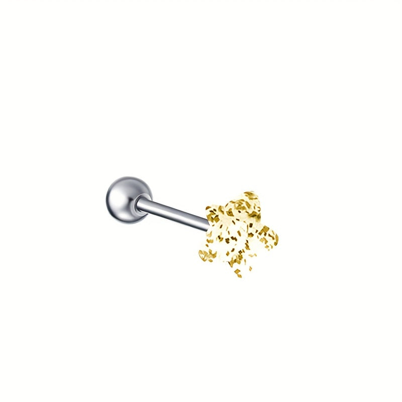 Add a touch of boho style to your look with this acrylic glitter star tongue nail ring. Perfect for body piercing and decoration.