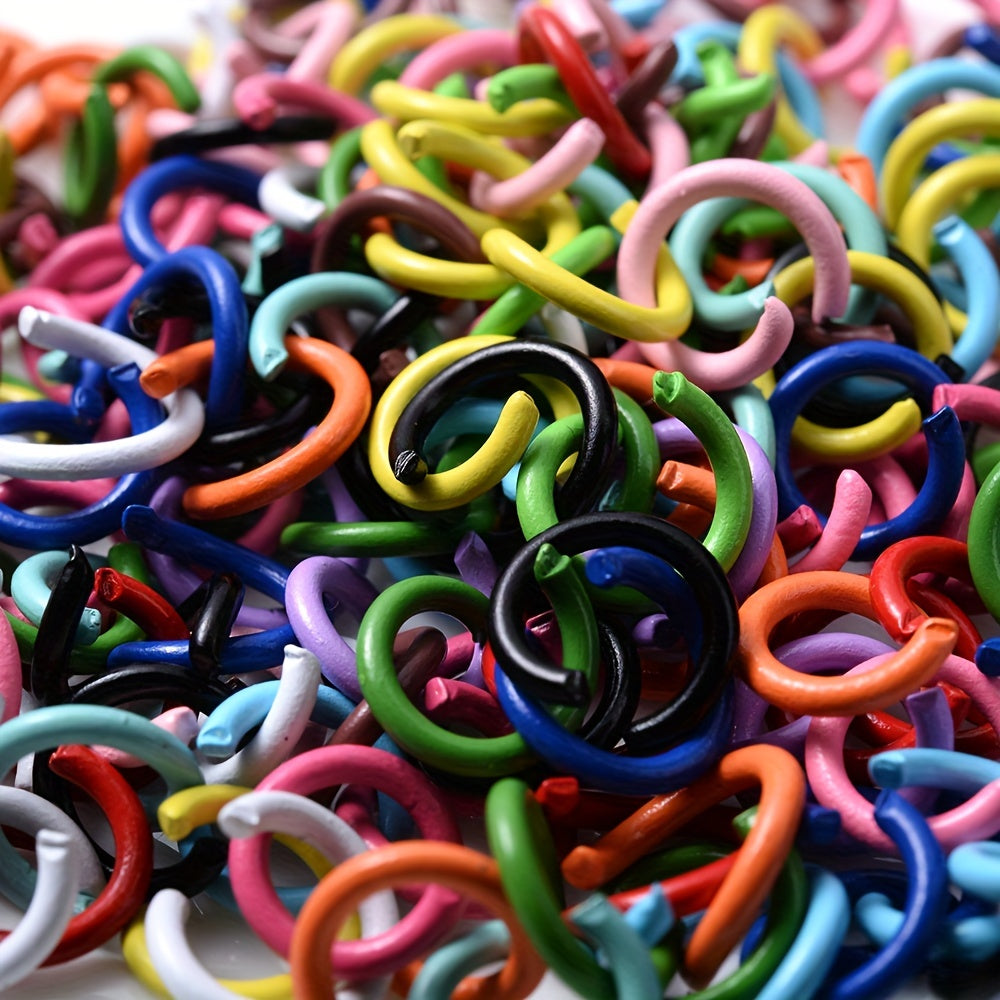 Enhance your DIY jewelry projects with this set of 100 colorful split jump ring connectors. Perfect for making bracelets, necklaces, and more.