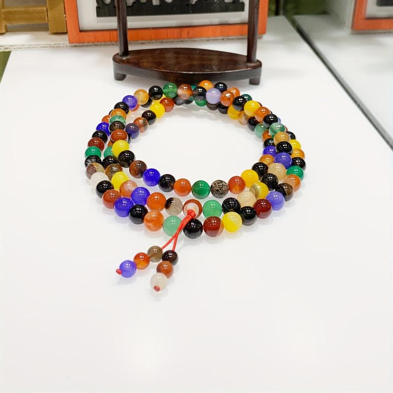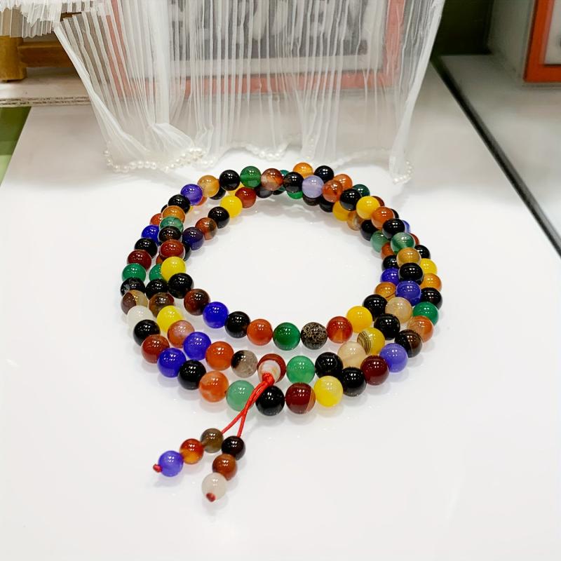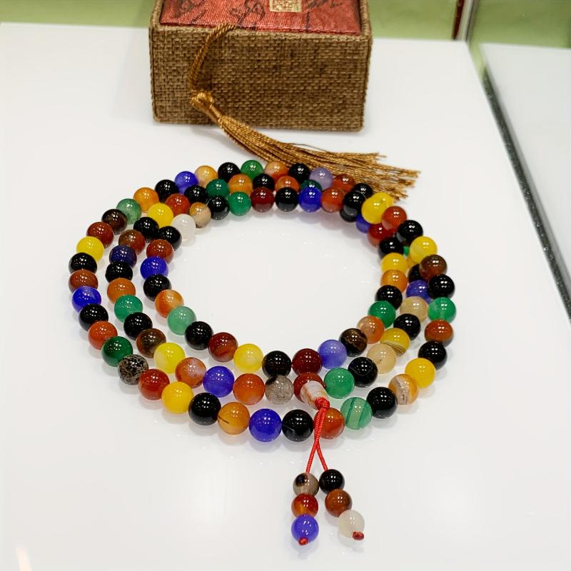 Elegant and colorful bracelet made of natural agate beads with tassel charm. Perfect for adding a touch of style to any outfit.