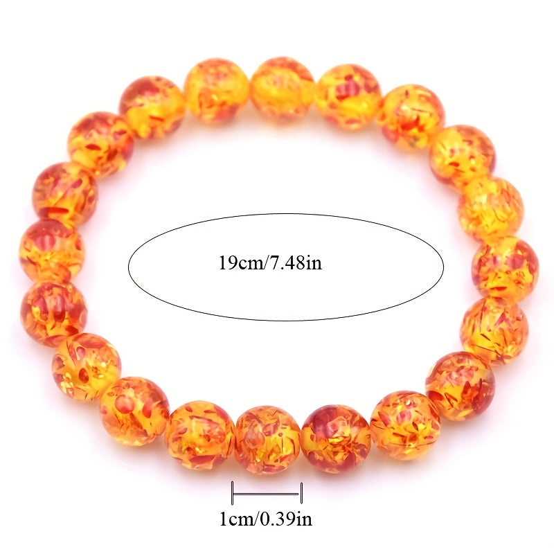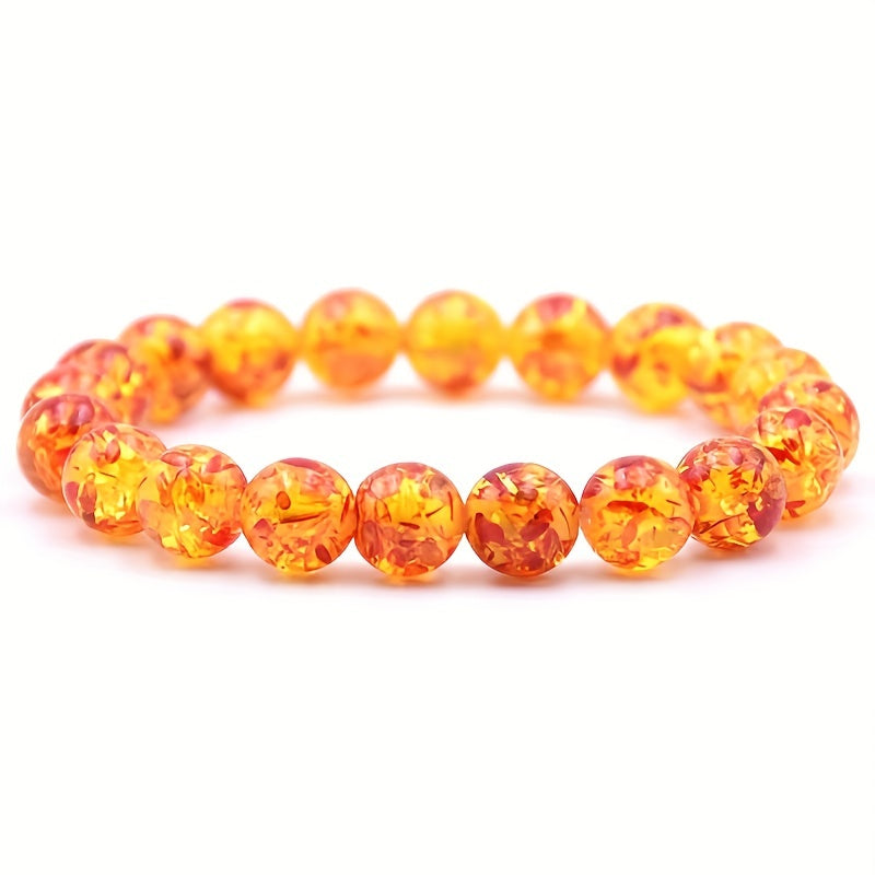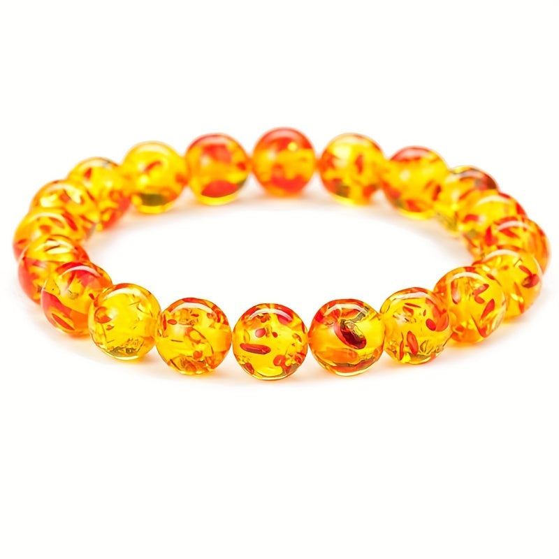 This beautiful 10mm Flower Amber Beaded Energy Yoga Bracelet features Buddha bead accents for a serene and stylish look.
