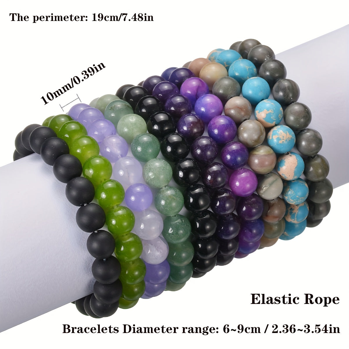 This 10mm healing stone beaded bracelet is perfect for men and women. It features crystal beads and is adjustable for a comfortable fit. Ideal for promoting positive energy and balance.