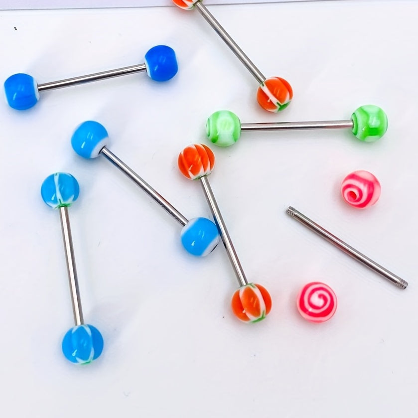 This set includes 10 pieces of 28mm ball stainless steel tongue nail rings in assorted varieties suitable for both men and women.